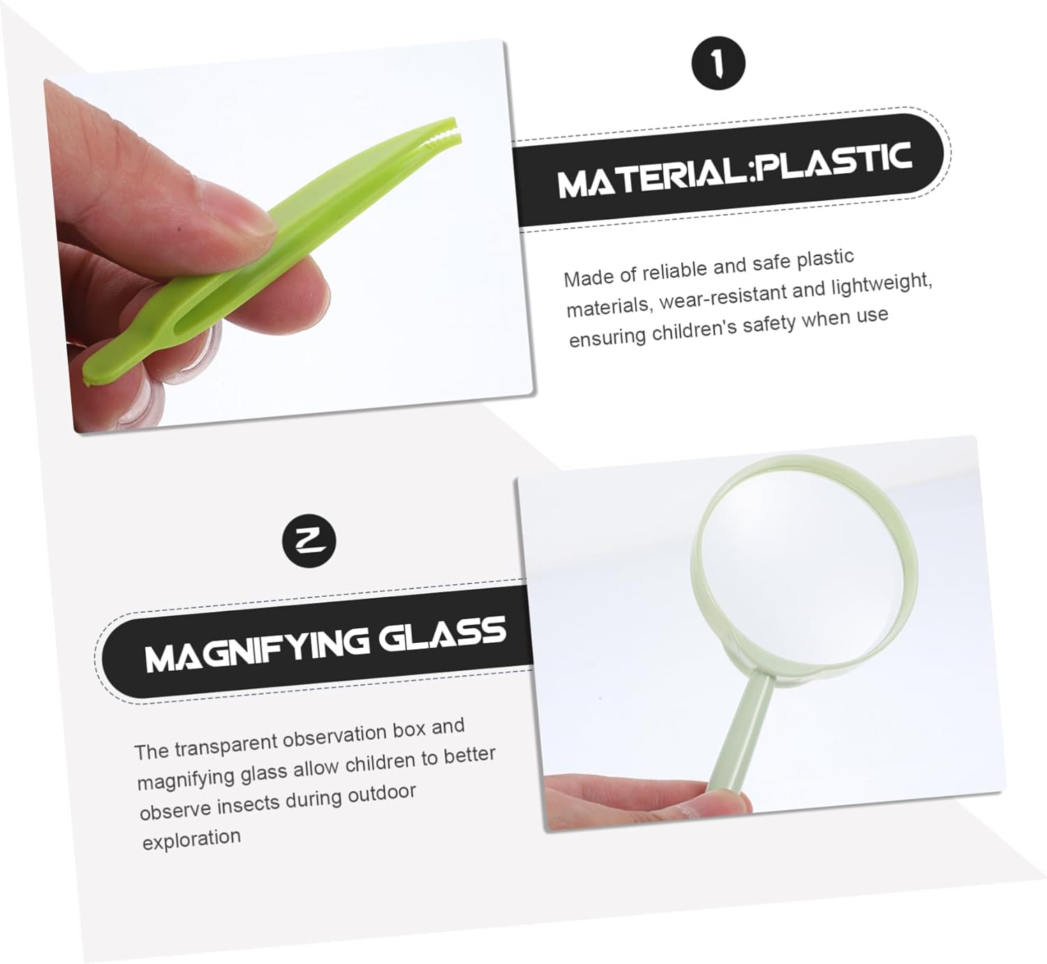 Set completo: scatola di osservazione, pinzette, strumento per stuzzicare, lente d'ingrandimento, pinzette per insetti e tappetino per l'alimentazione sono inclusi, fornendo un set completo per l'esplorazione all'aperto dei bambini, kit di osservazione all'aperto per bambini, giocattoli all'aperto per bambini Educativo: attraverso attività come l'osservazione e l'allevamento dei bachi da seta, è possibile sviluppare capacità di osservazione dei bambini, abilità pratiche e conoscenze scientifiche, strumento di esplorazione per bambini, rete per insetti per bambini Raccoglitore di insetti per bambini - la copertina è progettata con una lente d'ingrandimento per te osservare i dettagli dei giocattoli per l'esplorazione all'aperto E: Realizzato con materiali di qualità e, garantendo un uso a lungo termine, kit di esplorazione di insetti per bambini, strumenti per campioni di insetti Materiale sicuro: realizzato con materiali plastici affidabili e sicuri, resistente all'usura e leggero, garantendo la sicurezza dei bambini durante l'uso, strumento di osservazione, osservazione