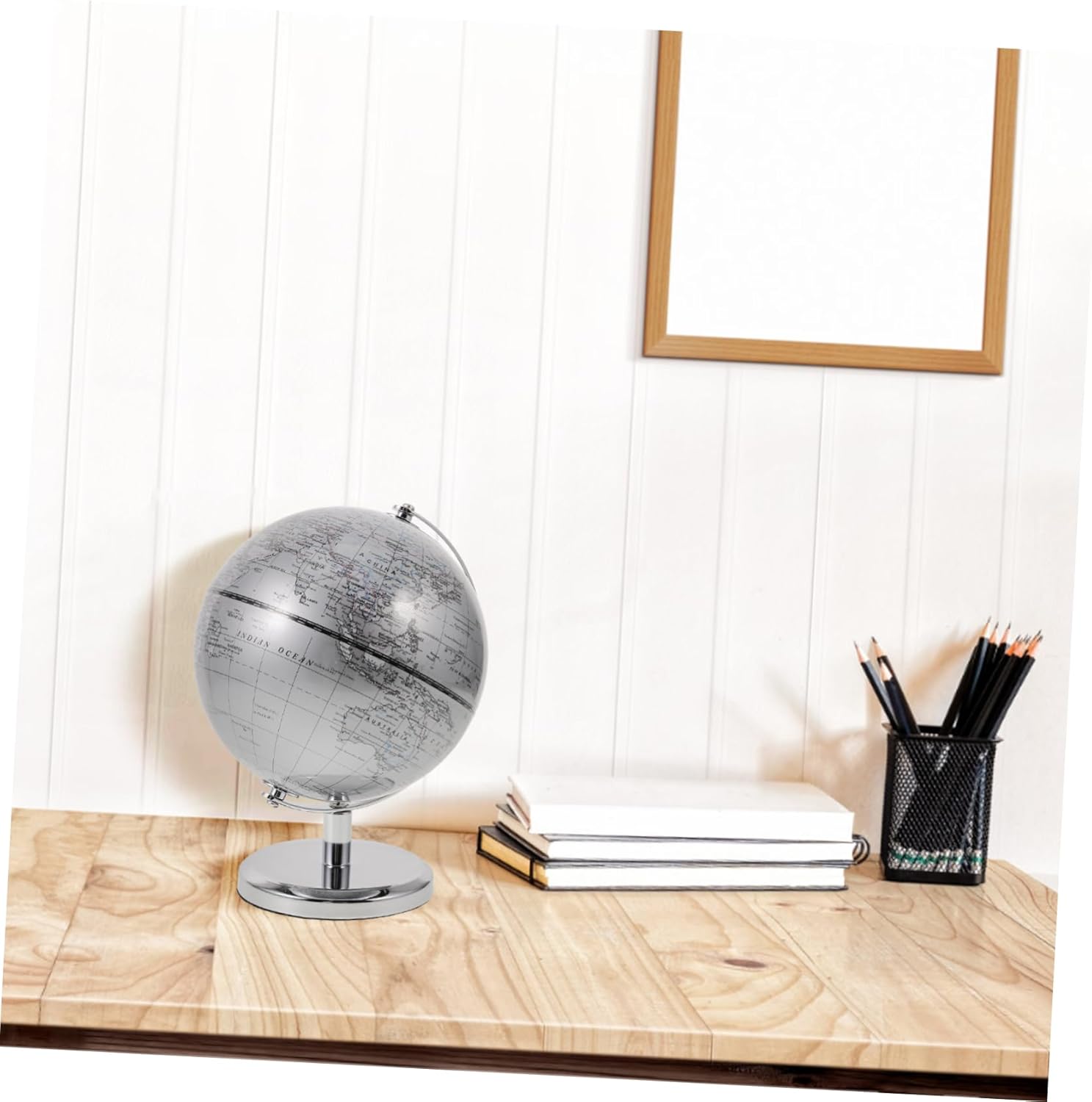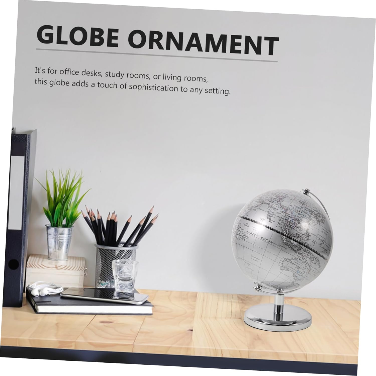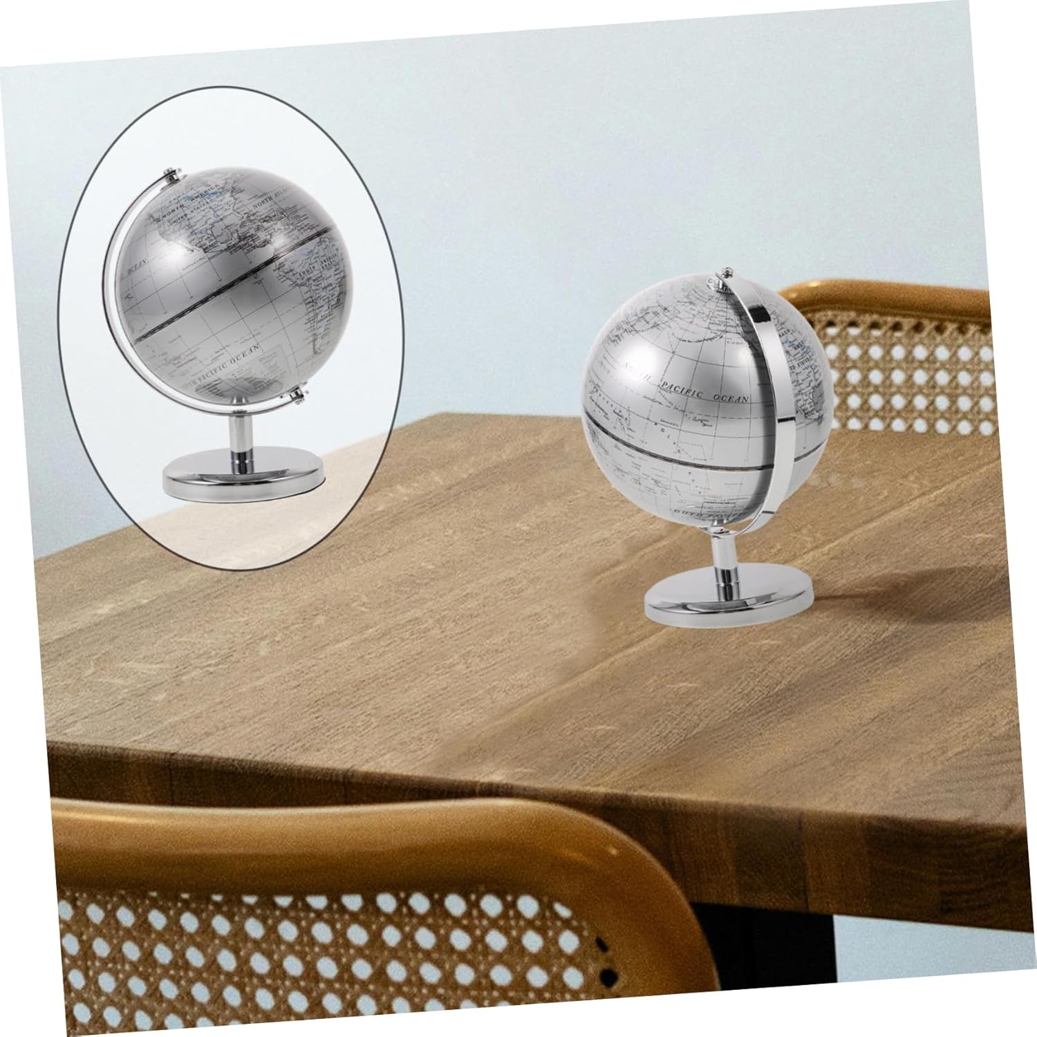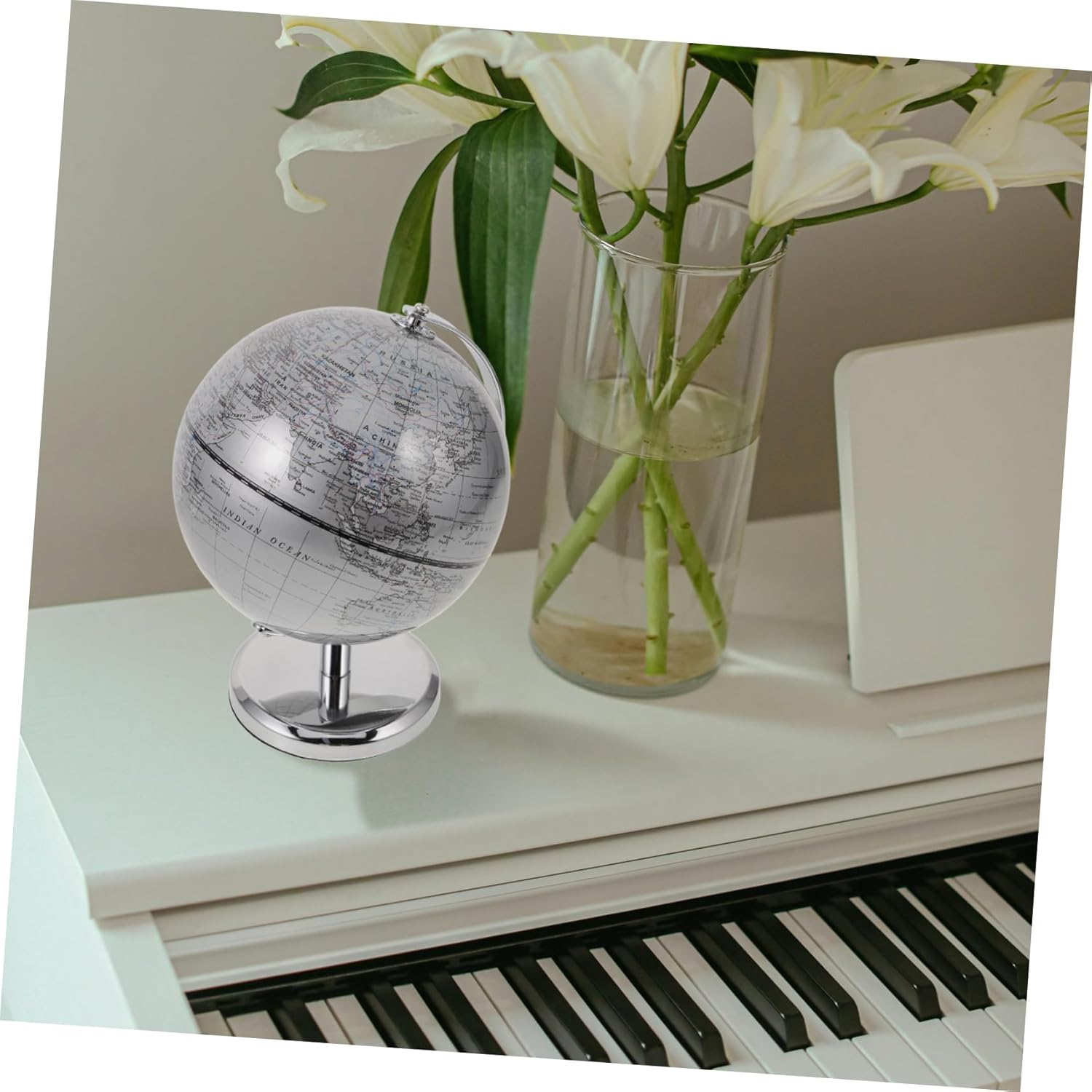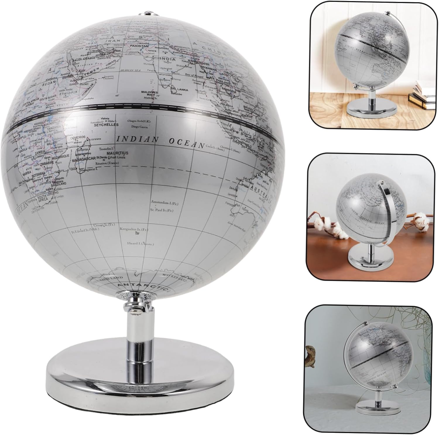 Decorazione 3D - Questo globo funge da ottimo strumento educativo, aiutandoti a conoscere vari paesi e le loro posizioni geografiche, Globo educativo per bambini Doppio: questo globo funge sia da elemento decorativo elegante che da pratico strumento educativo per qualsiasi stanza, Palla da scrivania, Globo terrestre decorativo Globi terrestri - La finitura argento di questo globo aggiunge un tocco di eleganza e modernità, rendendolo una grande aggiunta all'arredamento di qualsiasi stanza, Globo terrestre Uso versatile: Questo globo non è decorativo ma serve anche come strumento educativo per bambini di età, ornamento terrestre rotondo, globo educativo scolastico Mappa del mondo decorazione: la finitura argentata di questo mappamondo si adatta perfettamente all'estetica moderna degli interni, aggiungendo raffinatezza a qualsiasi stanza, mappamondo da tavolo con base
