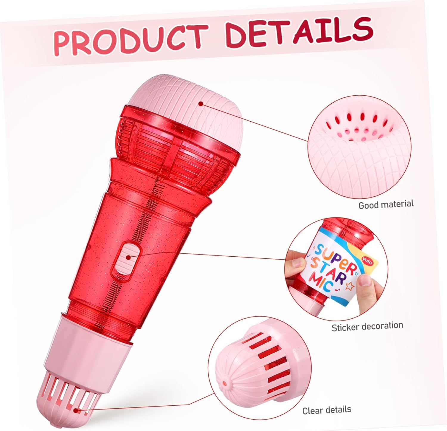 Compatto e portatile: grazie alle sue dimensioni compatte e al design leggero, il supporto per microfono è adatto alle mani dei bambini per afferrarlo e trasportarlo senza sforzo, eco per bambini, discorso tascabile per i più piccoli Gioco duraturo: realizzato in plastica resistente, questo giocattolo con microfono è progettato per resistere a un uso intenso e per offrire divertimento, microfono per bambini, supporto per microfono Sicuro da usare: il giocattolo del microfono è realizzato con bordi lisci e arrotondati, rendendolo leggero e sicuro per i bambini da maneggiare e con cui giocare, microfono eco, giocattolo di feedback per logopedia Costruzione robusta: realizzato in plastica robusta, il giocattolo del microfono eco è costruito per resistere a giochi difficili e durare in molte occasioni di gioco, giocattolo del microfono per bambini, microfono giocattolo Leggero e compatto: progettato per essere compatto e leggero, il giocattolo è facile da tenere e trasportare anche per le mani piccole, microfono eco per bambini, microfono giocattolo