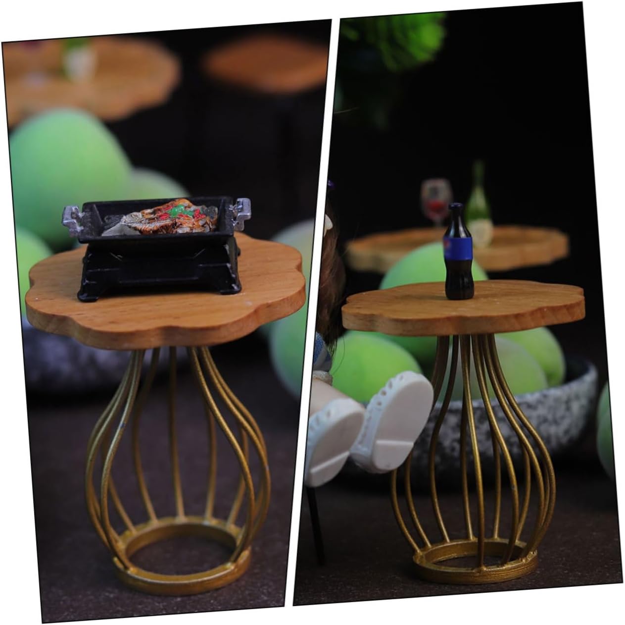Mobili in miniatura: questo ornamento è molto meraviglioso e decorativo per abbinarsi alle altre decorazioni del modello di casa, mobili per bambole in legno. Mini decorazione del tavolo da tè: posizionalo su una mini casa per dettagli più realistici, per darti un'impressione visiva diversa, mini mobili. Mini tavolo: fantastico per i tuoi amici o familiari a cui piacciono i mini mestieri, a loro piacerà, decorazione del paesaggio. Mini tavolo da tè: il modello decorativo di mobili per la casa in miniatura è per modelli da interni come mini case, il tavolo da tè in miniatura. accessori