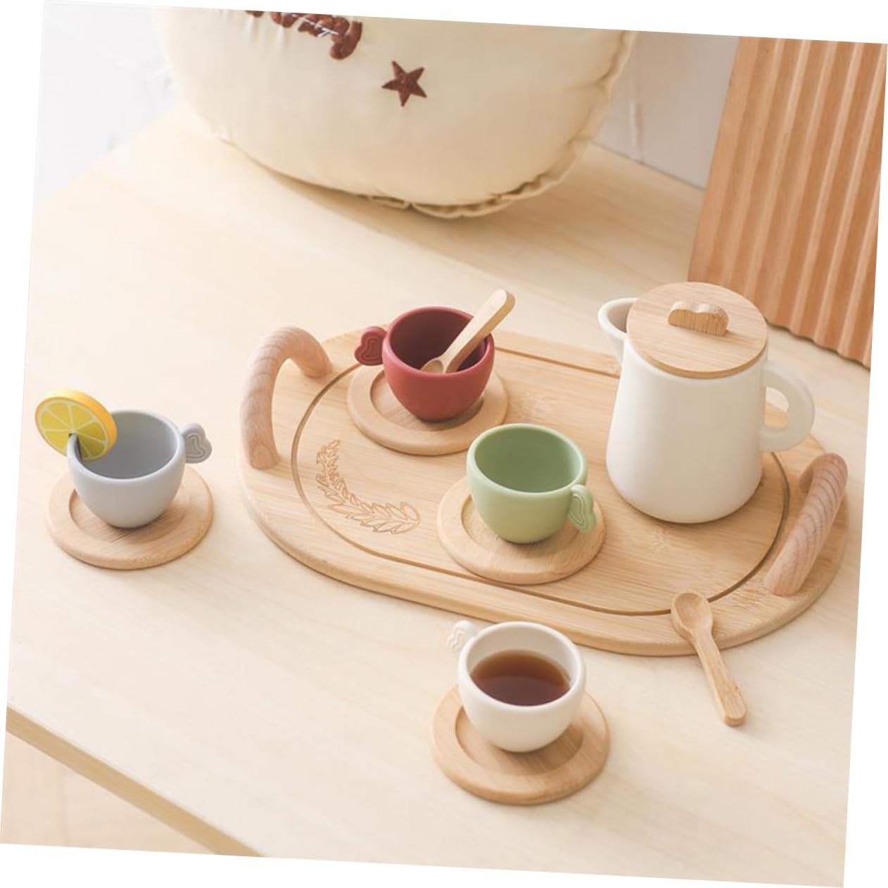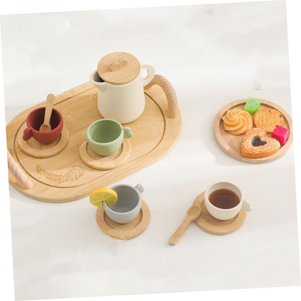 Giocattoli da cucina per: porta più divertimento al tuo fai-da-te. Queste stoviglie conferiscono alla tua casa delle bambole una forma classica, piccola e bella. Questo piccolo set da tè può essere utilizzato come decorazione modello per la casa o come servizio da tè per ragazze. Stoviglie giocattolo per bambini - il set da tè per la casa in miniatura in legno contiene diversi tipi di stoviglie che possono soddisfare le diverse esigenze di decorazione, set da gioco teiera giocattolo - questo set da tè è appositamente progettato per giochi di ruolo ed è adatto anche per giochi cosplay, teiera playset giocattoli da tè per il pomeriggio - Migliora efficacemente la capacità di vedere, toccare e coordinare mani e occhi e farti provare il divertimento di preparare il tè, teiera giocattolo per bambini giocattolo da casa - può imparare a usare vari set da tè da solo, sviluppare il buon senso nel gestire i set da tè e allenarsi le loro capacità di pensiero logico, il tè pomeridiano