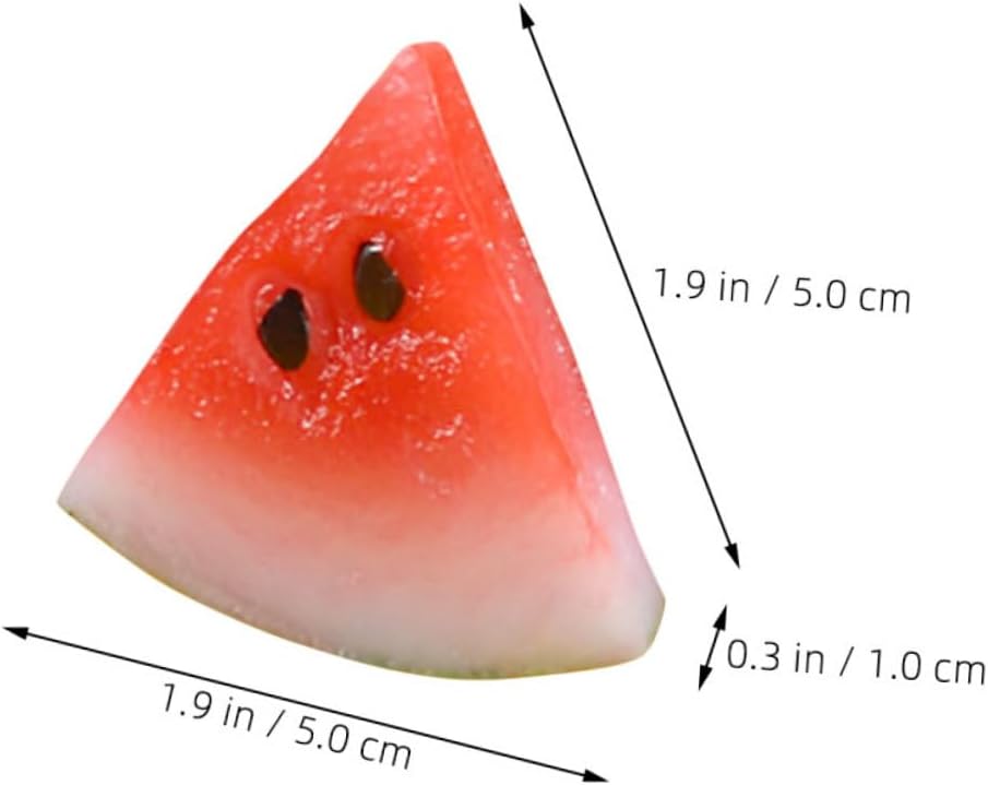 Decorazione di frutta artificiale - i mini frutti sono adatti per casa delle bambole, centrotavola, oggetti di scena per foto e altre decorazioni per la casa, frutti finti per la decorazione Forchetta per affettare anguria - ci sono quantità sufficienti di decorazioni di fette di anguria in miniatura, adatte per usi diversi, molto versatili, frutti artificiali per decorazioni realistiche Fette di anguria - il modello di mini fette di anguria simulato è adatto per essere abbinato ad altri frutti di simulazione per aggiungere respiro naturale, modello Puntello di anguria - pregevole fattura e dettagli squisiti, lo rendono più realistico, sembrano davvero squisiti, frutta di simulazione Mini falso decorativo frutti - con squisita fattura e dettagli squisiti, il modello di mini frutta artificiale sembra molto realistico, modello di piccolo frutto