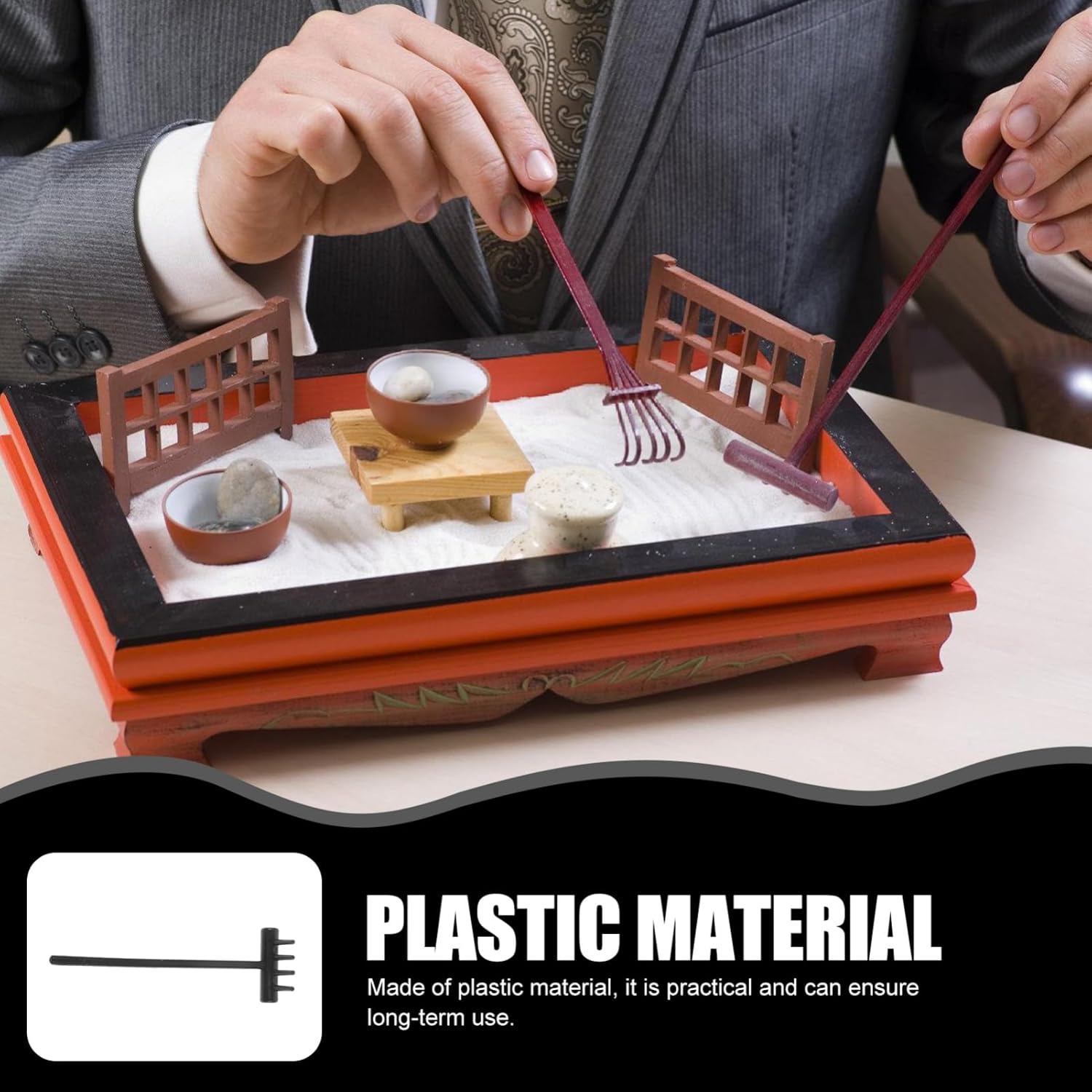 Rastrelli per sabbiera in miniatura: puoi posizionare i mini rastrelli da scrivania sul tuo tavolo da sabbia e realizzarli fai-da-te in base alle tue esigenze, mini rastrelli Strumento rastrello: questi mini rastrelli sono piccoli, realizzati in materiale plastico, sono leggeri, facili da trasportare e riporre, mini rastrelli fai da te Rastrelli artigianali: dopo un processo di lucidatura, sono lisci e delicati sulla pelle delle mani e puoi anche usarli con sicurezza, forniture per sabbiera Rastrello per sabbiera da giardino: divertente per il tuo amico, i mini rastrelli per sabbiera possono essere usati come una decorazione per la tavola o una mini decorazione paesaggistica, strumenti per sabbiera da giardino Rastrello per sabbiera in miniatura: i mini rastrelli possono aiutarti a creare una varietà di idee e ispirazioni diverse sul tuo mini tavolo da sabbia, rastrelli da tavolo