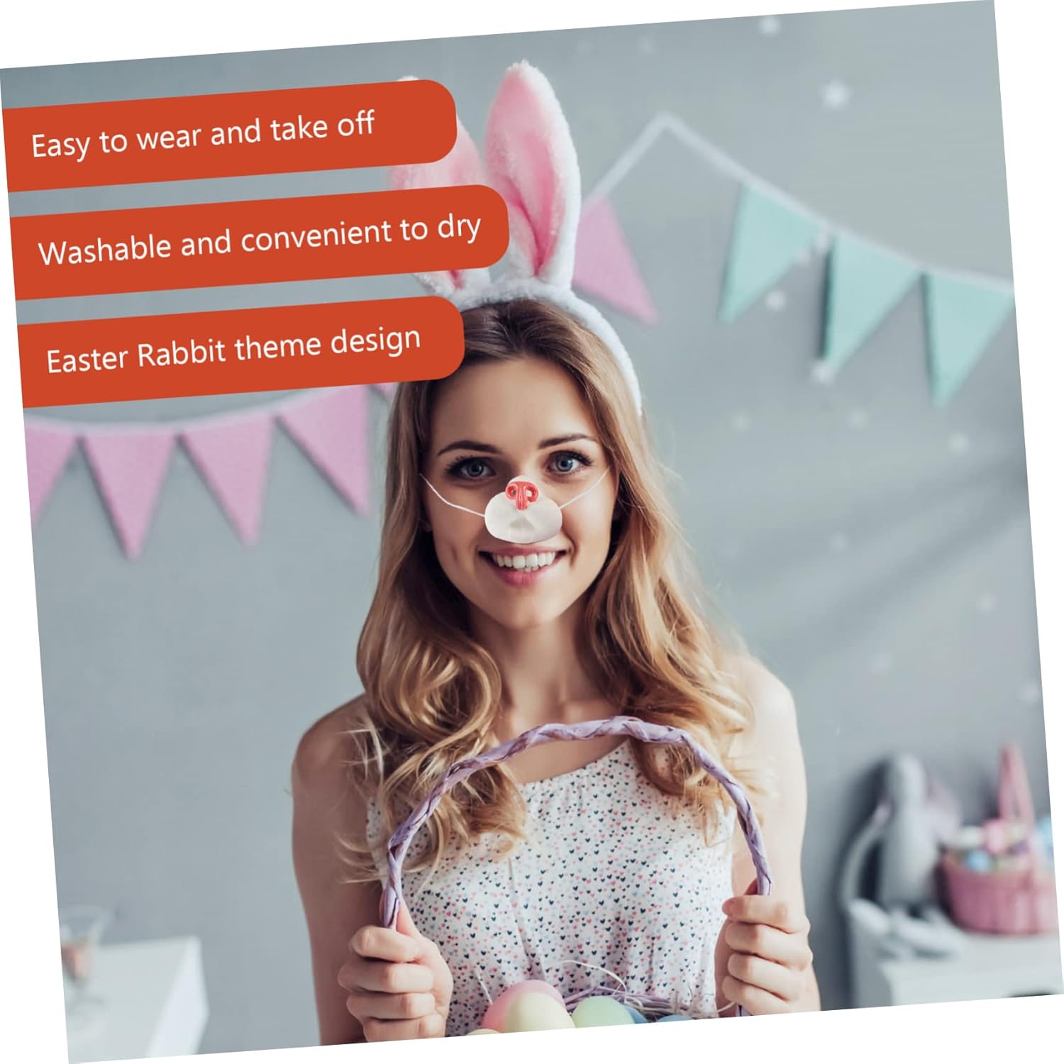 Naso di coniglio portatile: questo accessorio per naso di coniglio ti farà risaltare nel, divertente e vivace, molto gioioso da usare, accessorio decorativo per coniglio Coniglietto di Pasqua - facile da indossare e da togliere, lavabile e comodo da asciugare, e puoi riutilizzarlo l'anno prossimo, naso di coniglio sostituibile Forniture per cosplay di coniglio - accessorio per travestirsi da coniglio ad Halloween, cosplay, feste in maschera, carnevali e feste in maschera, naso di coniglio compatto cosplay di coniglio - design divertente e delicato, realistico e creativo ti permette di entrare nel mondo dei giochi di ruolo, puntello di coniglio sostituibile Puntello di coniglio portatile - una necessità per la decorazione della festa se vuoi fare un cosplay di coniglietto, con sentimento, comodo da indossare, leggero, fornitura di carnevale