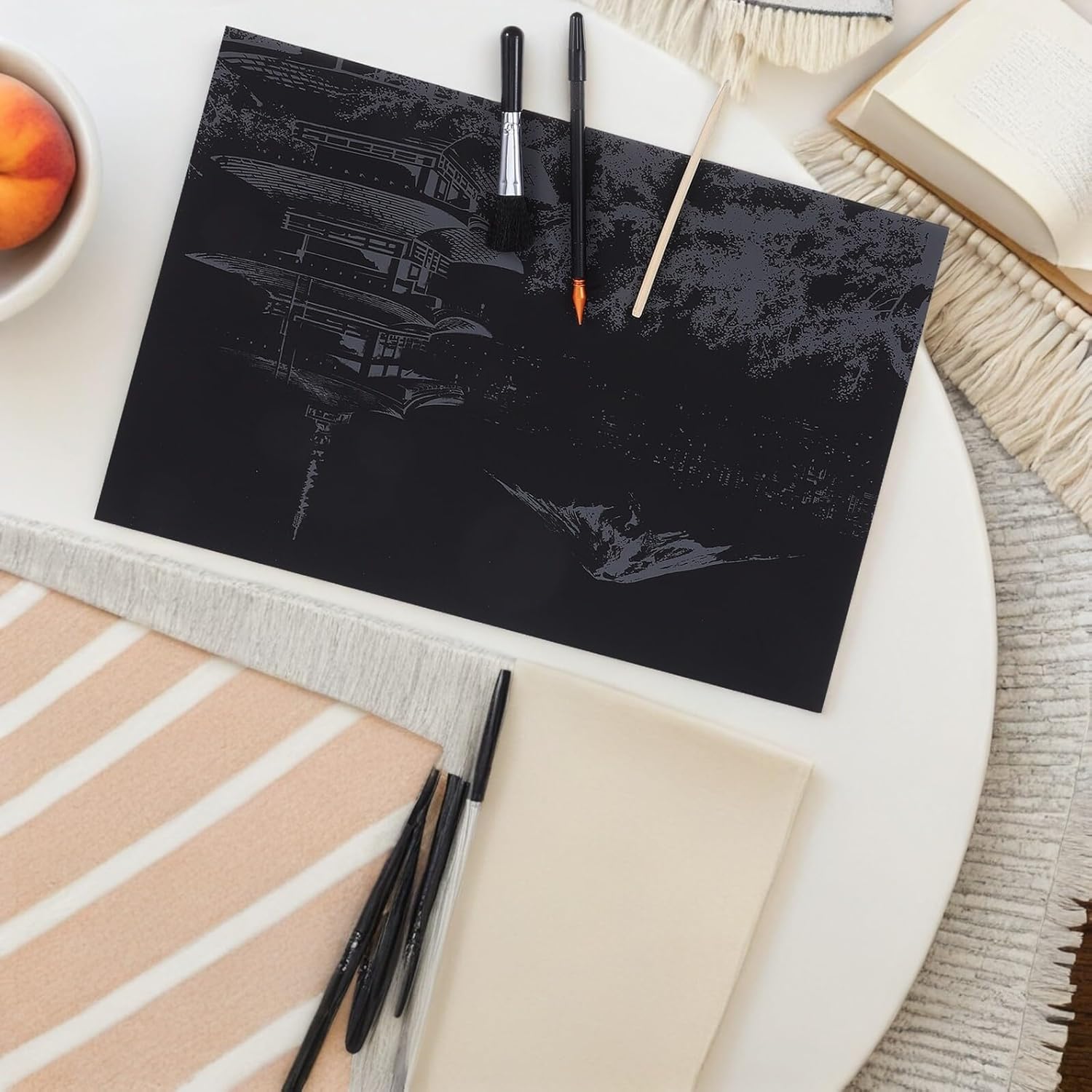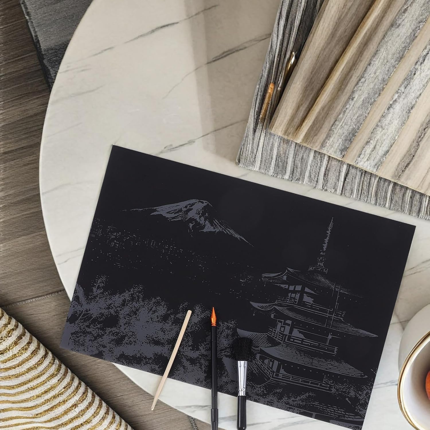 Dipinti da grattare fai da te: colori vivaci e motivi nascosti sotto uno strato opaco, supporto per gratta e vinci Strumenti di disegno e ombreggiatura: puoi incorniciarlo e appenderlo al muro o metterlo sulla scrivania. kit per pittura da grattare Carta da grattare artistica: usa una penna per grattare per sfumare gli schizzi grigi e rivelare bellissimi colori sottostanti. pittura antigraffio Penna per riparazione graffi su legno: migliora l'atmosfera artistica e decora la tua casa, graffi notturni Pittura antigraffio per scene notturne: e materiali per raschiare arte