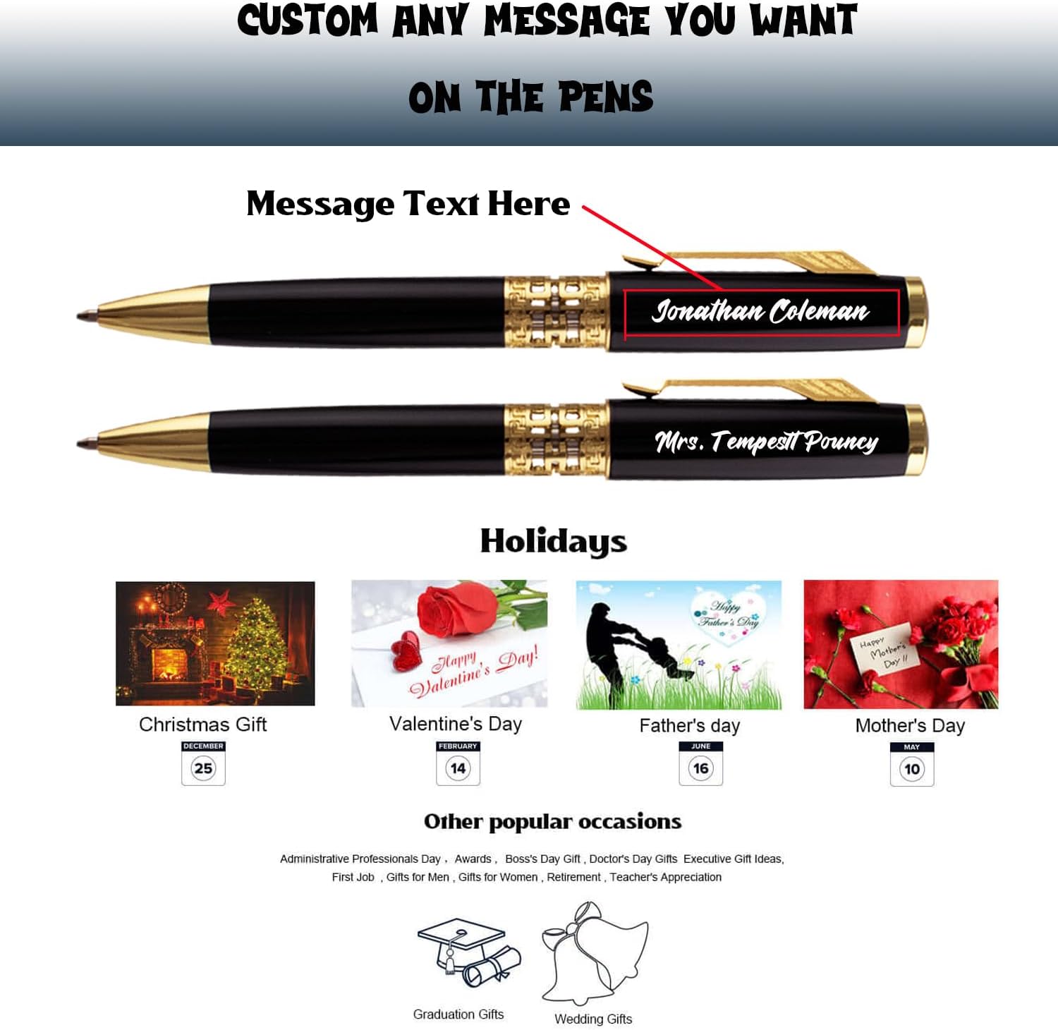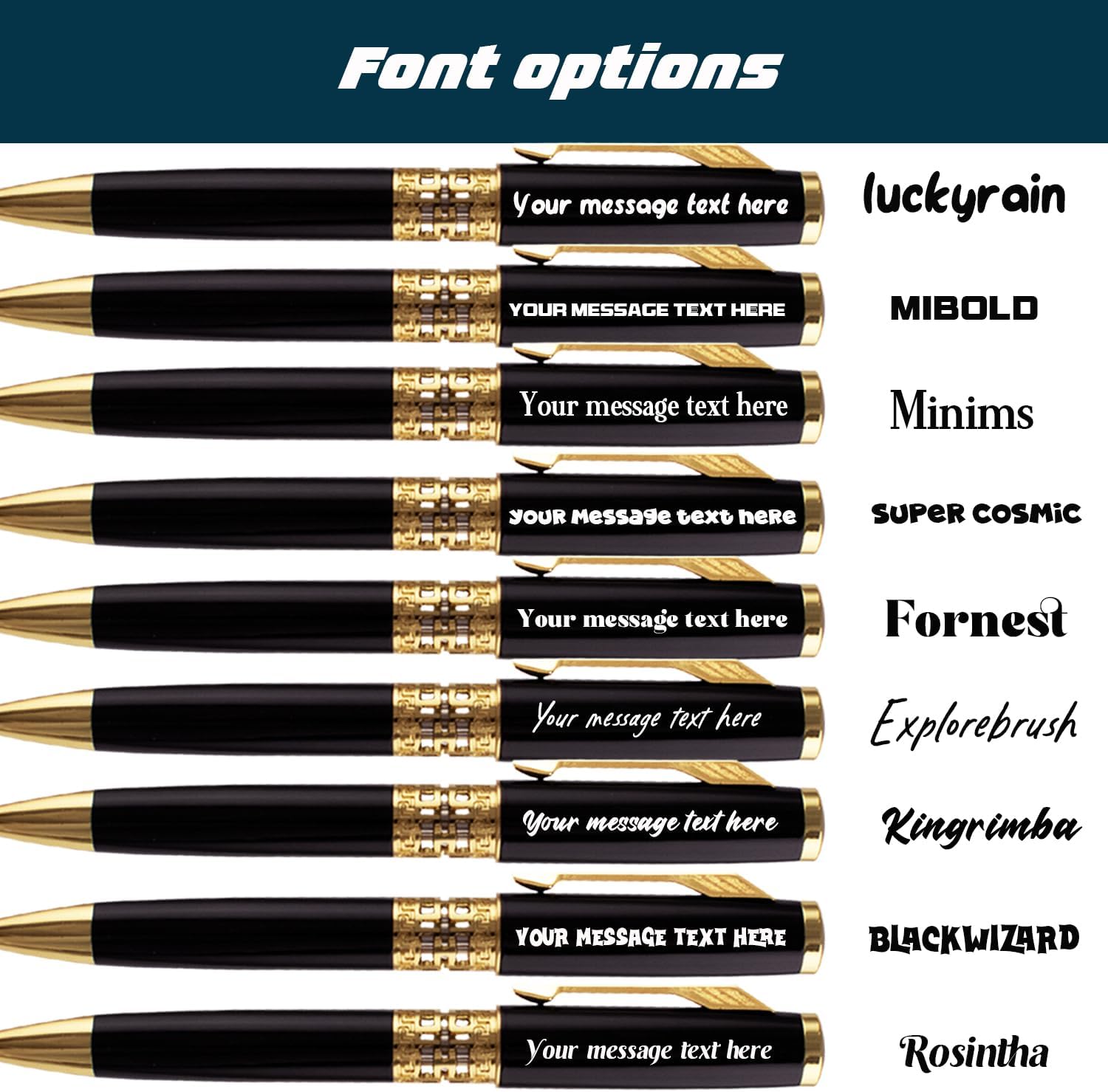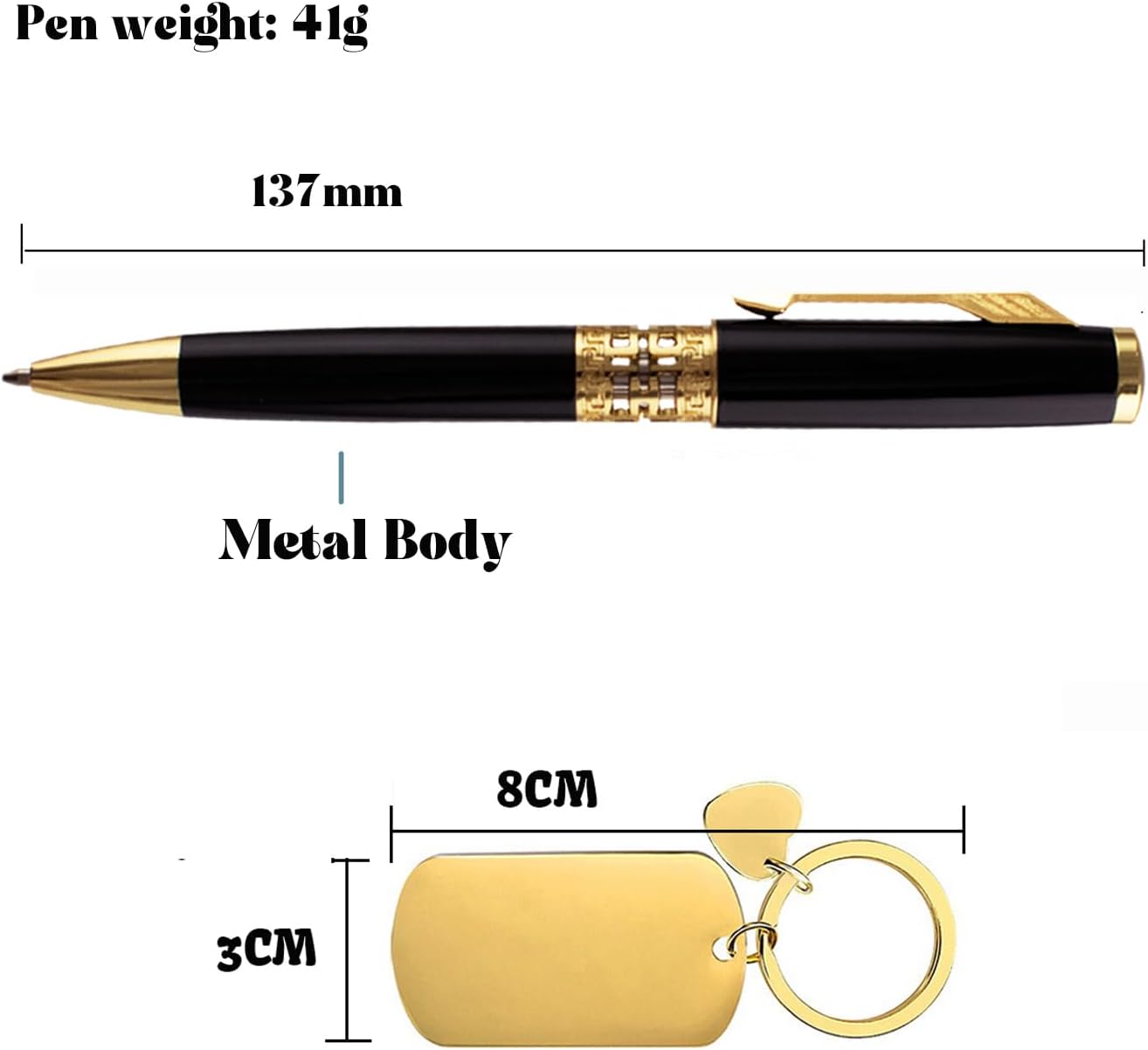 PENNE A SFERA: Personalizziamo ogni ordine di penna. Tutte le nostre penne sono garantite per scrivere bene e avere un bell'aspetto. Le penne personalizzate metalliche Legacy lasceranno sicuramente un'impressione duratura su coloro che le ricevono; tempo che sarà il nostro capo, famiglia, amici, marito o moglie. e inchiostro nero ultra liscio. Personalizzazione gratuita: penne a sfera personalizzate per incidere fino a 50 caratteri per riga, spazi inclusi. Fino a personalizzare 2 linee. Puoi incidere il logo del tuo messaggio di testo e saremo regolati la dimensione del testo in base al tuo contenuto personalizzato. Struttura durevole e di alta qualità: le penne sono realizzate con materiali di alta qualità, garantendo durata e longevità. La struttura in metallo non solo aggiunge una sensazione di alta qualità, ma rende anche le penne resistenti all'usura quotidiana. Questa durata garantisce che gli utenti possano fare affidamento su queste penne per un lungo periodo, rendendole una scelta economica e sostenibile. - Vi preghiamo di contattarci se le penne a sfera personalizzate hanno problemi, ne invieremo nuovamente una nuova o rimborseremo tutti i soldi a voi, forniamo un'eccellente assistenza clienti per offrirti la migliore esperienza utente con i nostri prodotti. Se c'è qualche problema di qualità con la penna, non esitate a venire da noi. rispondere entro 24 ore.