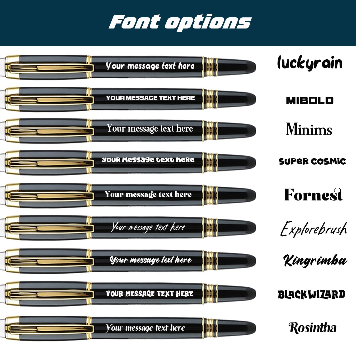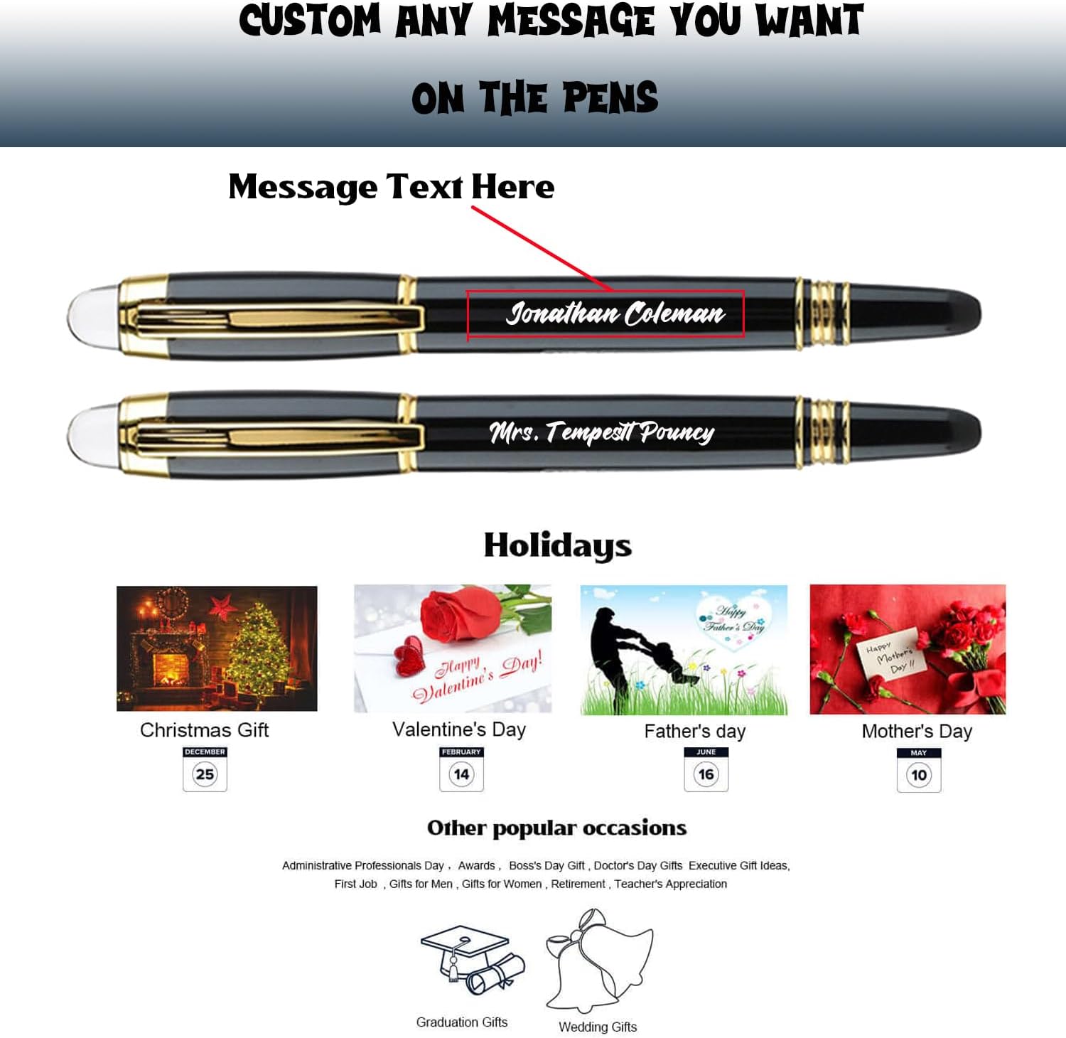 PENNE ROLLERBALL: Personalizziamo ogni ordine di penna. Tutte le nostre penne sono garantite per scrivere bene e avere un bell'aspetto. Le penne personalizzate metalliche Legacy lasceranno sicuramente un'impressione duratura su coloro che le ricevono; tempo che sarà il nostro capo, famiglia, amici, marito o moglie. e inchiostro nero ultra liscio. Personalizzazione gratuita: penne a sfera personalizzate per incidere fino a 50 caratteri per riga, spazi inclusi. Fino a personalizzare 2 linee. Puoi incidere il logo del tuo messaggio di testo e saremo regolati la dimensione del testo in base al tuo contenuto personalizzato. Struttura durevole e di alta qualità: le penne sono realizzate con materiali di alta qualità, garantendo durata e longevità. La struttura in metallo non solo aggiunge una sensazione di alta qualità, ma rende anche le penne resistenti all'usura quotidiana. Questa durata garantisce che gli utenti possano fare affidamento su queste penne per un lungo periodo, rendendole una scelta economica e sostenibile. Vi preghiamo di contattarci se le penne a sfera personalizzate hanno problemi, ne invieremo nuovamente una nuova o rimborseremo tutti i soldi a voi, forniamo un'eccellente assistenza clienti per offrirti la migliore esperienza utente con i nostri prodotti. Se c'è qualche problema di qualità con la penna, non esitate a venire da noi. rispondere entro 24 ore.