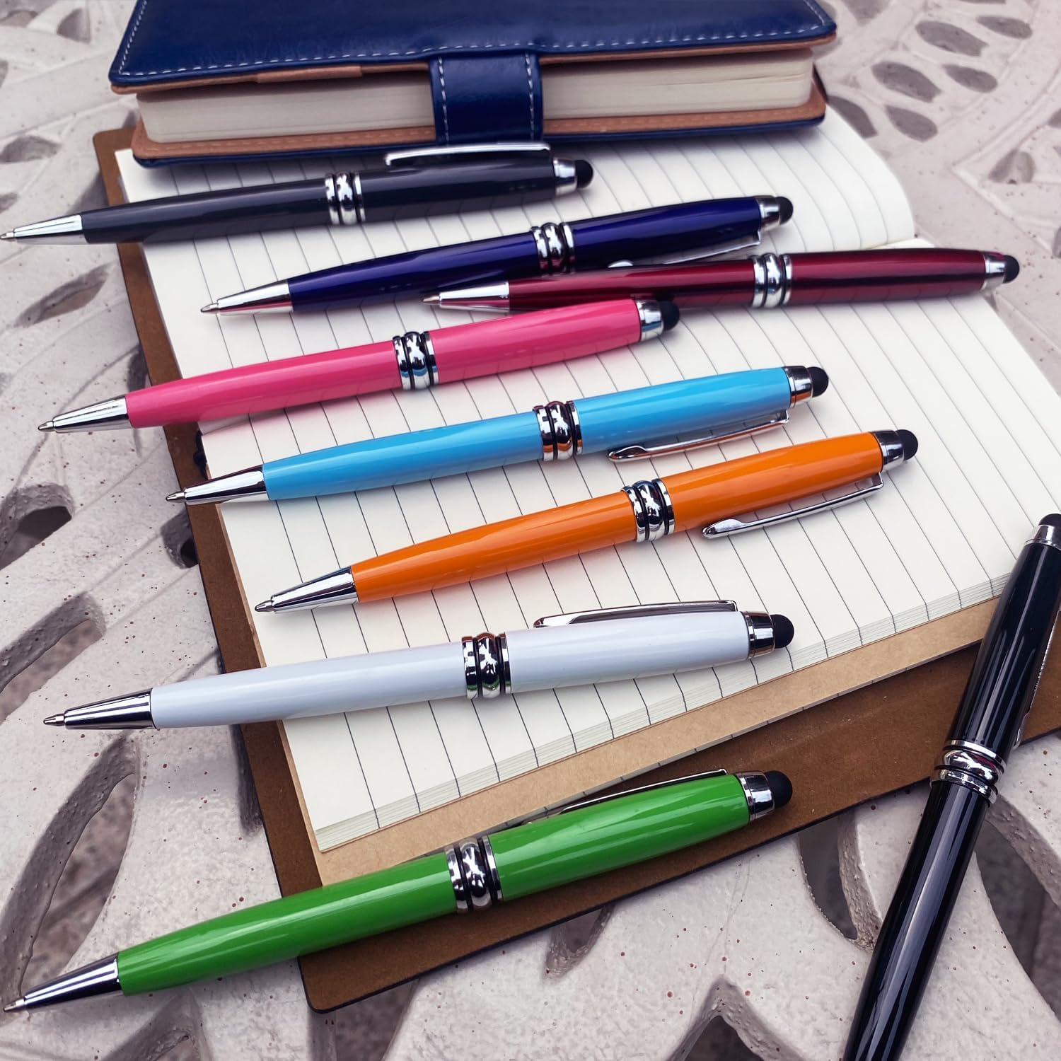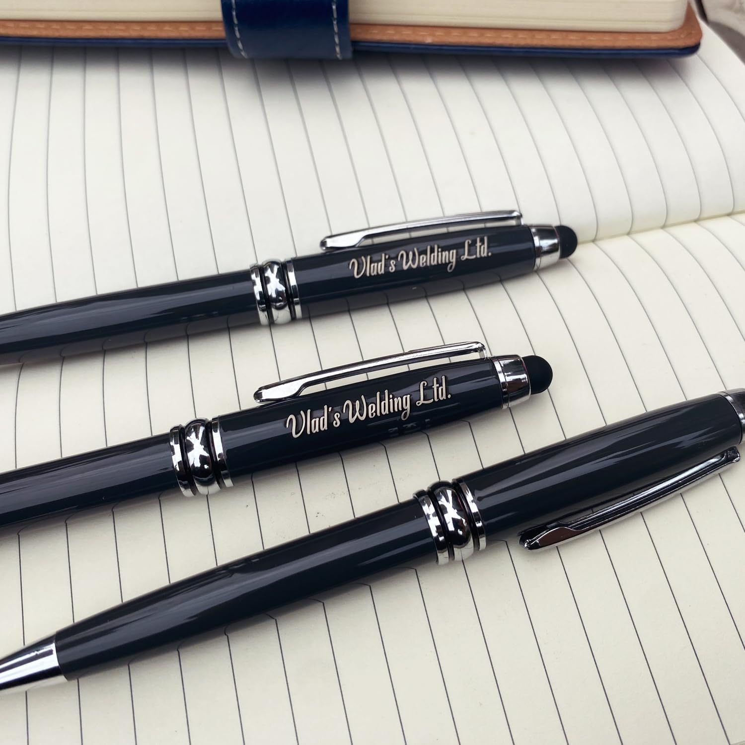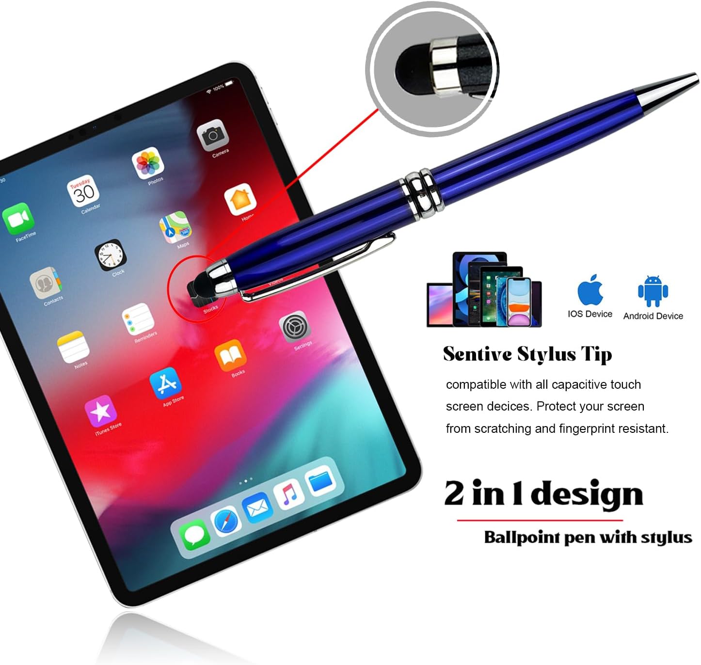 PENNE A SFERA DI CRISTALLO: Personalizziamo ogni ordine di penna. Tutte le nostre penne sono garantite per scrivere bene e avere un bell'aspetto. Le penne personalizzate metalliche Legacy lasceranno sicuramente un'impressione duratura su coloro che le ricevono; tempo che sarà il nostro capo, famiglia, amici, marito o moglie. e inchiostro nero ultra liscio. Personalizzazione gratuita: penne a sfera personalizzate per incidere fino a 35 caratteri per riga, spazi inclusi. Fino a personalizzare 2 linee. Puoi incidere il logo del tuo messaggio di testo e saremo regolati la dimensione del testo in base al tuo contenuto personalizzato. Compatibilità touchscreen: l'inclusione di uno stilo su ogni penna li rende estremamente pratici nell'era moderna in cui i dispositivi touchscreen sono onnipresenti. La funzione stilo assicura che gli utenti possano passare senza problemi dalla scrittura su carta alla navigazione su schermi digitali senza la necessità di strumenti aggiuntivi. Questa doppia funzionalità migliora la praticità e l'efficienza, soprattutto per coloro che passano spesso dalla presa di appunti tradizionale a quella digitale. Struttura durevole e di alta qualità: le penne sono realizzate con materiali di alta qualità, garantendo durata e longevità. La struttura in metallo non solo aggiunge una sensazione di alta qualità, ma rende anche le penne resistenti all'usura quotidiana. Questa durata garantisce che gli utenti possano fare affidamento su queste penne per un lungo periodo, rendendole una scelta economica e sostenibile.