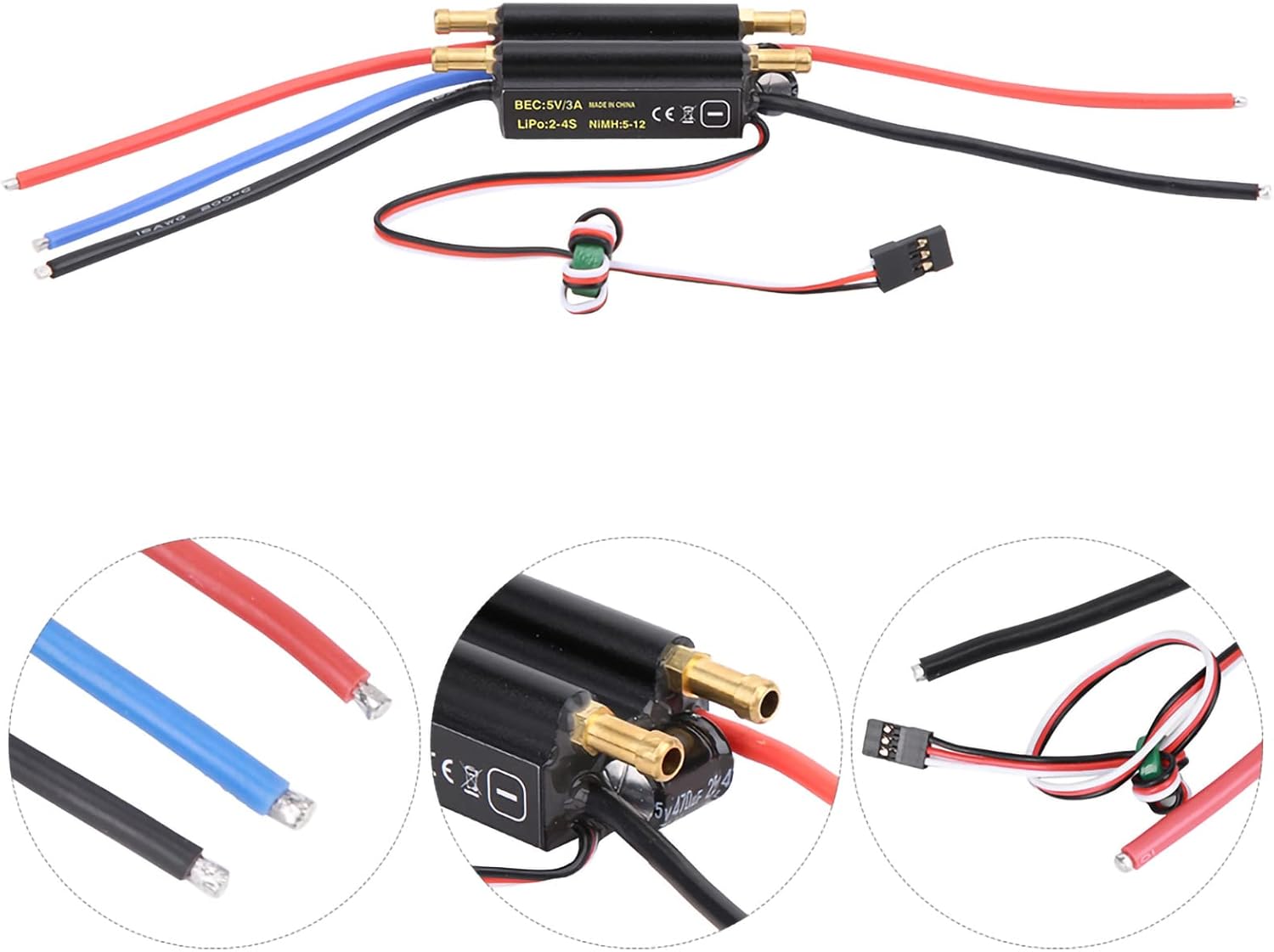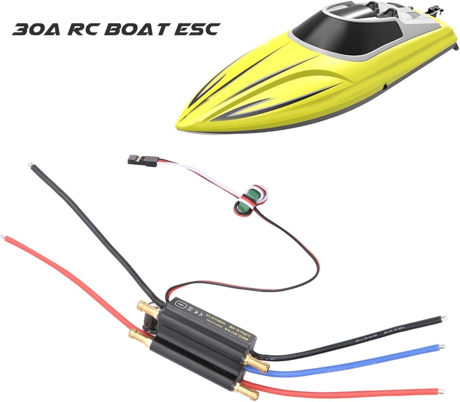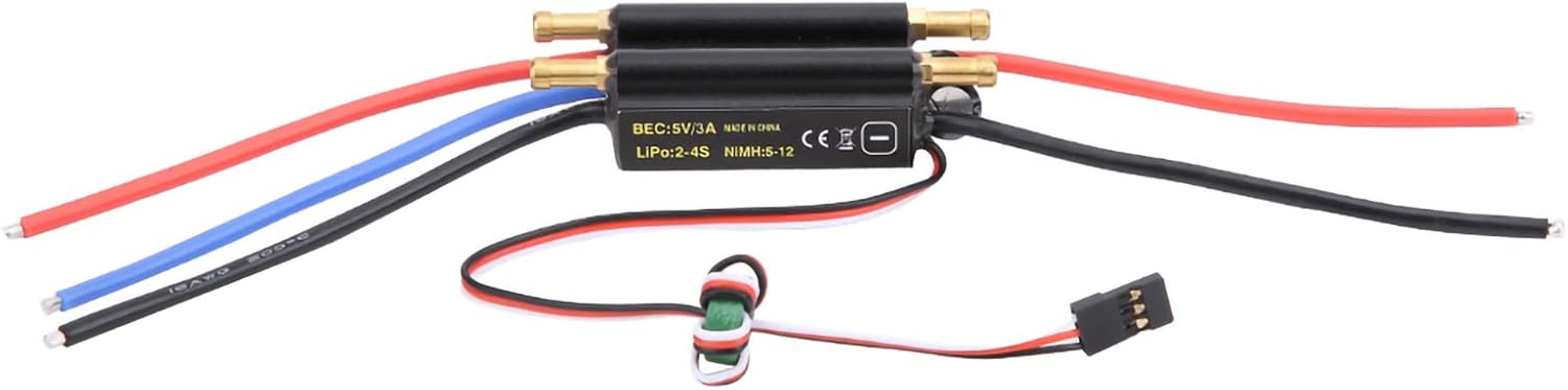 L'ESC per barca RC da 30 A adotta un guscio metallico di alta qualità, nuovi design dei circuiti e capacità di forte interferenza. Esc senza spazzole 30A Esc per barca Rc, funzione potente, drenaggio a doppio canale, può raffreddarsi rapidamente. m Sbec incorporato combinato Esc / motore raffreddato, facile da usare e i parametri possono essere configurati tramite il trasmettitore o la scheda di programma. Interruttore Bec integrato senza spazzole per ESC per barca, carico ad alta potenza con servo, potenza ridotta. Per gli appassionati di barche Rc, è una scelta ideale per migliorare le prestazioni della barca Rc.