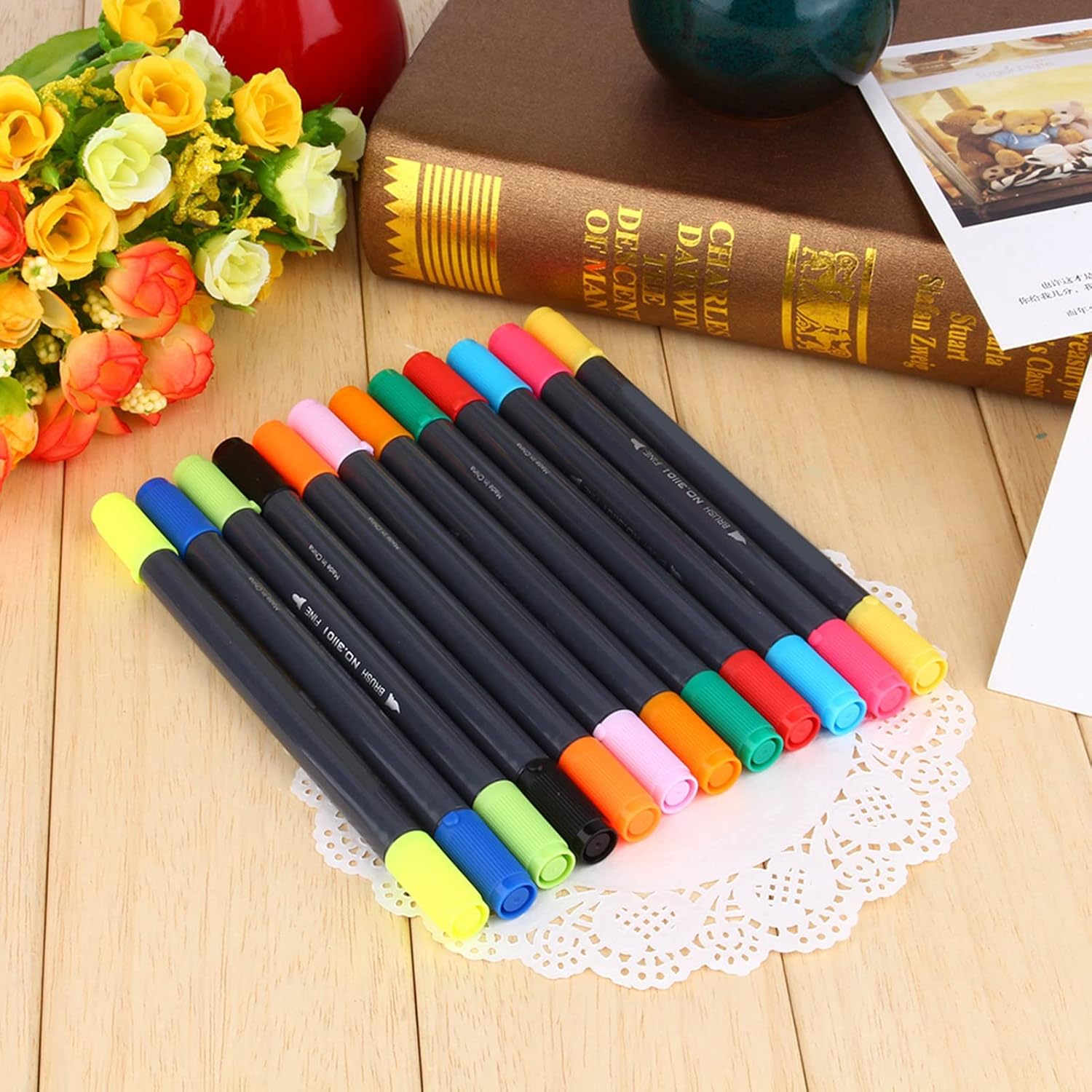 Design versatile a doppia punta: questi pennarelli presentano un design a doppia punta, offrendo sia una punta larga da 1-2 mm che una punta fine da 0,8 mm. Questa versatilità consente agli artisti di creare senza sforzo qualsiasi cosa, dai tratti audaci e ampi ai delicati lavori di dettaglio, rendendoli ideali per varie applicazioni artistiche, tra cui la tracciatura, la colorazione e lo schizzo di disegni complessi. Inchiostro non tossico a base d'acqua: realizzati con inchiostro colorante a base d'acqua non tossico e inodore, questi pennarelli sono sicuri per gli artisti di tutte le età. Possono essere utilizzati comodamente per lunghi periodi, permettendoti di concentrarti interamente sulla tua creatività senza preoccuparti delle sostanze chimiche dannose, rendendoli una scelta eccellente per scuole, case o studi. Colori sfumabili e reattivi all'acqua: questi pennarelli eccellono nel sfumare e mescolare i colori, permettendoti di creare sfumature e lavaggi unici semplicemente aggiungendo acqua. Questa caratteristica è particolarmente vantaggiosa per chi ama utilizzare la tecnica della tempera su carta, poiché apre infinite possibilità di espressione artistica e sperimentazione. Impugnatura e confortevole: il fusto rotondo di questi pennarelli è progettato per garantire comfort e facilità durante l'uso prolungato. La sua superficie elegante garantisce una presa salda, fornendo un controllo eccellente mentre lavori sulle tue creazioni artistiche. Goditi un'esperienza di disegno con pennarelli tanto intuitivi quanto versatili. Resa cromatica uniforme: prodotti esclusivamente per garantire una saturazione e un'applicazione del colore uniformi, questi pennarelli assicurano che ogni tratto sia vibrante e coerente come il precedente. La combinazione di materiali di alta qualità e lavorazione esperta significa che puoi fare affidamento su queste penne per risultati sorprendenti, dando vita alle tue visioni ad ogni utilizzo.