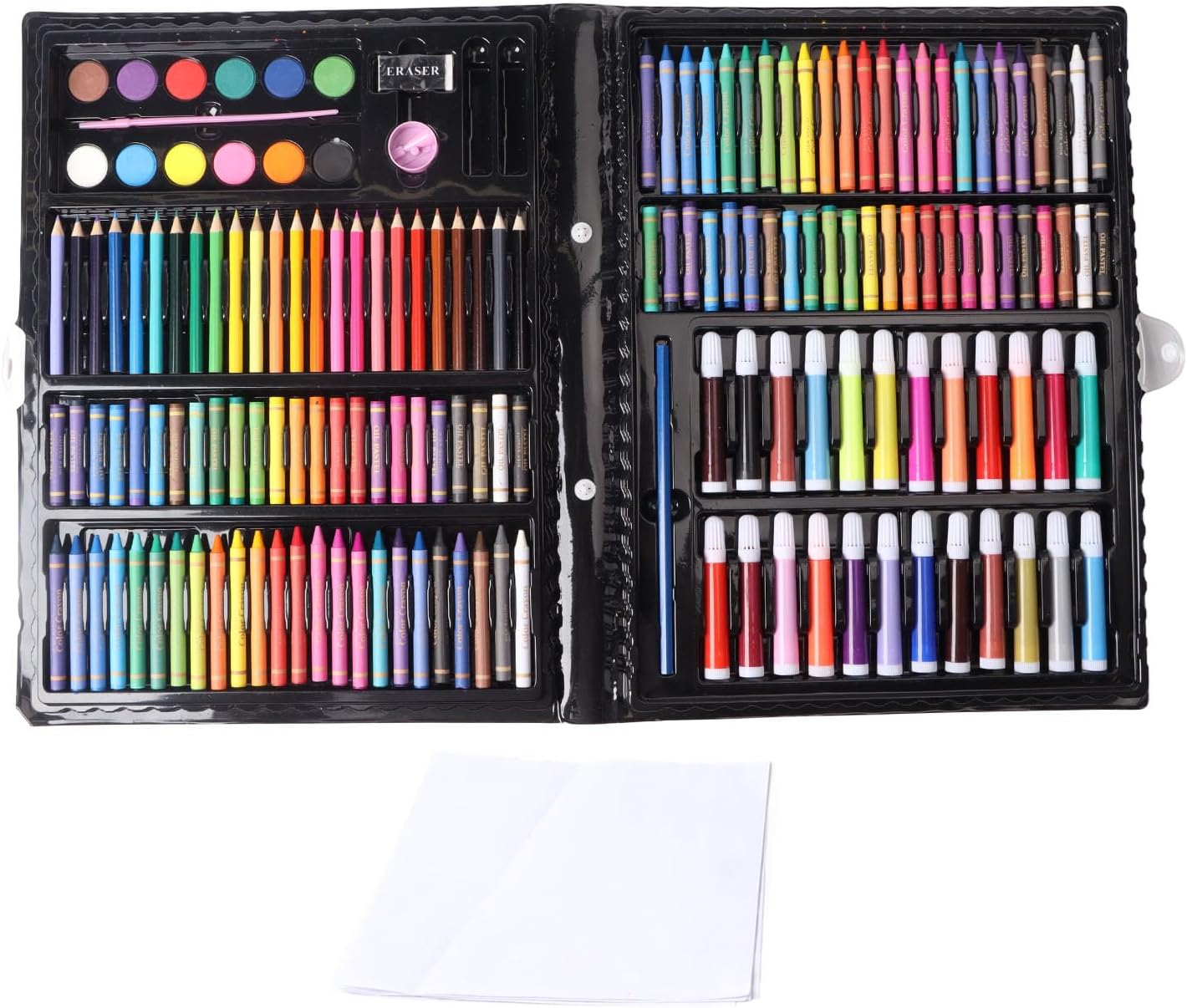 Set completo: ---- il set comprende 145 penne di matite colorate, pastelli, matite acquerellabili, pastelli a olio, matite, 12 colori di pastelli acquerellabili e accessori, vari progetti. Conservazione portatile : ---- il set di pittura viene fornito con un contenitore, per riporre e trasportare, evitare di perdere colori e usura, più comodo da usare. Giocattoli educativi sicuri: ---- set di acquerelli realizzato in materiale sicuro, adatto per dipingere, sviluppare abilità pratiche ed esercitare il pensiero divergente. Varietà di colori vivaci: ---- il set da pittura per bambini ha più di cento colori e diversi di pennelli da pittura, diversi e diversi, possono rispondere a una varietà di esigenze di utilizzo. Bambini :----set di pittura ad acquerello divertente e interessante, adatto per compleanni, giorno e come, ragazzi e ragazze adatti.