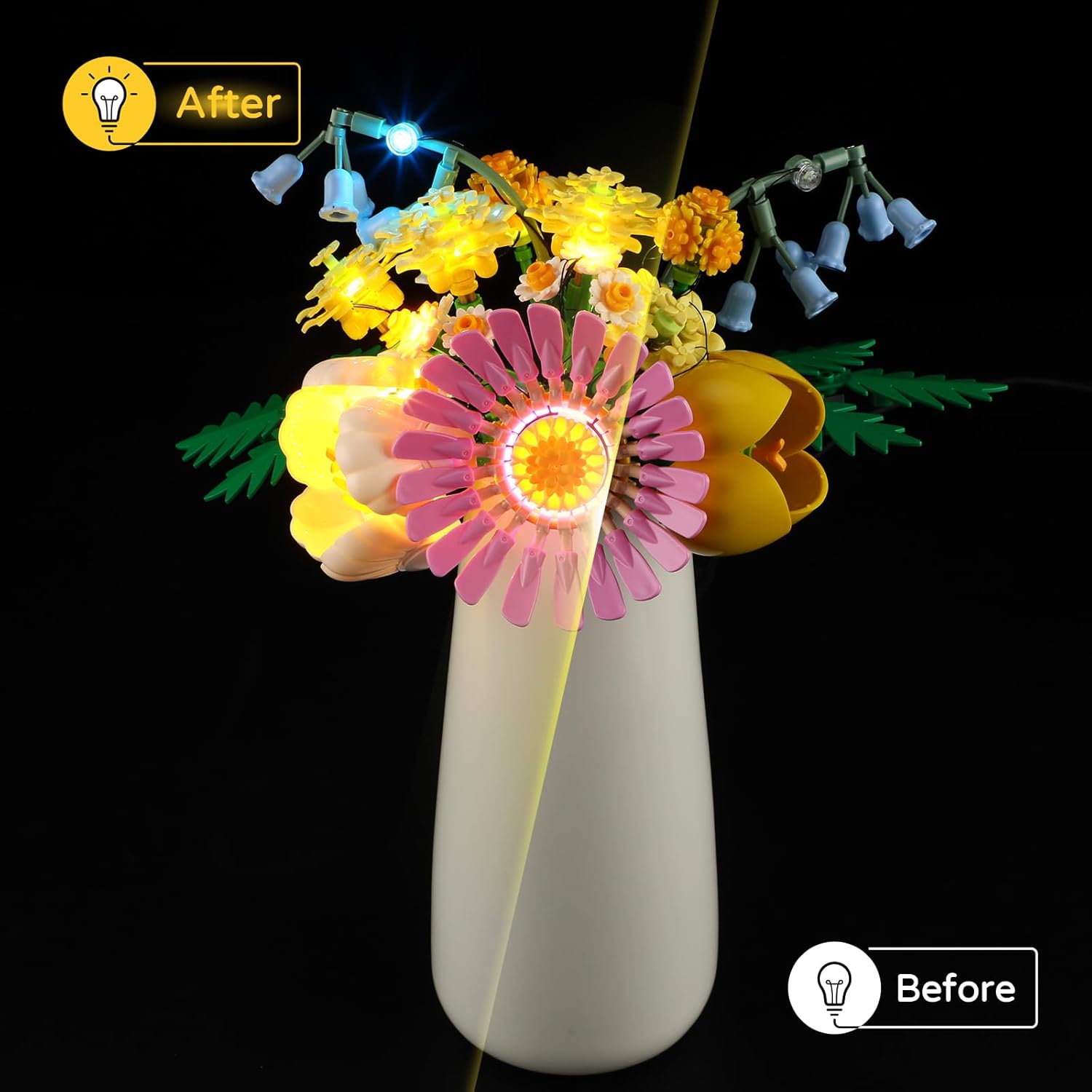 Ottima aggiunta al tuo set di elementi costitutivi: questo kit di luci a LED è progettato appositamente per il modello di elementi costitutivi Piccolo bouquet estivo della Collezione Botanica 10347. SOLO set di luci a LED: si prega di notare che viene fornito solo il set di luci. Tutti i set di elementi costitutivi mostrati nelle immagini e nei video non sono inclusi. Fantastica scelta di regali: questo set di luci illuminerà il tuo set di mattoncini e lo renderà un fantastico regalo di compleanno, un regalo di Natale per i bambini o qualsiasi appassionato di modellismo. Istruzioni passo passo: scansiona il codice 2D dalla scatola Viene fornito con istruzioni semplici e dettagliate per guidarti passo dopo passo nell'assemblaggio delle luci. Servizio clienti In caso di problemi o difficoltà con il prodotto, non esitate a contattarci. Saremo sempre lì per te.