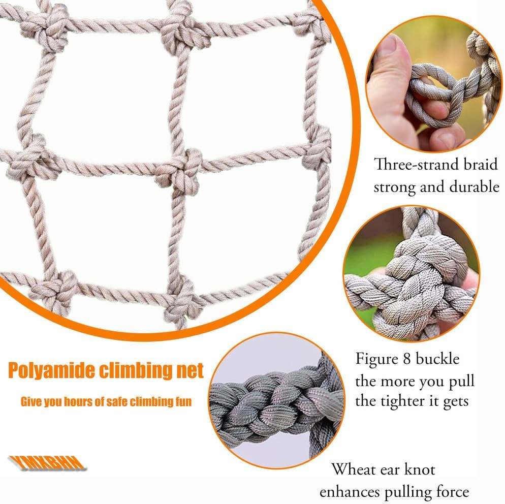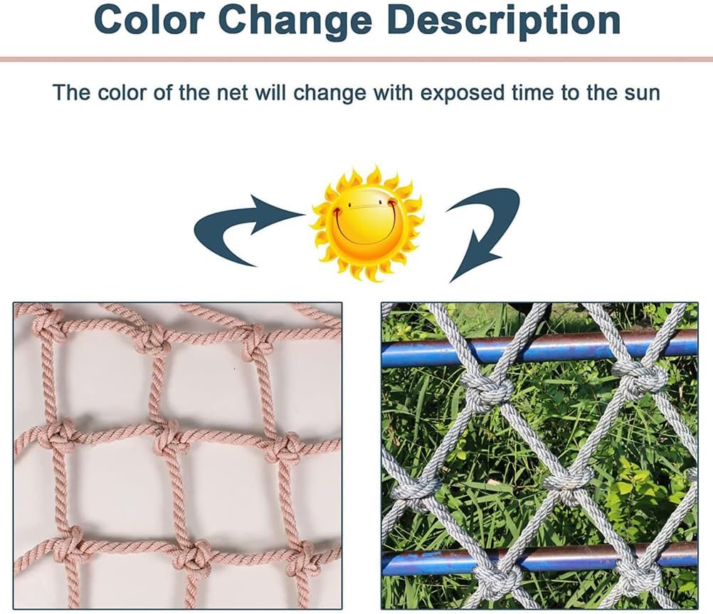 YFQHZDS Specifiche della rete di corda: Diametro della corda: 8 mm (0.31 pollici), maglia della rete di corda: 20x20 cm (7.9x7.9 pollici); Abbiamo una varietà di dimensioni tra cui scegliere. Puoi personalizzare reti da arrampicata di altre dimensioni e specifiche Materiale della rete di corda: la rete da arrampicata è realizzata a mano con corda in fibra di poliammide. La forza è uniforme e non cade facilmente. La superficie della maglia ha una forte resistenza agli urti e una forte capacità di carico. Realizzata in treccia multi-filo, è resistente all'usura Protezione di sicurezza: la rete di corda è adatta per balconi, scale, corridoi, cortili, scuole, palestre, parchi giochi e club sportivi per impedire a persone o oggetti di cadere e garantire la sicurezza di animali domestici e persone Rete decorativa multifunzionale: l'interno può essere utilizzato per la decorazione, rete da soffitto, rete da parete per foto, rete per stendere i vestiti, divisorio per stanze; l'esterno può essere utilizzato per parchi di divertimento, strutture pubbliche, recinti paesaggistici, protezione di ponti sospesi Promemoria: dopo aver realizzato la rete di corda, potrebbe rimanere un odore, che scomparirà dopo la ventilazione e l'asciugatura. La rete di corda in fibra di poliammide diventerà grigia dopo essere stata lasciata al sole, il che è normale