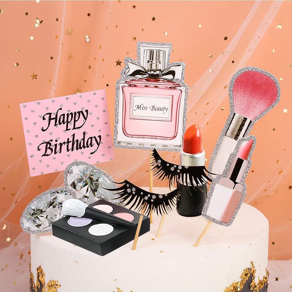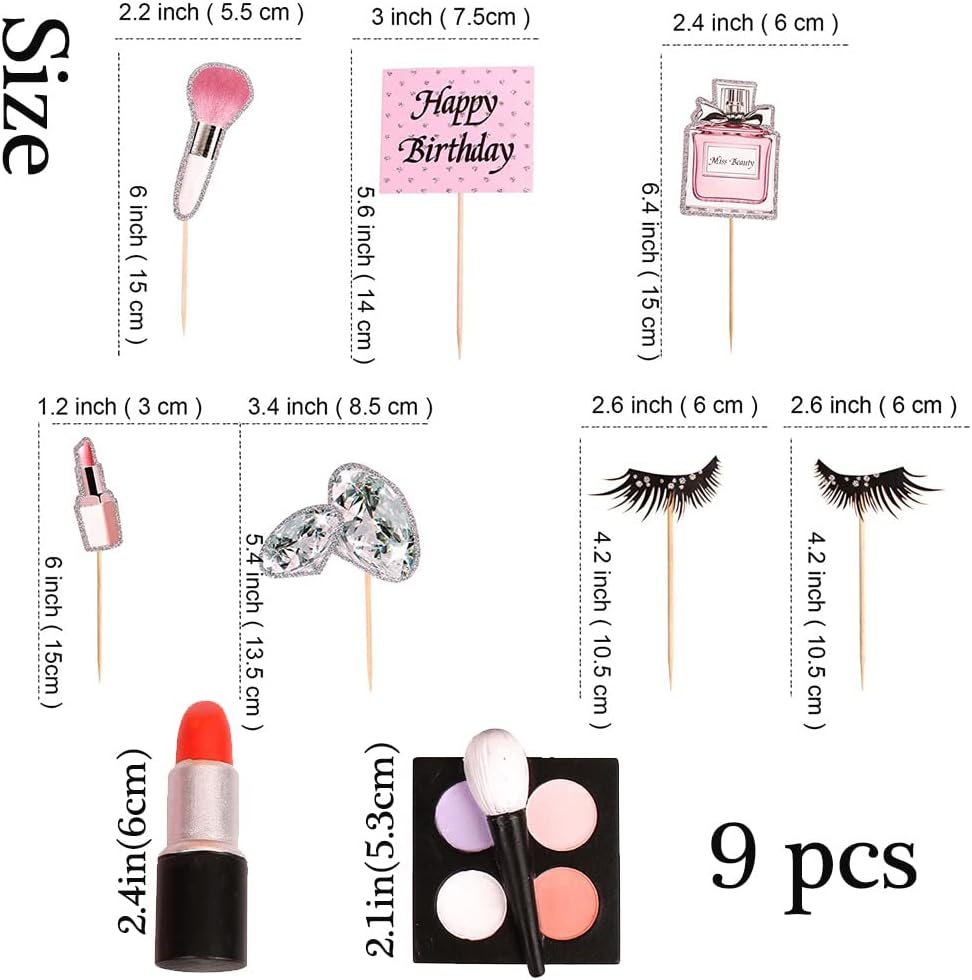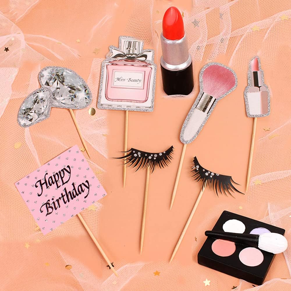 Decorazione a tema trucco: questi toppers per cupcake trucco sono progettati in forma cosmetica, mostrano facilmente il tema della festa e migliorano l'atmosfera festosa. Il loro aspetto scintillante li fa brillare alla luce, attirando l'attenzione degli ospiti e lasciando loro un ricordo indimenticabile. Materiale per decorare torte: questi toppers cupcake cosmetici in resina sono realizzati a mano con resina ecologica, dipinti con cura e altamente dettagliati per un aspetto realistico, non facili da sbiadire, non facili da indossare. I centrini per torte trucco glitter sono realizzati in carta, atossici e sicuri per decorare diversi alimenti. Pacchetto torta trucco: il pacchetto contiene 9 toppers per torta a tema trucco, con 7 stili diversi. Disponibile in diversi stili, tra cui rossetto, bottiglia di profumo, scatola di ombretti, pennello, ciglia e così via. Ampia gamma di applicazioni: i centrotavola per torte cosmetici sono adatti per molte occasioni, tra cui feste a tema cosmetico per donne, addio al nubilato, addii al nubilato, feste di compleanno per ragazze, addio al nubilato, ecc. I centrotavola per torta a tema trucco possono aggiungere un'atmosfera gioiosa alla tua festa. Suggerimenti: il topper per torta con glitter è progettato su un lato ed è semplicemente bianco sul retro. Solo a scopo decorativo, non commestibile, non utilizzare nel forno né nel microonde.
