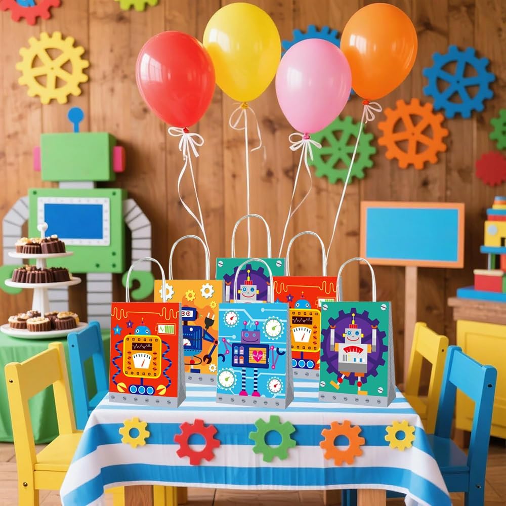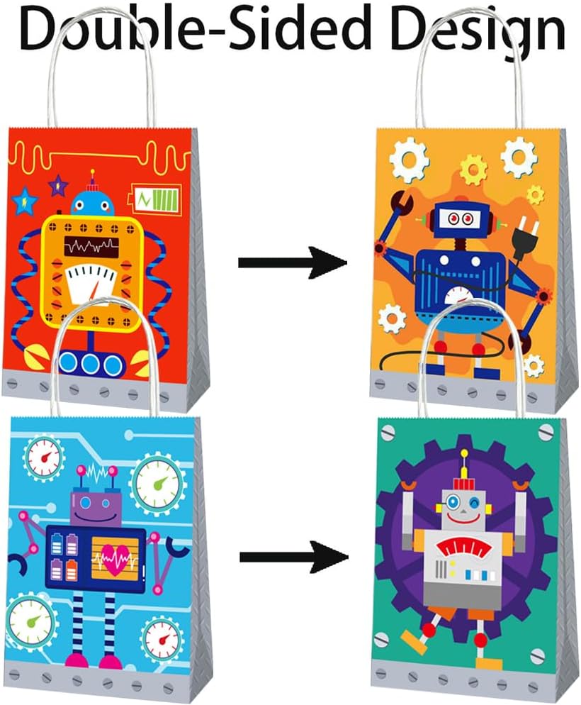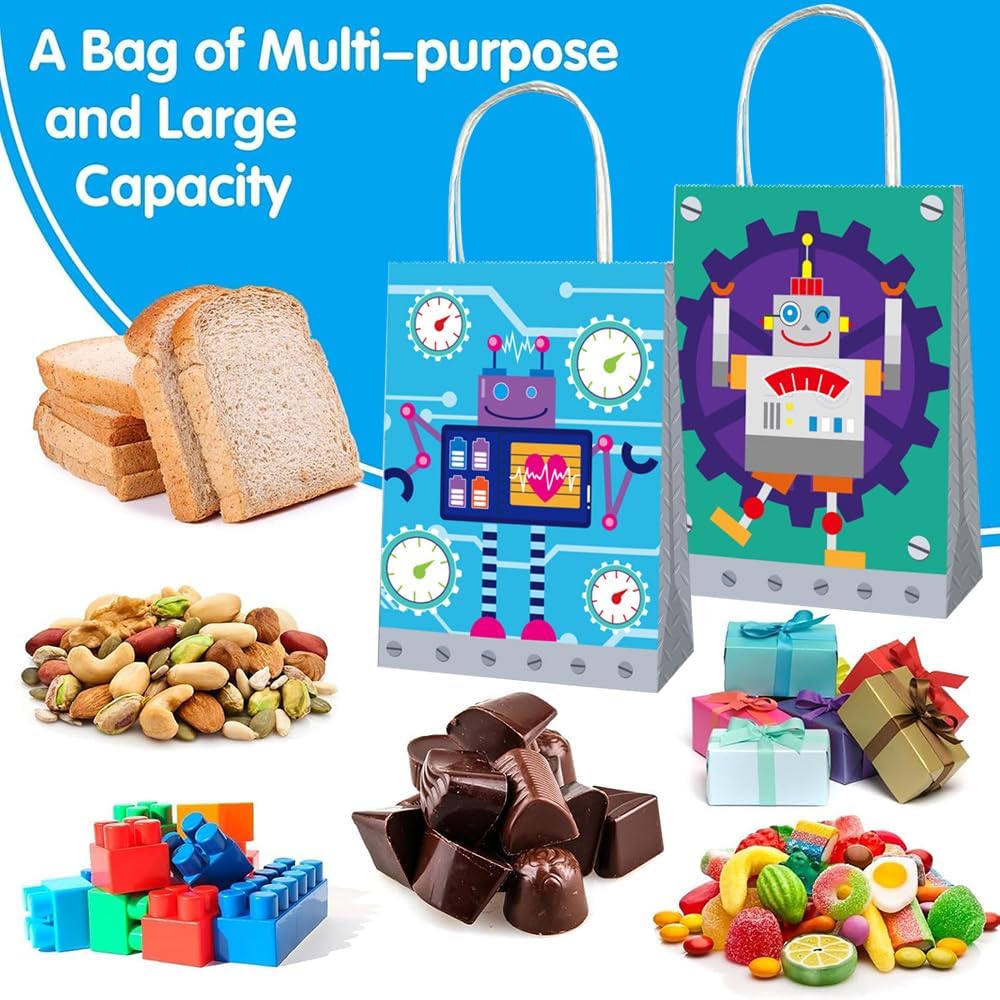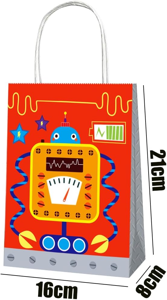 Design: questi sacchetti regalo sono colorati e con motivi chiari, queste scatole hanno un motivo robot unico su entrambi i lati, che sorprenderà ancora di più i tuoi ospiti e darà alla festa un luogo più luminoso. Contenuto della confezione: riceverai scatole regalo in carta robot da 12 pezzi per ogni set; Ogni confezione regalo del robot misura ca. 16 x 8 x 21 cm, dimensione ideale e quantità sufficiente da utilizzare per soddisfare le diverse esigenze. Materiale: queste borse da festa robot sono realizzate in carta di alta qualità, sicure, leggere, stabili e non facili da rompere o deformare, che possono essere utilizzate a lungo, garantendo un utilizzo regolare e confortevole. Ampiamente usato: queste borse robot sono della dimensione ideale per popcorn, biscotti, caramelle o altri regali. Borse robot adatte per essere utilizzate come buste regalo, buste per caramelle, buste per regali, borse per feste e altro ancora, accessori ideali per la tua festa. Versatile: le scatole sono adatte per la maggior parte delle occasioni. Puoi usarli per feste di compleanno, feste per bambini, baby shower e altro ancora. Puoi metterli al centro del tavolo per decorare la tua festa o la tua casa, rendendo la tua festa più colorata e calda.