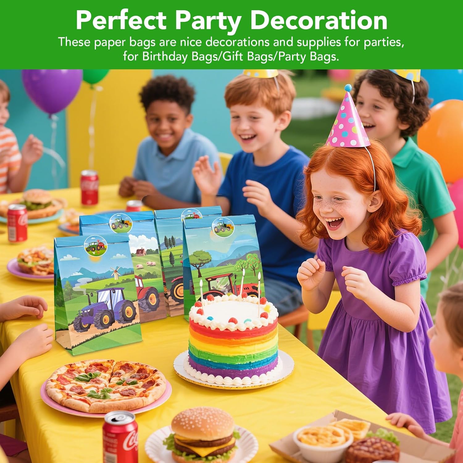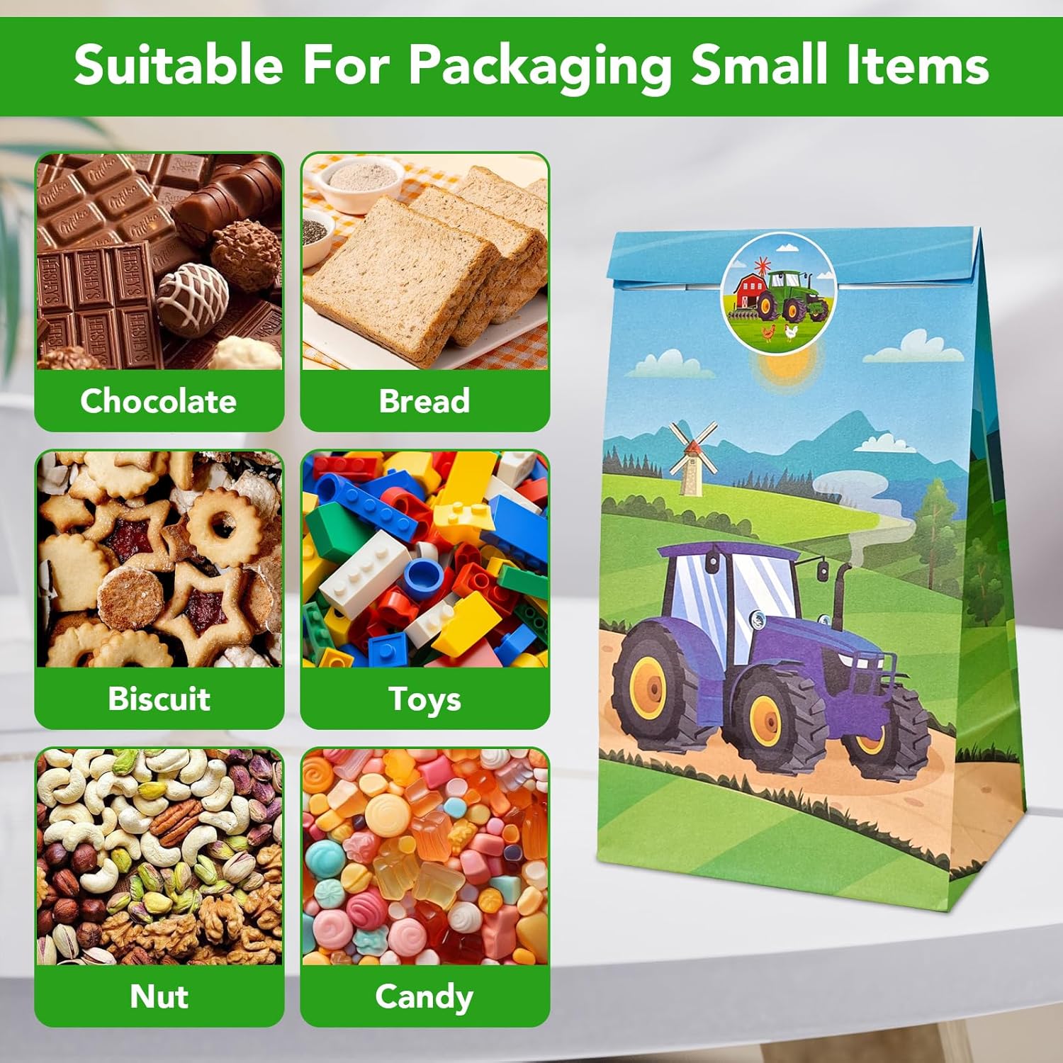 【Sacchetti regalo per trattore】Riceverai 12 sacchetti regalo per trattore con 18 adesivi rotondi per trattore, ideali per confezionare regali e bomboniere. Questi sacchetti regalo di compleanno per bambini sono perfetti per i compleanni dei bambini o per le feste a tema fattoria. 【DIMENSIONE】 La borsa regalo del trattore misura 22 x 12 x 8 cm (8,7 x 4,7 x 3,1 pollici) ed è disponibile in 4 diversi design grafici. 【MATERIALE SICURO】 Questi sacchetti regalo sono realizzati in carta resistente e di alta qualità. Grafica chiara e colori brillanti. Facile da aprire o piegare, leggero e facile da trasportare, ideale per confezionare regali. 【APPLICAZIONE VERSATILE】Perfetta per conservare bomboniere, cibo, biscotti, caramelle, noci, cracker, giocattoli e altro ancora. Perfetto per compleanni di bambini, feste a tema, feste di Natale, ecc. Regalo a sorpresa: che si tratti di un regalo di compleanno per i tuoi bambini o di biscotti fai da te per i tuoi amici, tutti i tipi di regali possono essere perfettamente confezionati in una bellissima borsa con motivo trattore, saranno molto felici quando lo riceveranno e non ti deluderanno mai.