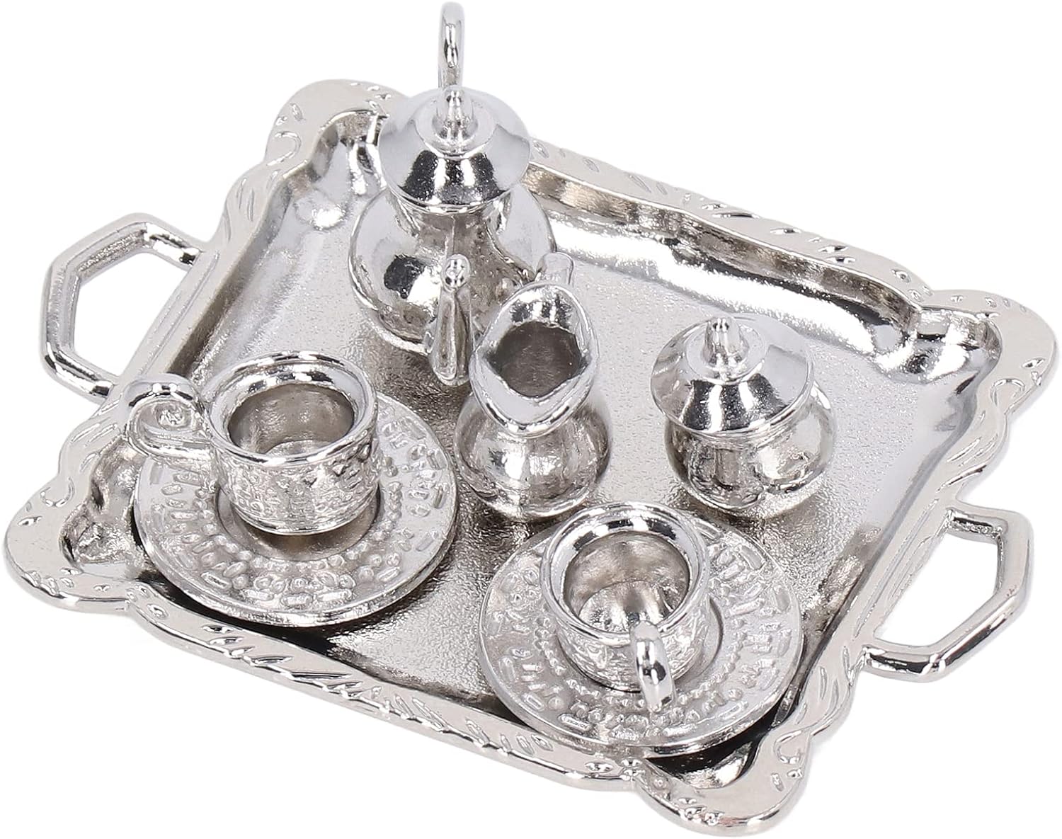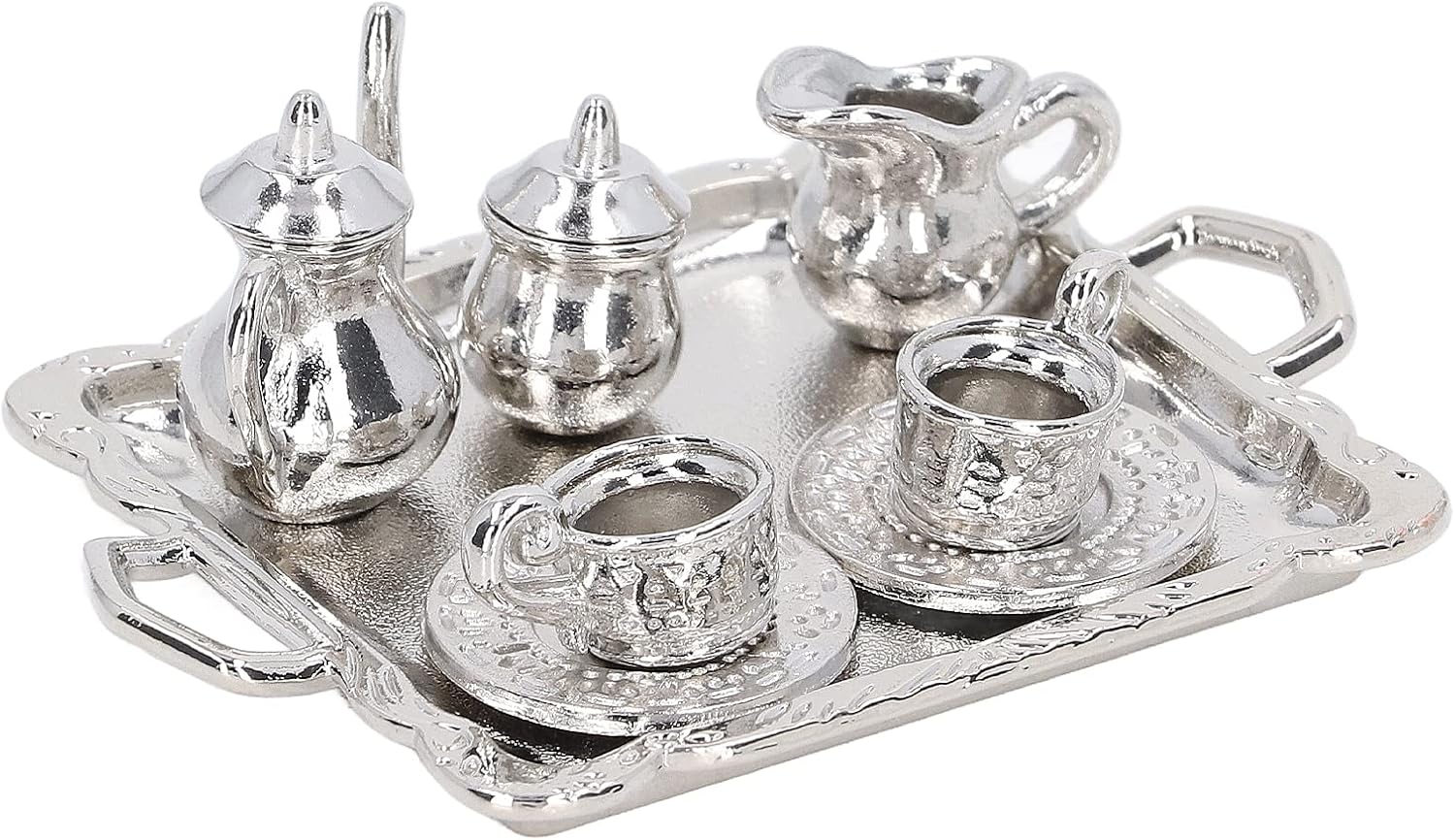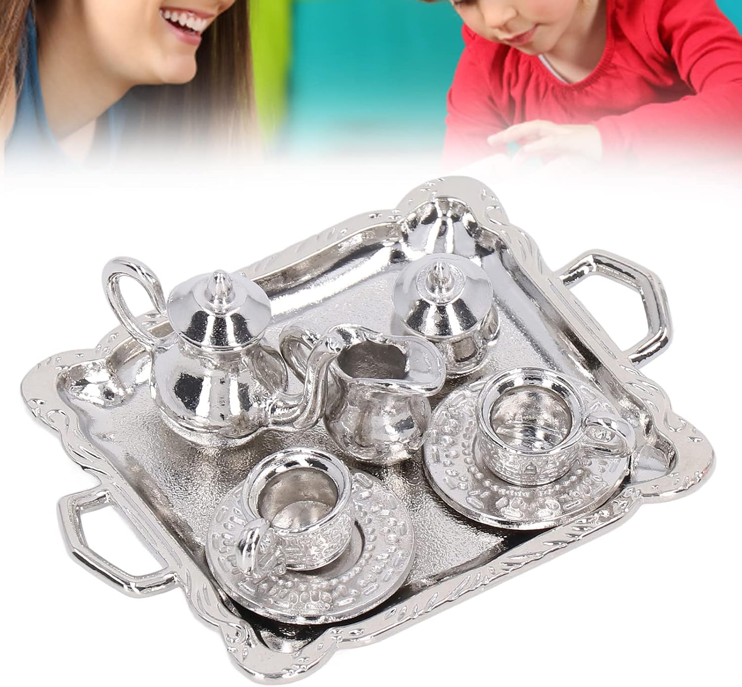 【Uso versatile】 Questo mini kit vassoio da tè è ideale per varie applicazioni tra cui case delle bambole, scatole per stanze e modelli di case. Il mini set da tè in metallo è molto pratico per migliorare l'estetica dei tuoi espositori in miniatura e allestimenti giocosi. 【Dimensioni in miniatura perfette】 Il kit in miniatura Simulation Lifetime offre un'esperienza autentica soprattutto per le simulazioni di case delle bambole Dollhouse 1/12. Il modello di vassoio da tè in miniatura ha le dimensioni giuste per le tue collezioni e aggiunge fascino realistico al tuo spazio di gioco. 【Materiale durevole】 Il mini set da tè è realizzato in metallo di alta qualità per garantire elevata durezza e durata. Ciò significa che non si danneggia facilmente e può resistere al gioco a lungo termine, rendendolo un'aggiunta perfetta alla tua casa delle bambole. 【Design realistico】 Le teiere e le tazze realistiche di questo set sono progettate per contenere una piccola quantità di tè e fornire una funzionalità interattiva che dà vita al mondo di gioco fantasioso di tuo figlio. Il mini set da tè migliora il divertimento creativo e gli scenari di gioco di ruolo. 【Kit di gioco completo】 Questo kit completo include 1 teiera, 2 tazze, 2 piatti, 2 teiere e 2 coperchi per teiera, fornendo tutto il necessario per un gioco fantasioso. Il mini set da tè garantisce un'esperienza completa di tea party per le tue bambole.
