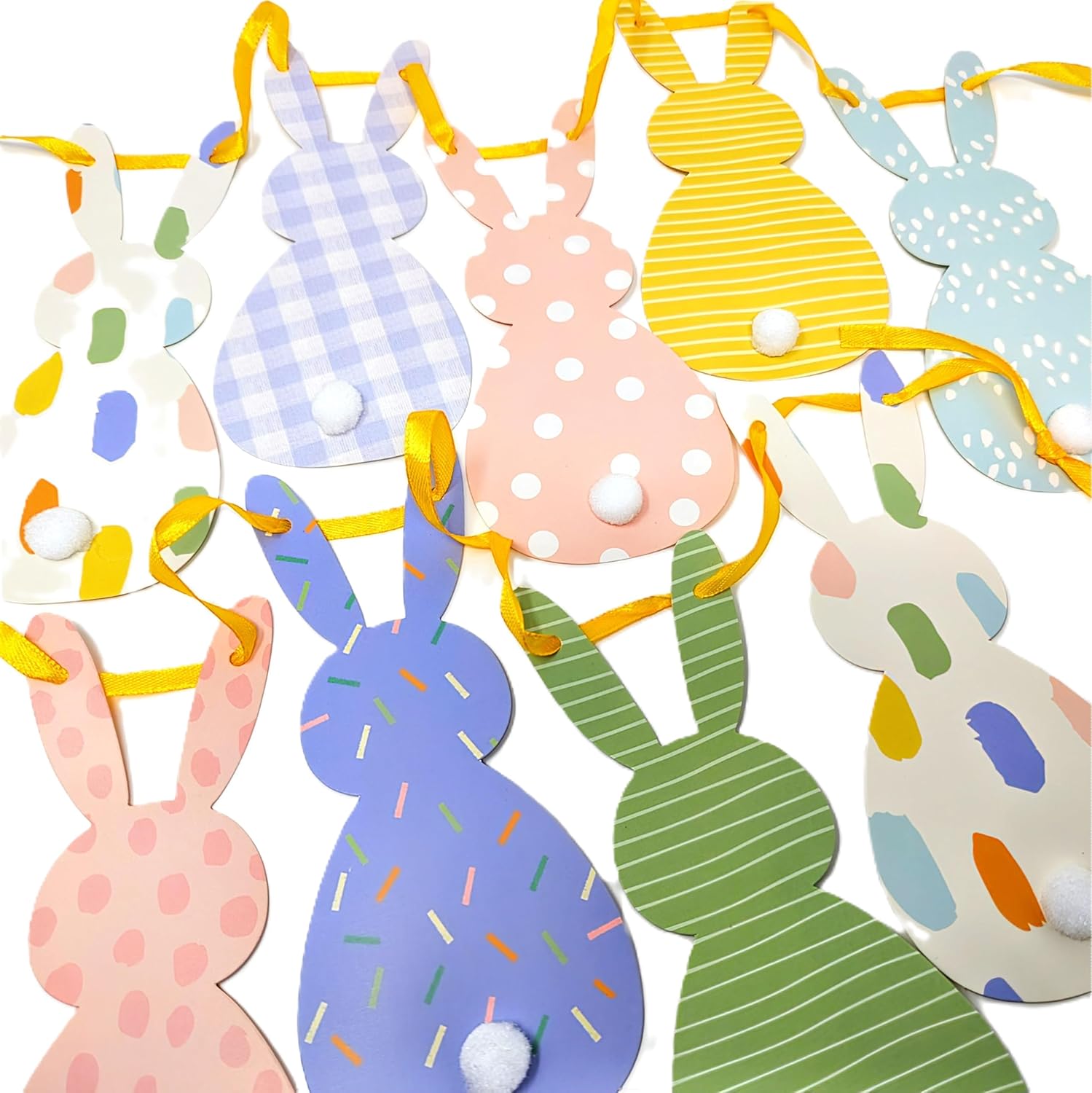 Festone coniglietto pasquale, stampato su cartoncino, comodamente consegnato già infilato, fronte-retro, lungo 2 metri. Presenta graziose bandiere a forma di coniglio che illumineranno immediatamente qualsiasi stanza. Aggiungi un tocco festoso alla tua celebrazione della Pasqua con questo adorabile coniglietto pasquale.