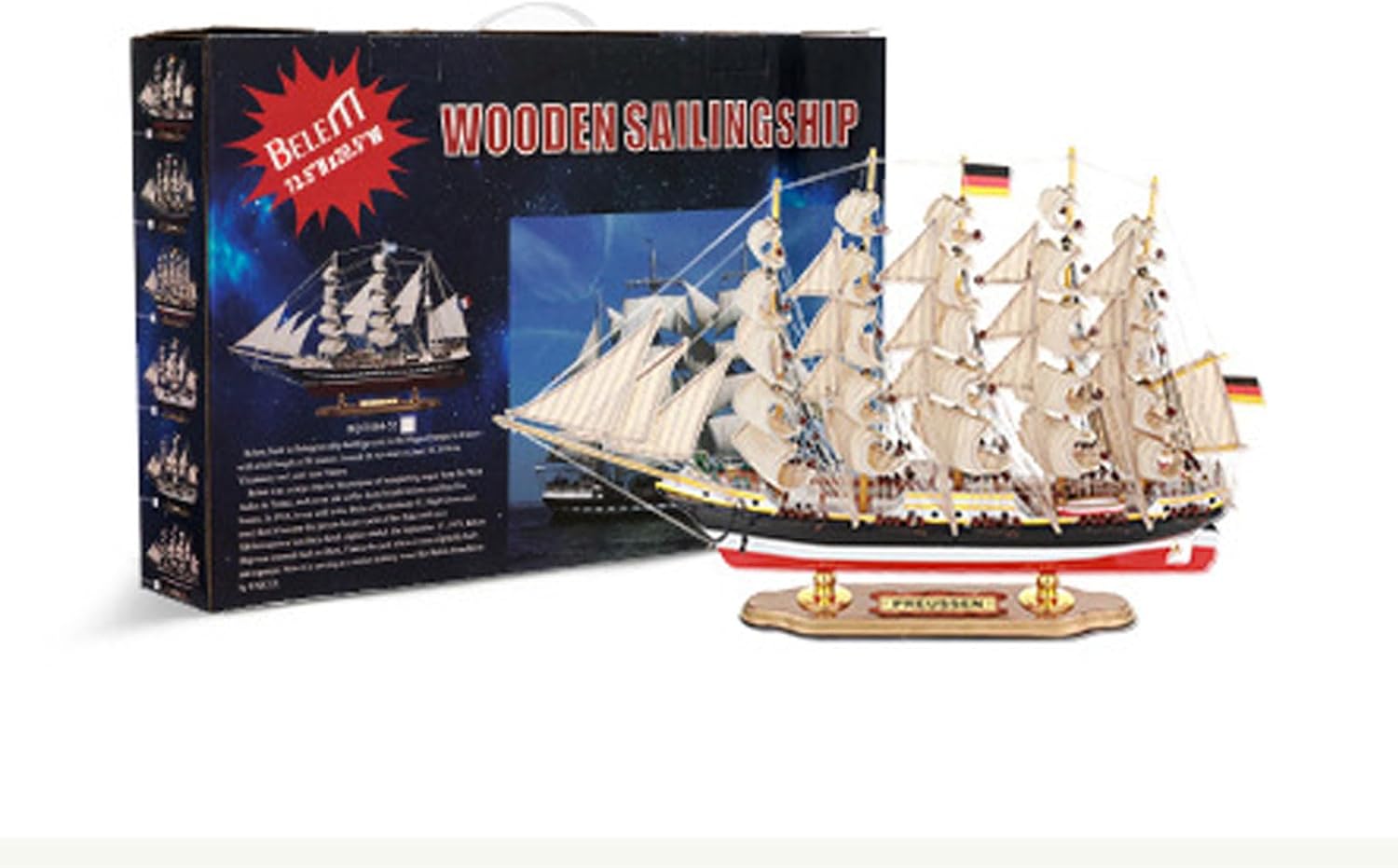 [Iconiche repliche di navi] Questi modelli in legno artigianali rendono omaggio al leggendario russo Kruzenshtern e tedesco Pasate, mostrando dettagli intricati che portano queste storiche navi a vela alla vita. [Squisita maestria artigianale] Realizzati con legno di alta qualità, questi modelli sono caratterizzati da vele, alberi e scafi meticolosamente progettati, che riflettono la maestria artigianale e la durata. [Elegante arredamento] Perfetti per migliorare l'atmosfera di salotti, studi o uffici, questi modelli di navi in stile nordico aggiungono un tocco di storia marittima e raffinatezza al tuo spazio. [Completamente assemblato e pronto per l'esposizione] Questi prodotti finiti non richiedono alcun montaggio, che li rende un'aggiunta senza problemi al tuo arredamento o un regalo pensato per ogni occasione. [Regalo perfetto per gli appassionati di nautica] Che si tratti di compleanni, anniversari o celebrazioni speciali, questi modelli di navi a vela sono un regalo significativo ed elegante per collezionisti, amanti della storia o appassionati di nautica.