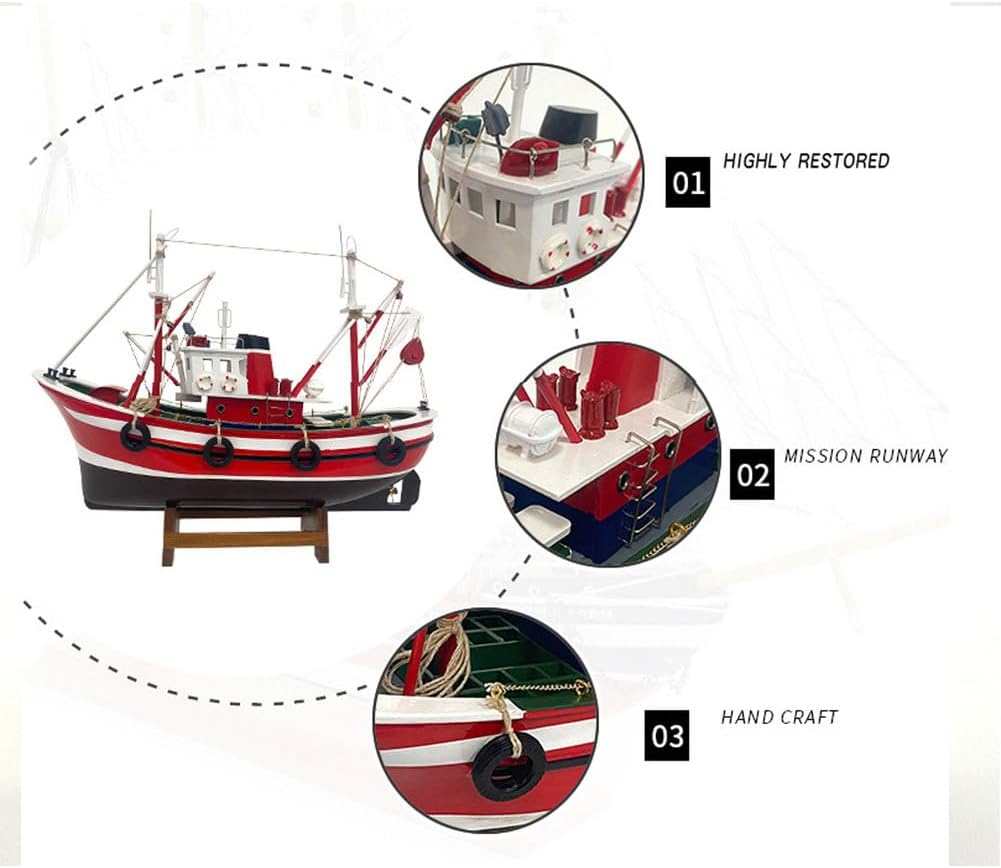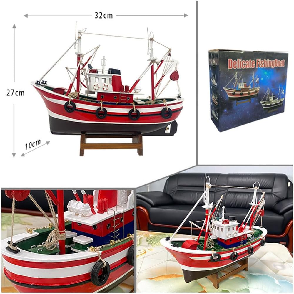 YLME Ornamento di Barca da Pesca Modello Finito di Barca da Pesca Simulata Modello di Barca da Pesca Americana in Legno Fatto A Mano Decorazione per Ufficio Soggiorno Casa Souvenir Regalo,Rosso,B
