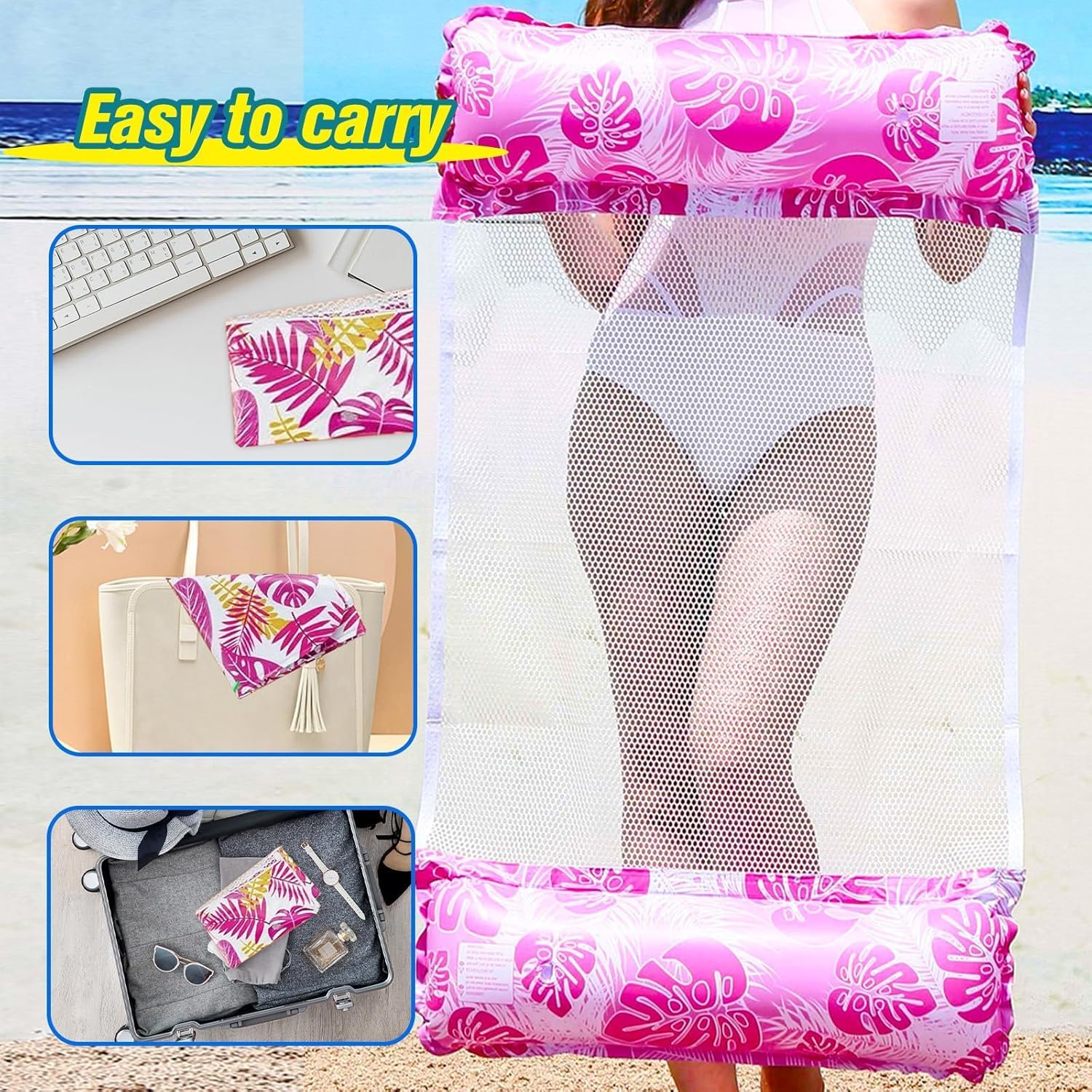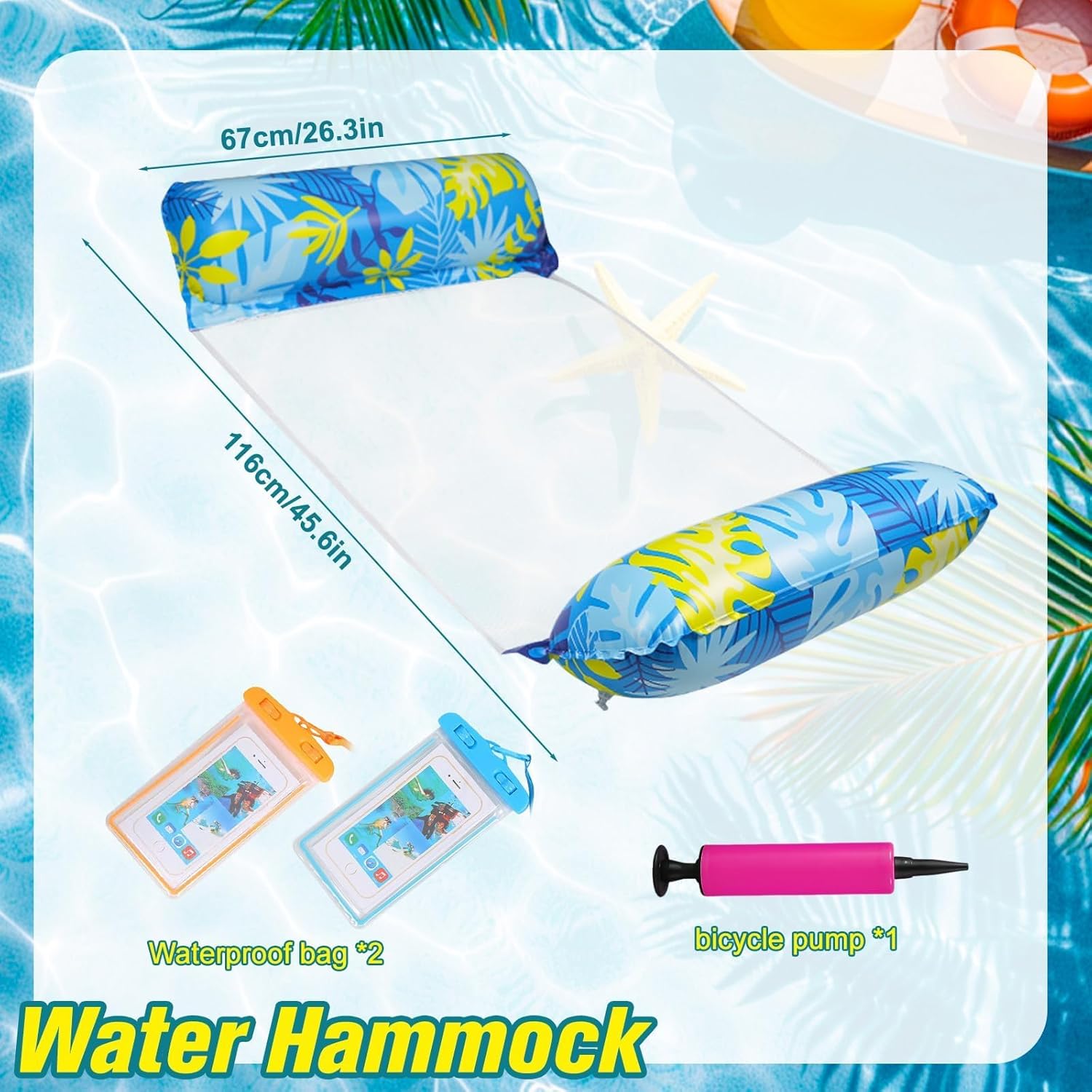 🌤️Galleggiante gonfiabile pieghevole: questa amaca gonfiabile per giochi acquatici contiene 2 cuscini galleggianti, 1 pompa (colore casuale) e 2 borse impermeabili con doppio airbag. Il materassino ergonomico sostiene facilmente la testa, garantendo una confortevole esperienza estiva in acqua 🌊Il materiale è di alta qualità e durevole: materiale in puro PVC addensato, facile da gonfiare, molto galleggiante, sano e non tossico, può essere utilizzato sdraiato o seduto. La rete in poliestere traspirante è realizzata in nylon, che ha una struttura forte, resistenza all'usura e durevolezza e non ha paura di rompersi. 🏝️Lavorazione dettagliata: questo letto galleggiante utilizza un processo di pressatura dei bordi ad alta frequenza, che ha una forte tenuta e non perde facilmente. La porta di gonfiaggio adotta un design a bocca spaziale, che ha una tenuta più forte e può essere nascosta premendo. Anche se viene aperto accidentalmente, non ci saranno perdite d'aria 🏖️Facile da trasportare e da pulire: che si tratti di garza traspirante o galleggianti gonfiabili, non occupano troppo spazio dopo essere piegati e organizzati, quindi sono molto comodi da riporre e trasportare. Grazie al materiale sono anche molto facili da pulire. Dopo la pulizia, posizionalo ad asciugare in un luogo ventilato per il prossimo utilizzo. 🤿Goditi l'estate: questo materasso ad aria gonfiabile è ottimo per uscire con gli amici o la famiglia in estate. È molto pratico per chiacchierare, giocare e rilassarsi in riva all'acqua, ad esempio al mare, in piscina o al lago. Porta frescura e divertimento nella calda estate (i minorenni possono usufruirne solo se accompagnati dai genitori)