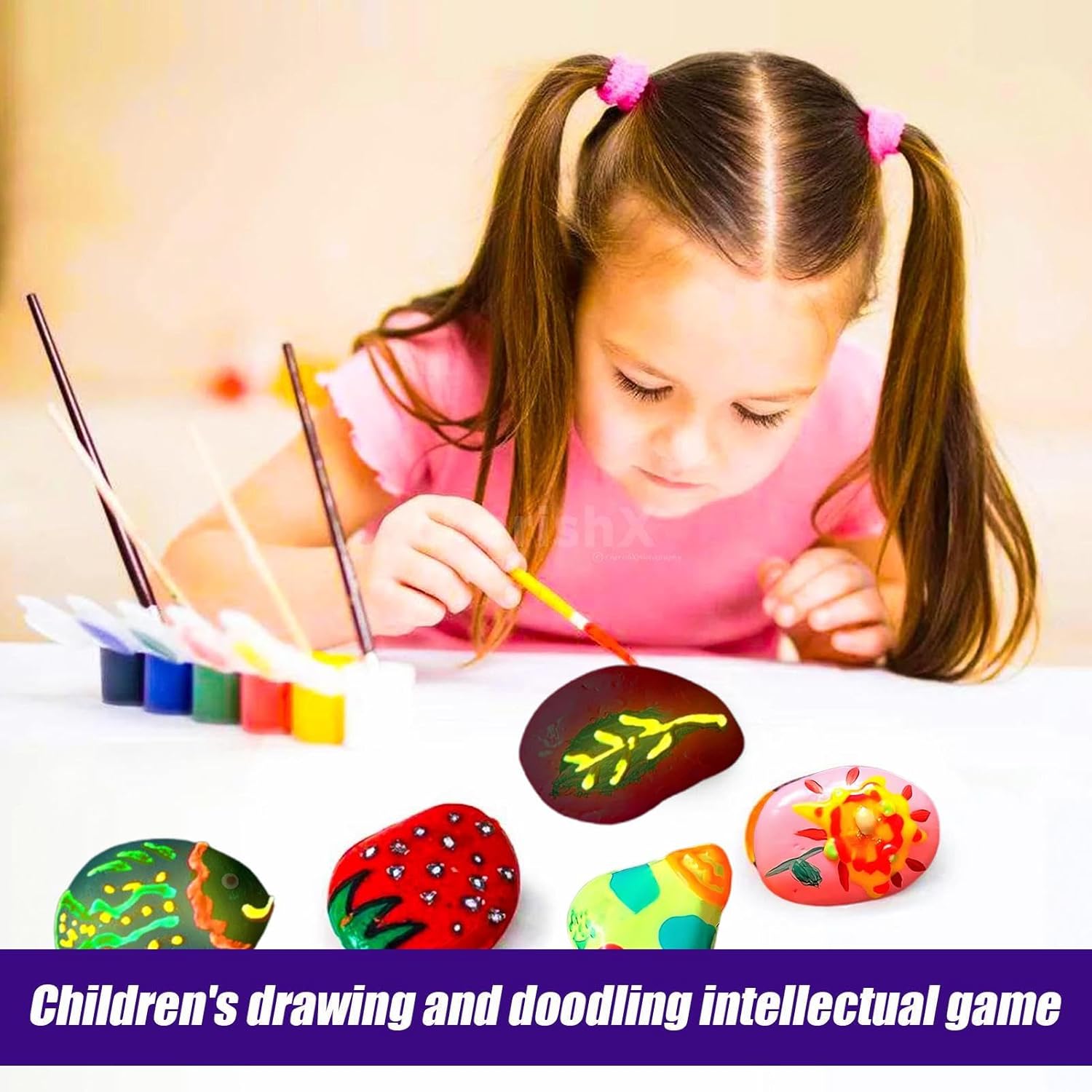 Display Creativo Luminoso: La funzione di luminescenza automatica del kit crea una decorazione notturna unica, migliorando l'atmosfera a stanza. Consente di godere 'arte e pietre luminose in ambienti con poca luce, per un'atmosfera rilassante e stimolante per l'immaginazione. Attività per la famiglia: Il kit per dipingere sassi promuove il familiare attraverso un'attività di co-creazione che include istruzioni passo passo, favorendo la collaborazione tra genitori e figli durante il gioco creativo in casa o all'aria aperta. Esperienza di Lavorazione Confortevole: Pensato per un facile approccio all'arte, questo kit utilizza pietre con texture inclusive e forme naturali che garantiscono una manipolazione semplice per utenti di ogni età. Incoraggia l'esplorazione artistica in contesti rilassati come la realizzazione di decorazioni per la casa. Sviluppo Coordinazione Mano-Cervello: Il kit per dipingere sassi insegna ai bambini a sperimentare con le combinazioni di colori, aiutandoli a sviluppare un occhio per l'estetica e l'armonia. Migliora la loro capacità di visualizzare progetti artistici equilibrati in diversi contesti. Innovazione per Festività: Il kit per pittura su rocce combina longevità luminescente con un design originale che unisce decorazione e funzione, permettendo di creare opere d'arte come decorazioni esponibili; per feste o attività di gruppo con risultati brillanti e visibili di notte