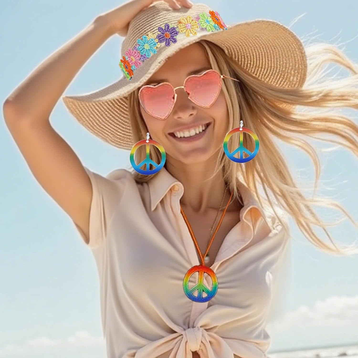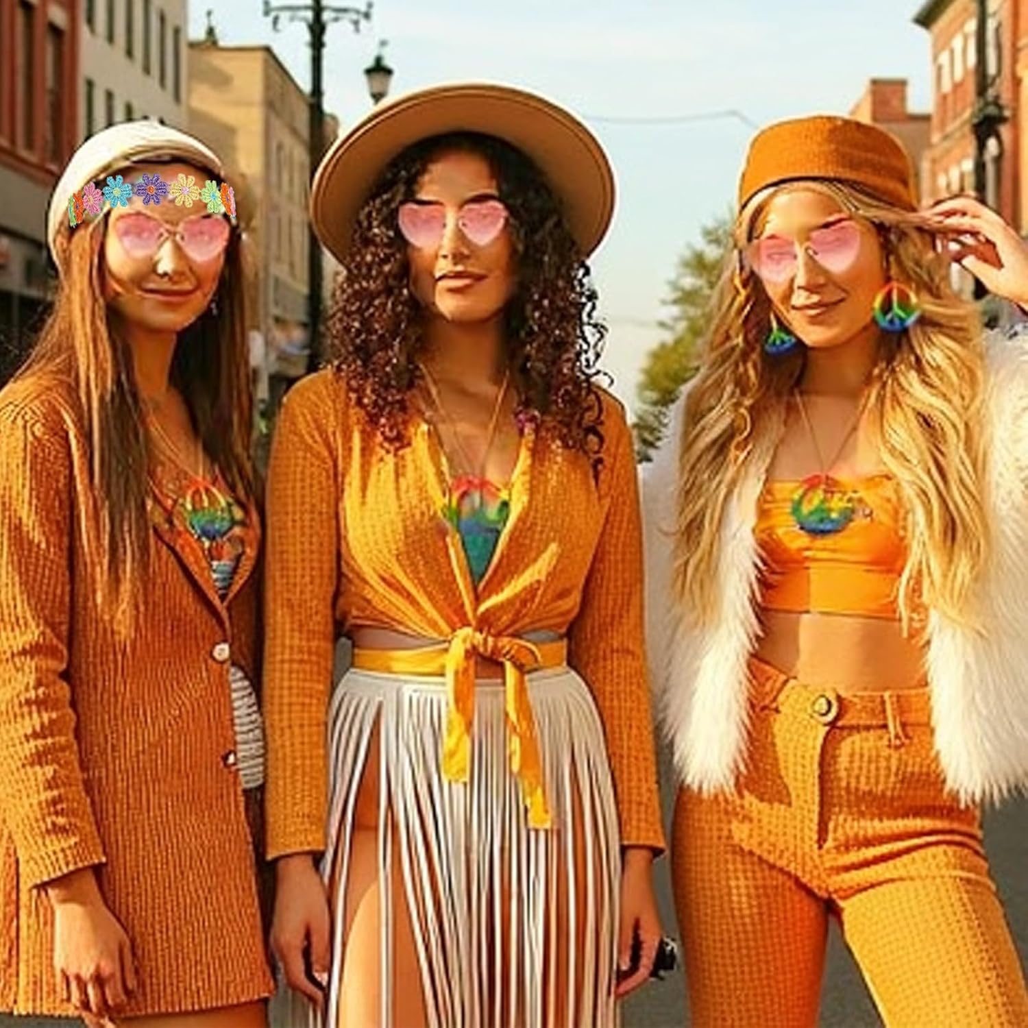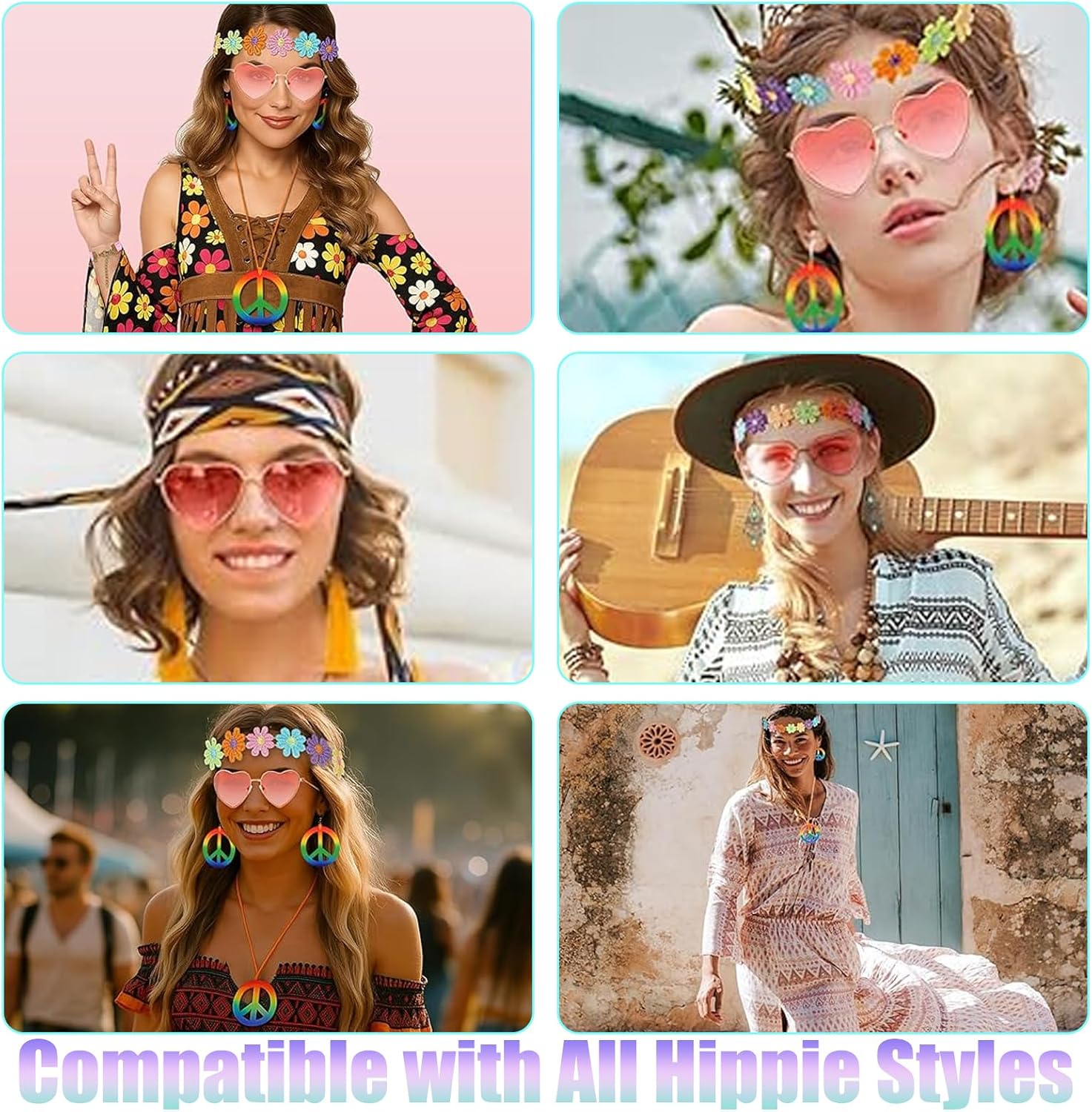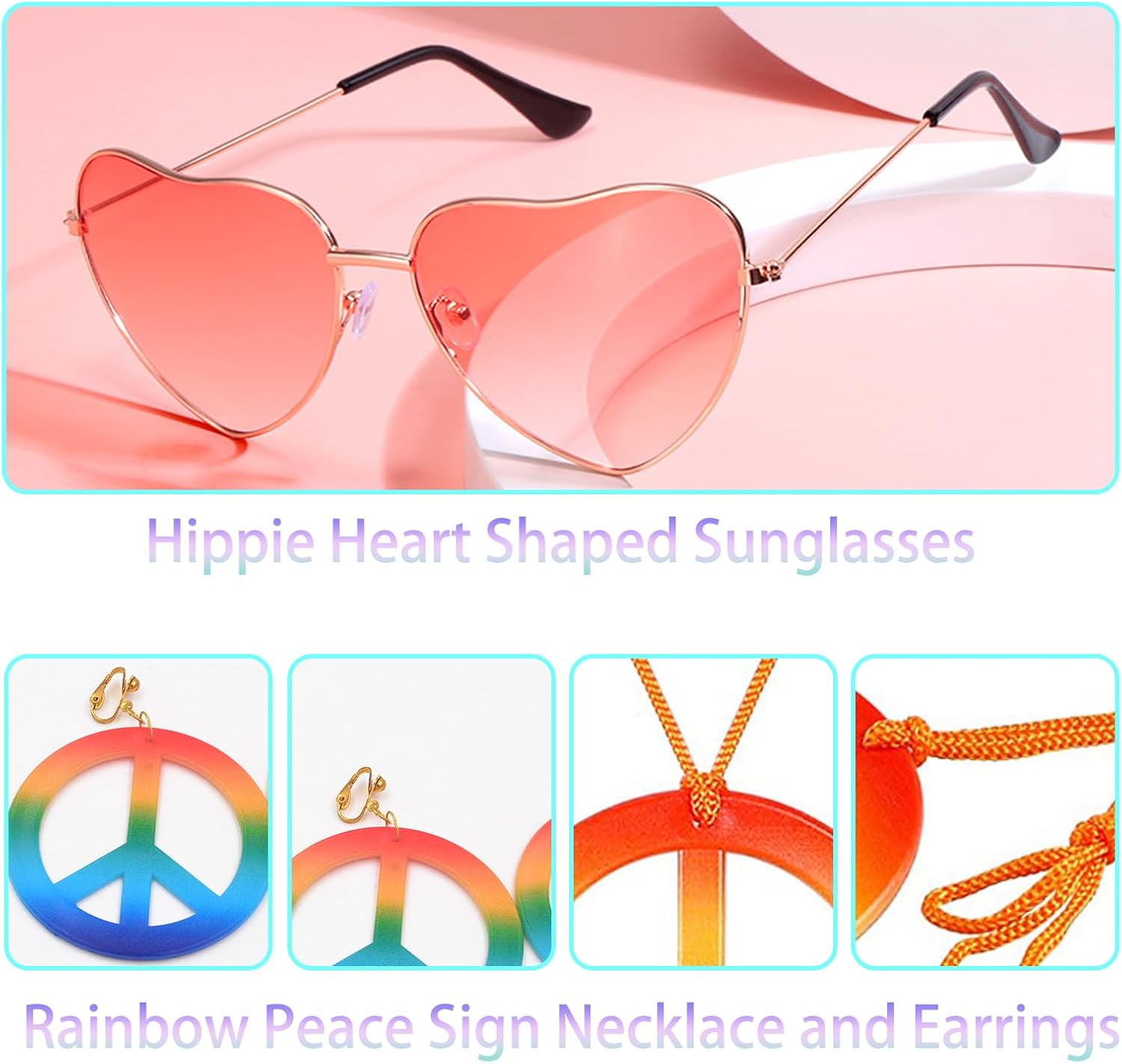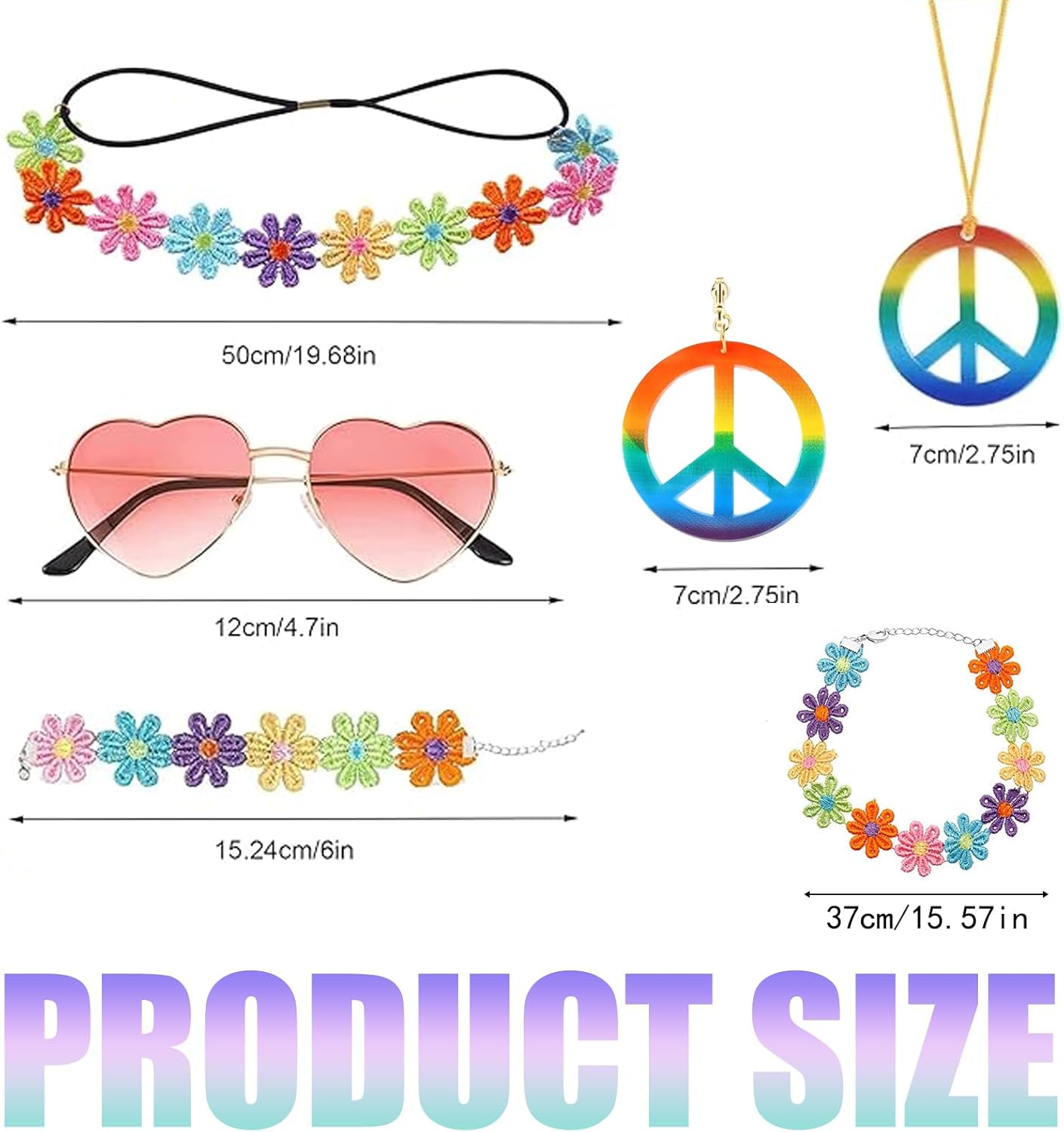 Descrizione prodotto Materiale: poliestere. Dimensioni: 50 x 2,5 x 2,5 cm. Peso: 67 g/set. Contenuto della confezione: 1 fascia per capelli a margherita, 2 braccialetti a margherita, 1 collana a margherita, 1 collana con segno della pace arcobaleno, 1 paio di orecchini e 1 paio di occhiali da sole a forma di cuore Occasioni d'uso: perfetto per festival hippie, Halloween, feste a tema o abbigliamento boho quotidiano. Servizio clienti: Se avete qualche problema con il nostro accessorio hippie costume o non siete soddisfatto del nostro prodotto, non esitate a contattarci e risolveremo attivamente il vostro problema il prima possibile. Grazie per il vostro sostegno e vi auguriamo un felice acquisto. Avviso di sicurezza NO