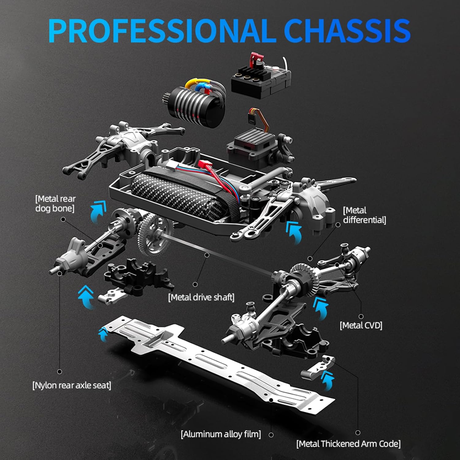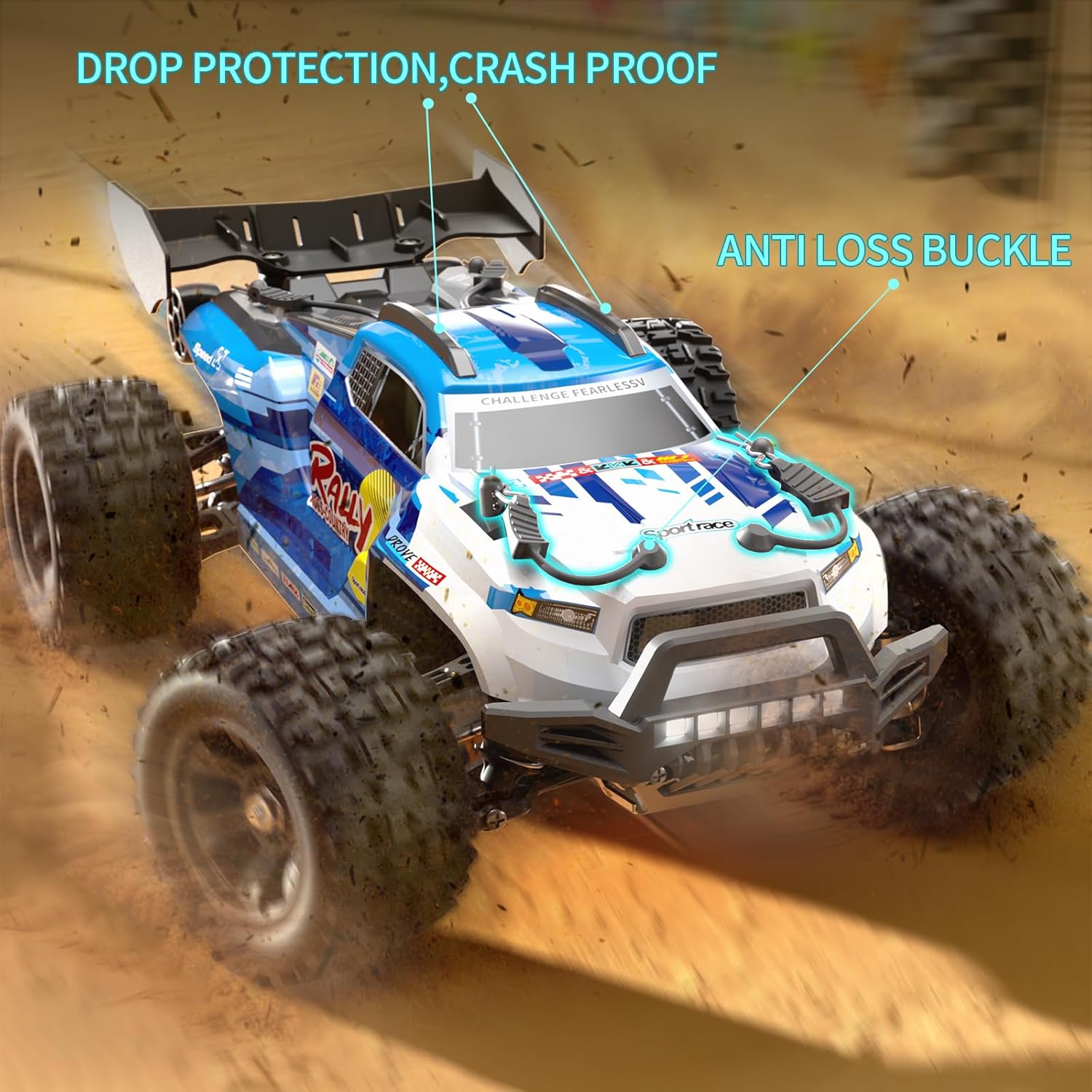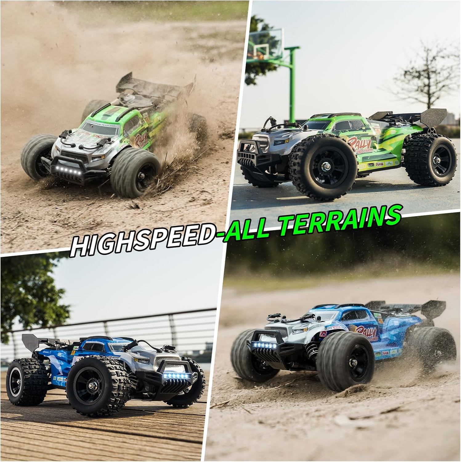 Batteria ad alta velocità e lunga durata: con motore brushless ad alta velocità 2840 3900KV, la velocità può raggiungere i 60 km/h. Dotato di due batterie ad alta capacità da 7,4 V 1500 mAh, può essere utilizzato per un totale di 7045 minuti, il che è migliore rispetto ad altre auto RC. Resistente agli urti e stabile: il telaio è realizzato in plastica ad alta resistenza e le parti fragili sono in metallo per una maggiore resistenza agli urti. Inoltre, nella parte inferiore è utilizzato un grande ponte metallico per rendere più stabile la guida o la pendenza di volo. Due scocche di nuova concezione: la parte superiore della scocca è rinforzata con parti in plastica. Impedisce efficacemente la rottura della scocca quando l'auto si ribalta e colpisce il suolo. I moschettoni utilizzano plastica morbida per collegarsi alla carrozzeria, che è facile da smontare e allo stesso tempo evita la perdita. Sistema radio 2.4G e luce LED: il telecomando 2.4G è progettato con un programma a lunga distanza, e la distanza è di 100 m. Ha diverse velocità che possono essere regolate ed è adatto sia per principianti che per adulti. I fari a LED possono essere accesi e spenti tramite telecomando. Auto telecomandata professionale 1:18: questo camion RC ha un telaio e una carrozzeria dal design all'avanguardia. Dotato di telecomando multifunzionale per tutti i terreni, interni o esterni. Adatto sia per adulti che per bambini.