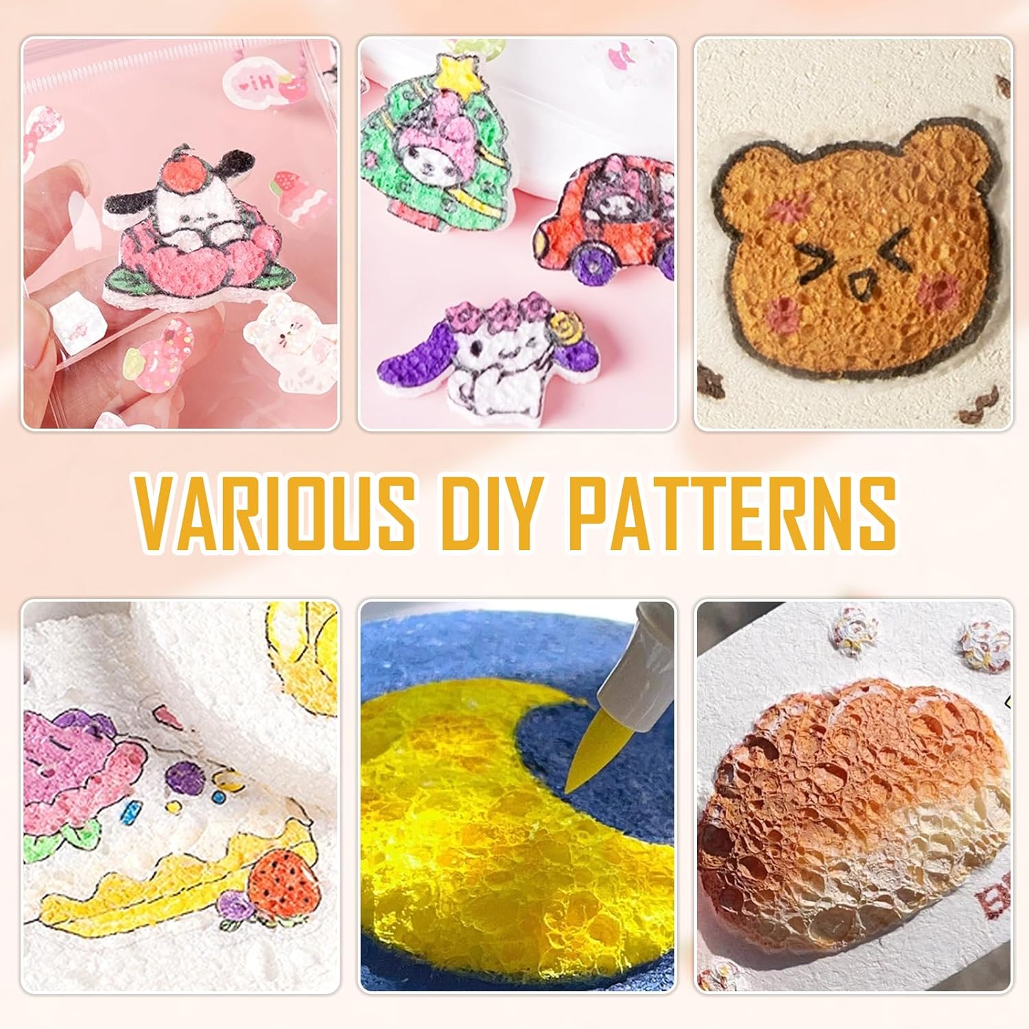 Magico effetto 3D grazie alla texture in gommapiuma: la nostra struttura in gommapiuma si sviluppa come per magia. Disegnate su di esso, fate un po' d'acqua – il design si gonfia e dona alla vostra opera d'arte un fantastico calcio 3D. Perfetto per progetti creativi! Facile da usare, senza attrezzi speciali: non sono necessarie cose complicate. Puoi fare schizzi, colorare o timbrare il tuo disegno su carta, spugnalo con acqua, diventando piatto in sublime. Bambini e adulti faranno fronte velocemente! Set completo per infinita creatività: nel set: 10 fogli di carta in schiuma (è possibile tagliarla in qualsiasi forma), 3 diagrammi a linee adesive prefabbricati (colore casuale), 12 caratteri di colore chiaro, penne per tap (piccole, medie e grandi), catena da 10 perline, mini cavalletto. Lasciate che la vostra creatività esce – per ore di divertimento! Versatile: questo set si adatta a progetti fai da te per bambini, compiti scolastici o adulti. Si adatta a pennarelli, penne e altro ancora. Perfetto per biglietti di auguri, poster, regali – porta incantesimi a qualsiasi idea creativa! Divertimento garantito, ideale come regalo: stai cercando un'attività divertente? Questo set di vernice Puffy lo è! Stimola l'immaginazione, tiene i bambini (e gli adulti!) occupato. Perfetto come idea regalo: regala divertimento creativo!