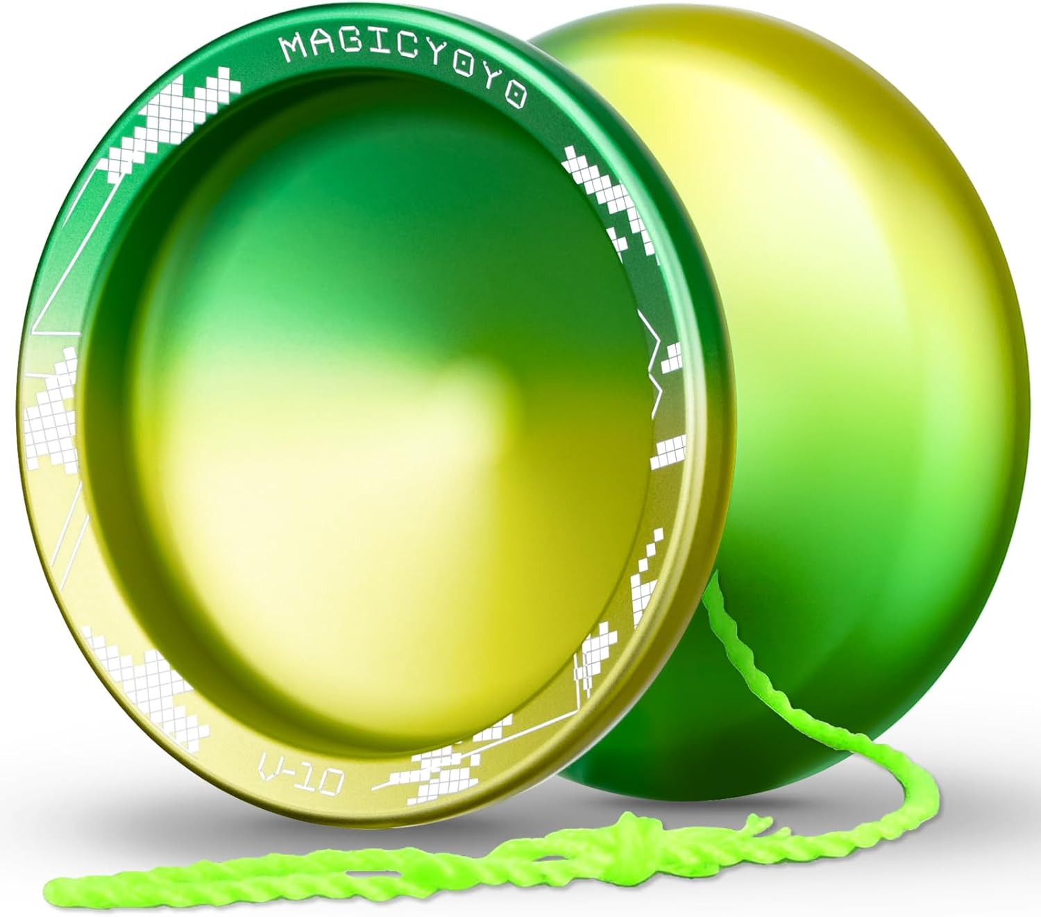 Finger Spin Jojo V10: lo yoyo professionale V10 è progettato per il trucco di spin delle dita. Il trick jojo è progettato con un delicato dimple al centro che consente un trucco senza sforzo. Yo-yo in metallo resistente V10: lo yo-yo a vuoto è realizzato in alluminio di grado aeronautico ed è trattato con anodizzazione che offre una classica struttura metallica, un tocco confortevole e un aspetto squisito. Yoyo V10 non responsivo: se si ottiene uno jo-jo, è un yoyo irresponsive. Come suggerisce il nome, uno Yo-yo non rispondente non tornerà alla tua mano non appena lo lanci. Richiede un trucco chiamato legare in modo che il giocattolo jojo ritorni alla tua mano. Yo-yo con inattività: uno Yo-yo V10 professionista può eseguire abili trucchi Yo-Yo. Lo Yo-Yo è dotato di un ampio cuscinetto, quindi c'è abbastanza tempo di inattività per eseguire il trucco Yo-Yo. Cosa riceverete: regalo ideale per familiari e amici. Con elegante confezione include 1 x yo-yo non reattivo V10 verde, giallo, 12 x corde yo-yo (colore casuale), 1 x custodia per yoyo, 1 x guanto yo-yo. Lo Yo-Yo V10 professionale è un ottimo regalo per compleanni, vacanze, Natale, Capodanno e molto altro ancora. Informazioni su YOSTAR: forniamo prodotti che uniscono una qualità eccezionale con un design innovativo. Ci impegniamo a offrire un'esperienza di acquisto senza interruzioni dal momento in cui navighi nei nostri prodotti fino al giorno in cui arrivano a casa tua. Grazie per aver scelto YOSTAR dove la qualità incontra la cura.
