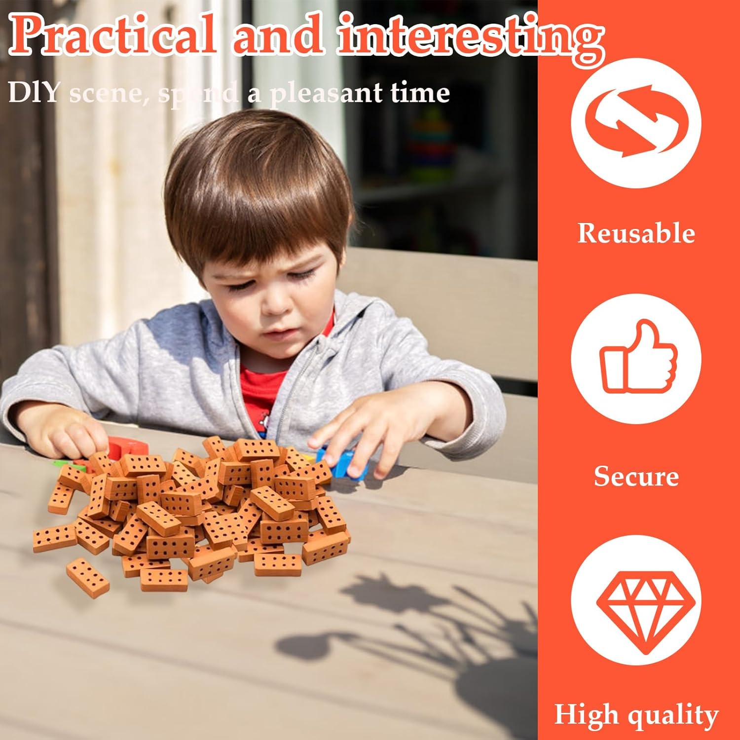 【Alta qualità】Mattoni Questo modello di mattoni in miniatura è realizzato in argilla ceramica ad alta densità cotta ripetutamente ad alta temperatura, che è sicura per bambini e adulti. È resistente alla caduta e all'usura, e i bordi sono lisci e senza sbavature. Non è facile svanire quando si gioca o all'aperto per molto tempo. È la scelta migliore per costruire mini-case. 【Pratico e interessante】I nostri mattoncini costruzioni adottano un design in mattoni standard a 8 fori e la superficie viene copiata con veri motivi in mattoni e texture smerigliata. Il tono rosso retrò opaco ripristina realisticamente il materiale in mattoni rossi, iniettando un realismo immersivo nella scena in miniatura. È molto adatto per coltivare abilità pratiche e stimolare la creatività. Puoi usarli per coltivare la creatività e la pazienza dei bambini e aumentare le relazioni familiari. 【Facile da usare】Il nostro modellismo case mattoni è semplice e facile da applicare. Supporta l'impilamento, l'impilatura e il taglio a qualsiasi angolazione. Può essere fissato con la colla o smontato ripetutamente. Basta immergerlo in acqua, poi rimuovere la colla e rimuoverlo. 【Dimensioni della confezione】 Riceverai 100 mattone, ciascuno con una dimensione di 2×1×0,5 cm. Sono di piccole dimensioni, leggeri e facili da riporre e trasportare. Sono ideali per progetti fai-da-te, progetti scolastici e attività e possono anche essere usati come regalo per gli appassionati del mondo in miniatura. 【Ampiamente usato】Il nostro mattoncini è adatto ai bambini di età superiore agli 8 anni e agli appassionati di modelli adulti per migliorare la comprensione e la concentrazione della struttura geometrica in muratura. È un vettore di alta qualità per l'educazione STEAM, l'interazione genitore-figlio e la decompressione, e il prodotto finito può essere utilizzato come decorazione domestica unica.