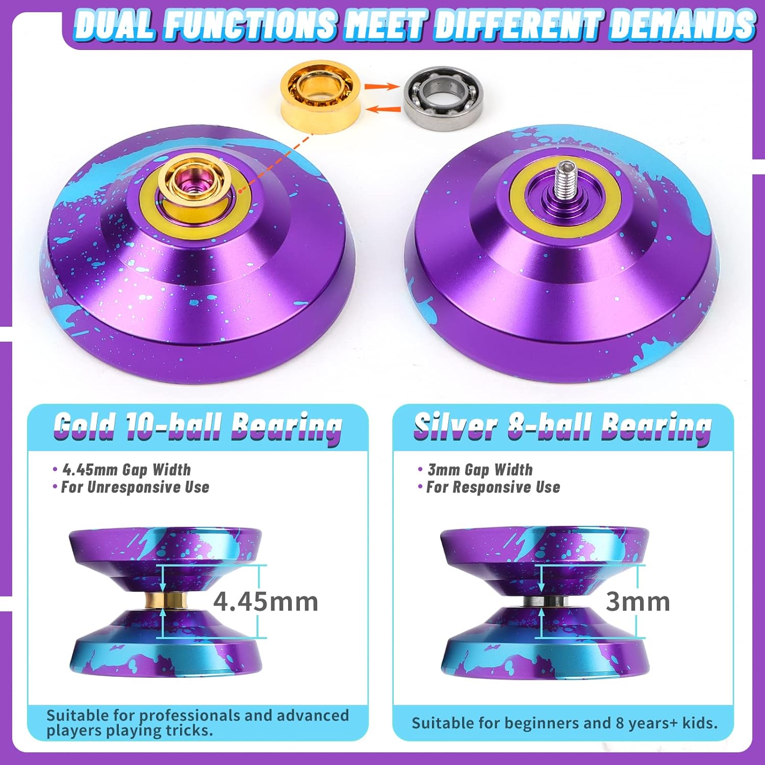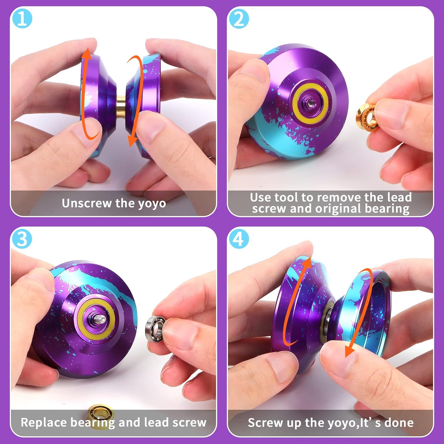 【Adatto ai principianti】 - Il yoyo-Yoyo responsive è perfetto per i principianti, poiché il suo design responsivo consente di praticare facilmente le abilità di base. È adatto sia per i bambini che per gli adulti, e può essere facilmente utilizzato tirando semplicemente la corda. È un ottimo regalo per occasioni speciali come compleanni. 【Di alta qualità 】- Il yoyo magico è realizzato in lega di zinco di alta qualità, con un diametro di 5,6 cm e un'altezza di 4 cm. I suoi bellissimi colori cristallini sono resistenti, atossici e inodore, rendendolo sicuro per i bambini. È anche incredibilmente facile da usare, con una superficie super liscia che non sbiadisce o graffia facilmente, garantendone la durata. Presenta un cuscinetto standard che offre prestazioni fluide e stabili. 【Dual-purpose responsive e unresponsive 】- Il yoyo professionale passa dal cuscinetto unresponsive al cuscinetto responsivo standard, rendendolo perfetto per i giocatori avanzati che vogliono padroneggiare le stringhe. Questa caratteristica dual-purpose consente ai giocatori di passare tra le modalità responsiva e unresponsive, a seconda del loro livello di abilità e preferenze. 【Manutenzione】 - Se il yoyo diventa non responsivo, si consiglia di aggiungere un po' di olio lubrificante o antiruggine al cuscinetto (sia interno che esterno al cuscinetto). 【Contenuto della confezione 】- La confezione include un manuale di istruzioni, tre guanti per le dita, cinque corde di colore casuale, una borsa per il yoyo, un cuscinetto e una vite.