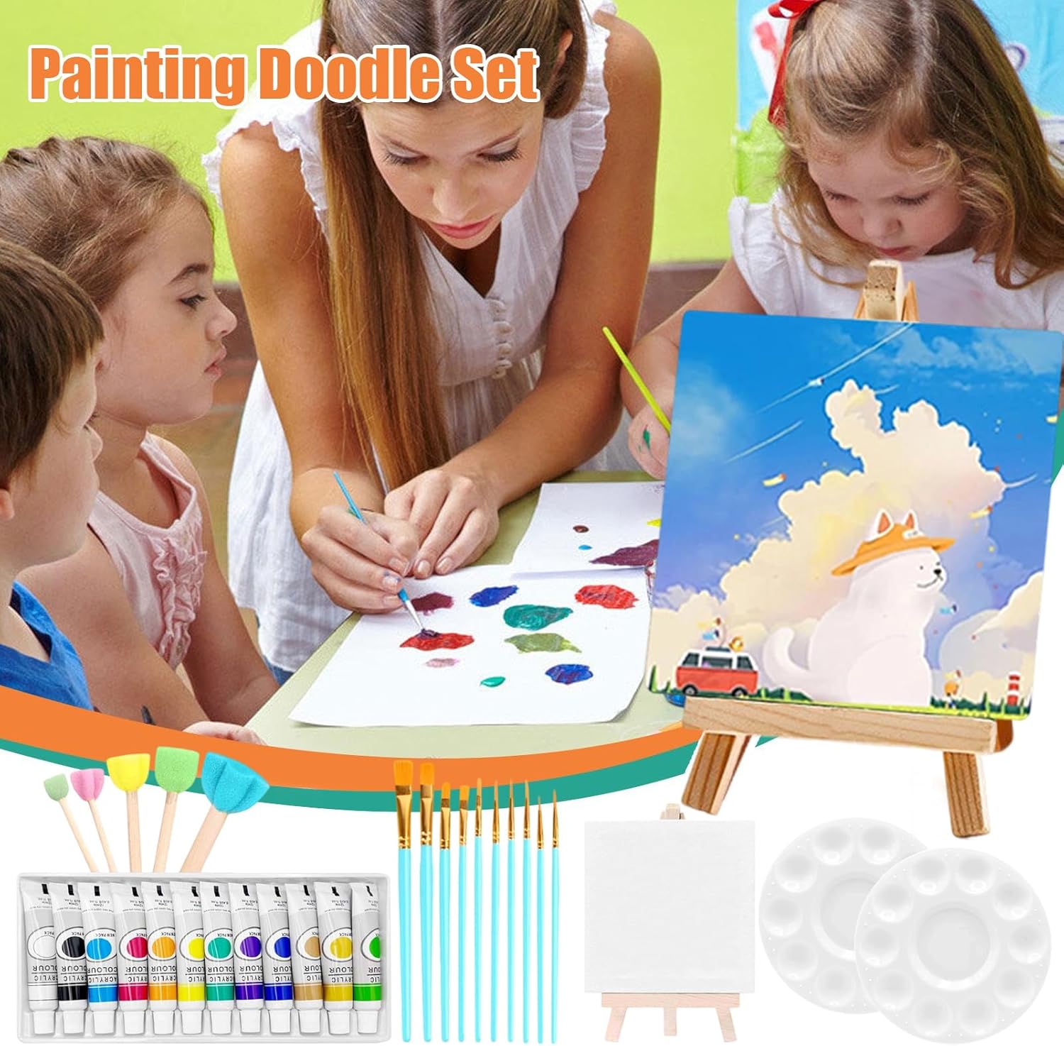 Pittura Sicura e Colorata: Colori vivaci in vernici acriliche lavabili con formula sicura per l'infanzia, permettono pulizia rapida con acqua per esplorazione creativa senza preoccupazioni Apprendimento Creativo: Set pittura su tela che incoraggia creatività ed espressione immaginativa, migliorando le capacità motorie con attività didattiche divertenti adatte a età 3+, favorendo una crescita artistica naturale. Idee Creative: Con questo set e colori scopri infinite possibilità creative per decorazioni murali, attività familiari coinvolgenti e regali originali per menti artistiche di ogni età Set Pronto per il Viaggio: Design compatto e portatile con custodia integrata per tenere gli al sicuro, supportando la creatività in qualsiasi luogo con estrema facilità Pacchetto creativo totale: Include 10 mini e cavalletto in legno per espressione artistica immediata, ideale per esplorare tecniche pittoriche diverse