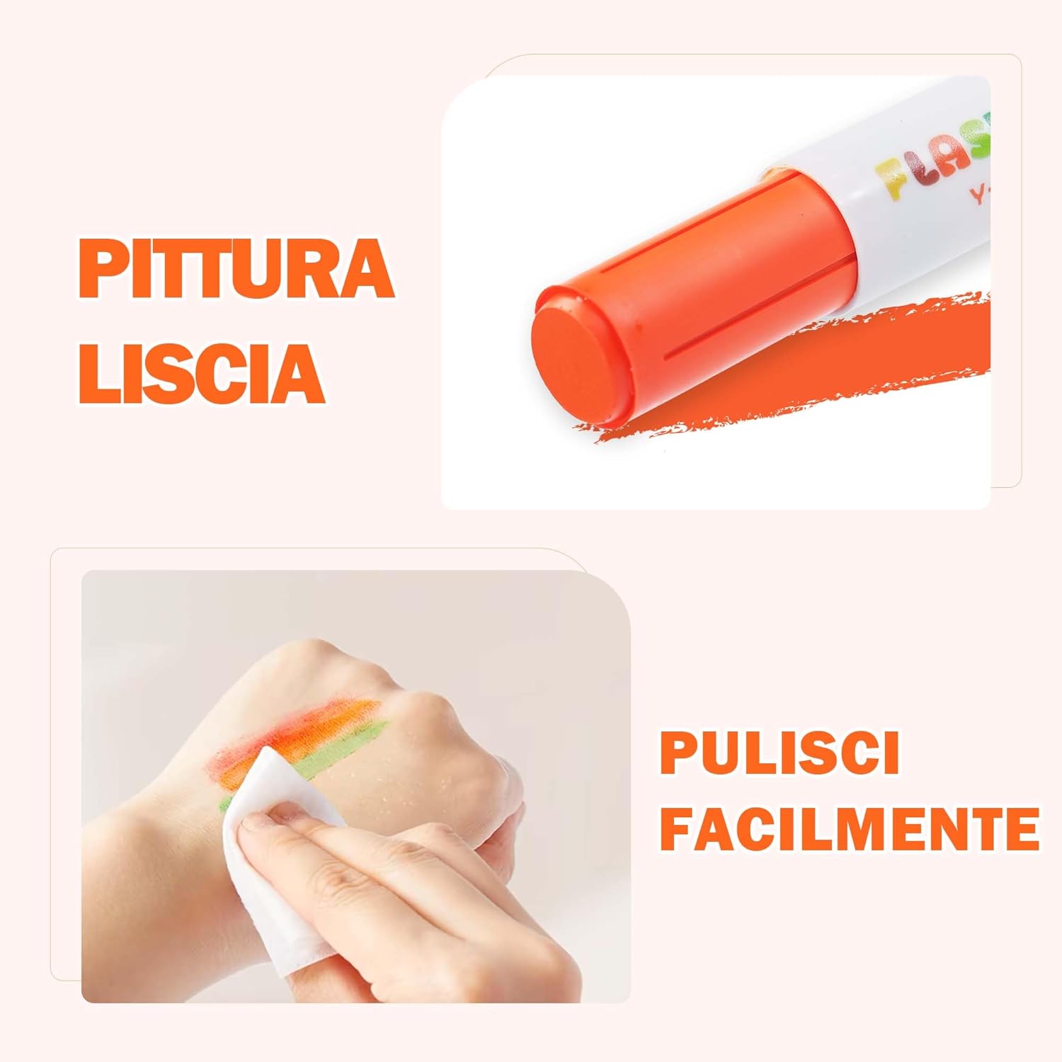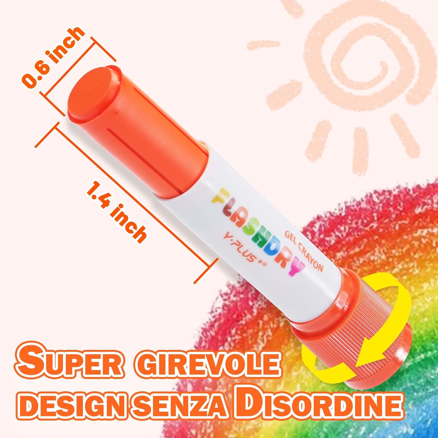 Senza pasticci: I temperelli Yplus utilizzano materiali macromolecolari e possono asciugarsi entro dieci secondi. Progettati con un guscio di plastica, questi strumenti di pittura evitano completamente il problema di sporcarsi. Colori Vibranti: Il kit di colori è disponibile in tre dimensioni: 6/12/24, con una gamma di colori ricca e vibrante. È sicuro e non tossico, consentendo ai bambini di giocare in tutta tranquillità. Design Unico: Il design dei bastoncini a rotazione offre un'esperienza di disegno liscia come la seta, simile a un rossetto, rendendoli più adatti all'uso da parte dei bambini. Multiuso: Le tempere lavabili per bambini possono essere utilizzate su diverse superfici come carta, tela, mobili, pareti, vetro e tessuto, sono super lavabili e facili da pulire, riducendo le preoccupazioni dei genitori. Regalo Perfetto: Questi materiali artistici per bambini sono regali davvero speciali adatti per compleanni, Natale, Pasqua, il ritorno a scuola e altre festività.