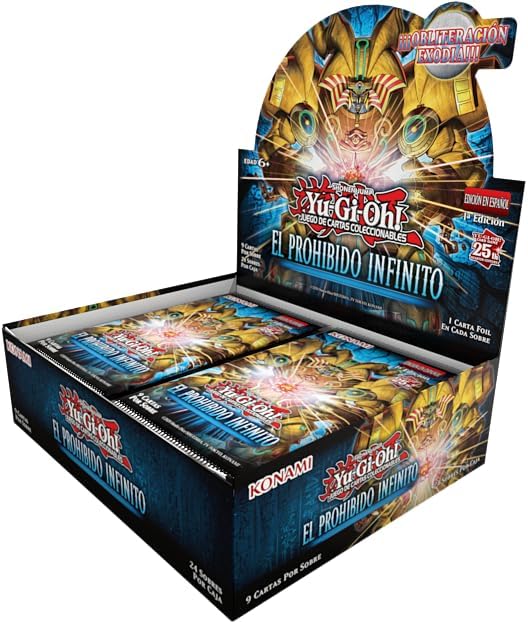 L'Infinito Proibito contiene 100 nuove carte. 10 Rari Segreti 14 Ultra Rare 26 Super Rare 24 di queste carte sono disponibili anche come Rari Segreti del Quarto del Secolo e 1 carta speciale è disponibile SOLO come Raro Segreto del Quarto del Secolo.