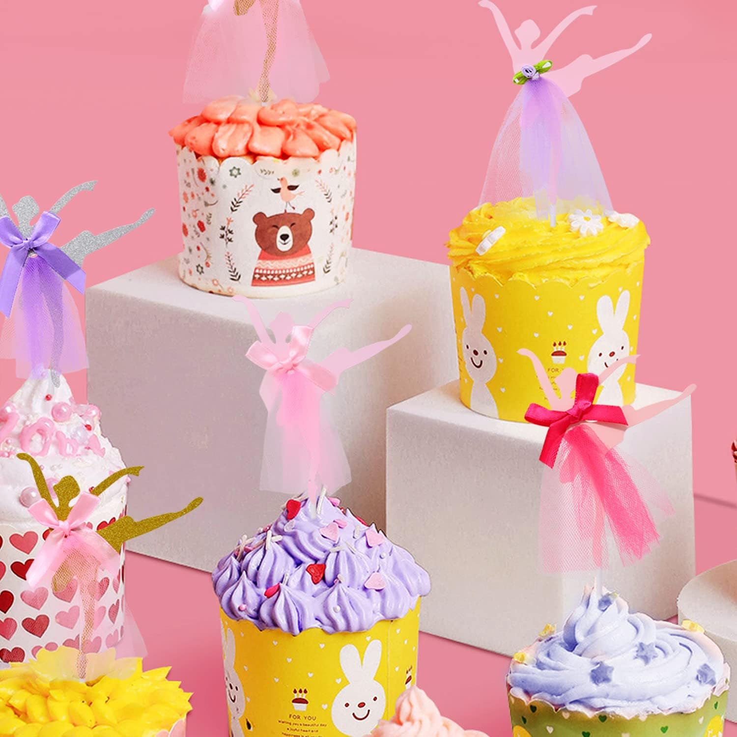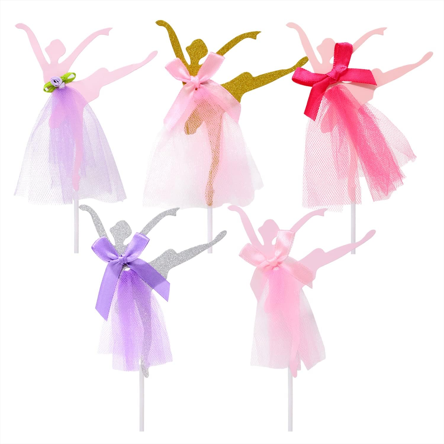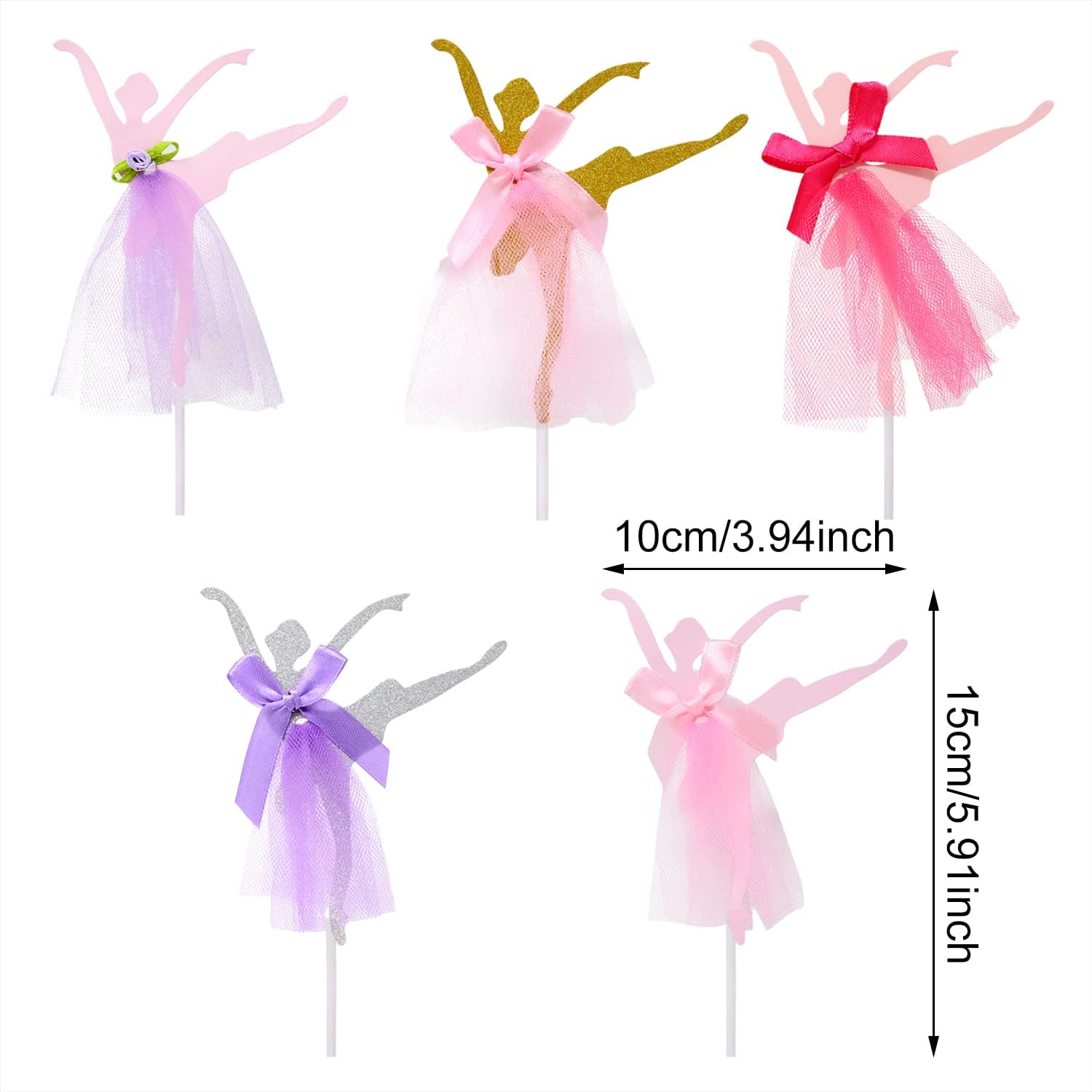 Il pacchetto include: 10 graziose decorazioni per cupcake con ballerine. Crea un'atmosfera dolce e romantica, aggiungi più divertimento al tuo evento. Un modo semplice e molto bello per decorare cupcakes, torte, muffin, dessert; Perfetto per matrimoni, addio al nubilato, anniversari, compleanni, feste a tema ballerina, baby shower, San Valentino, Natale, Ringraziamento, Capodanno, vacanze, celebrazioni e altre occasioni. Materiale: cartone + tulle + plastica; 5 stili: 2 pezzi ciascuno. Dimensioni: 10x15 cm