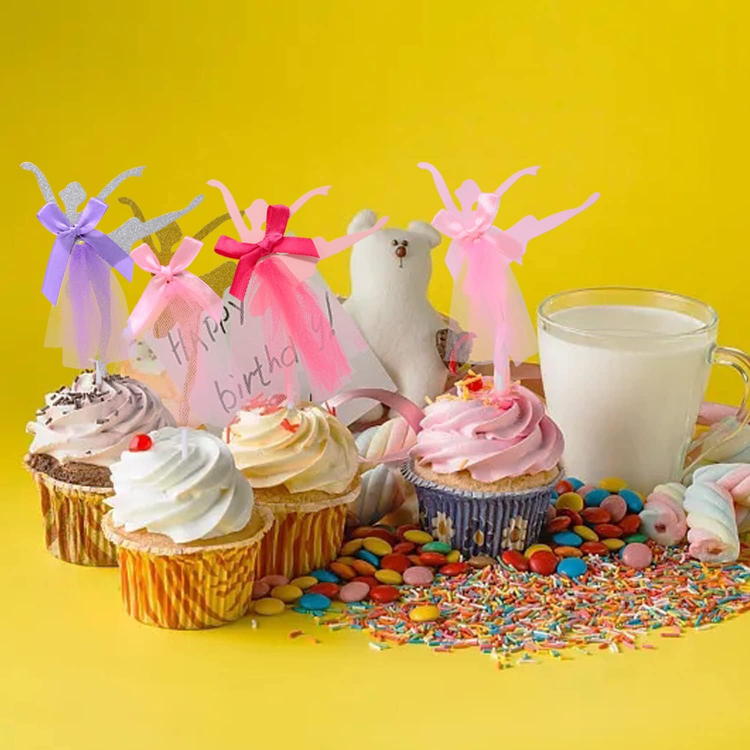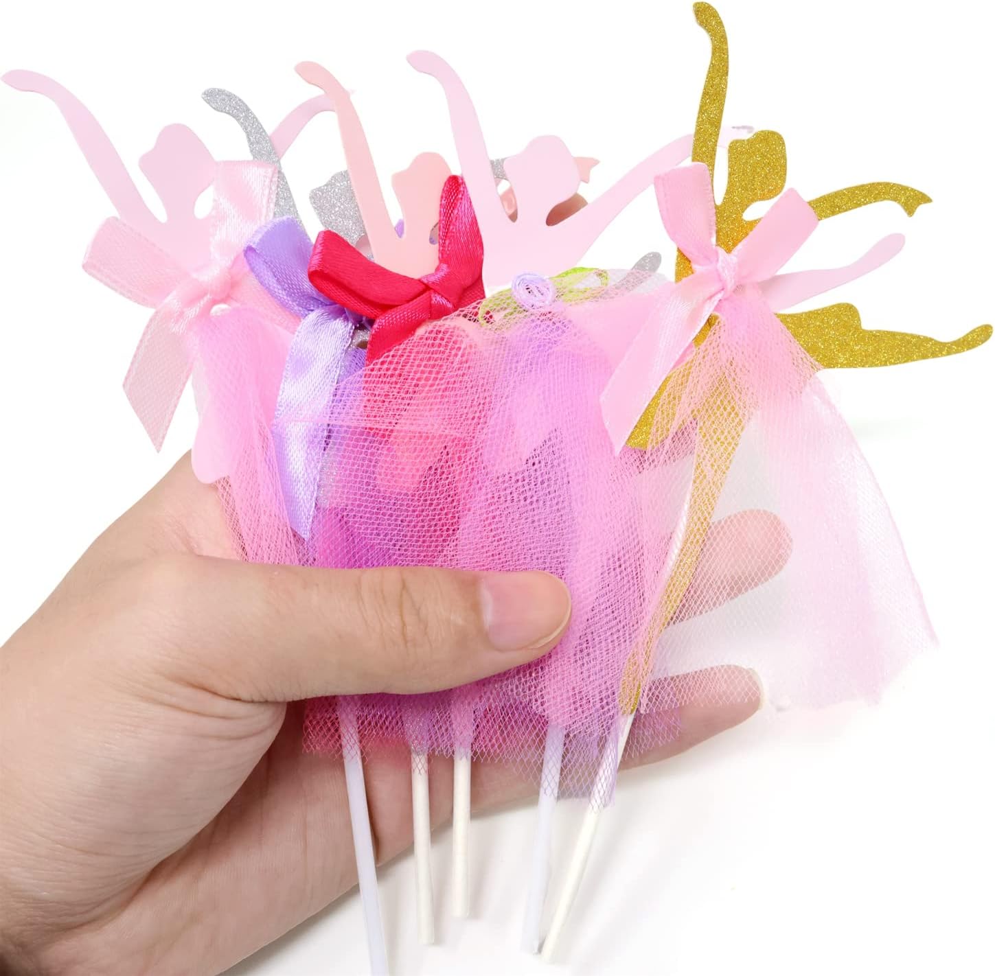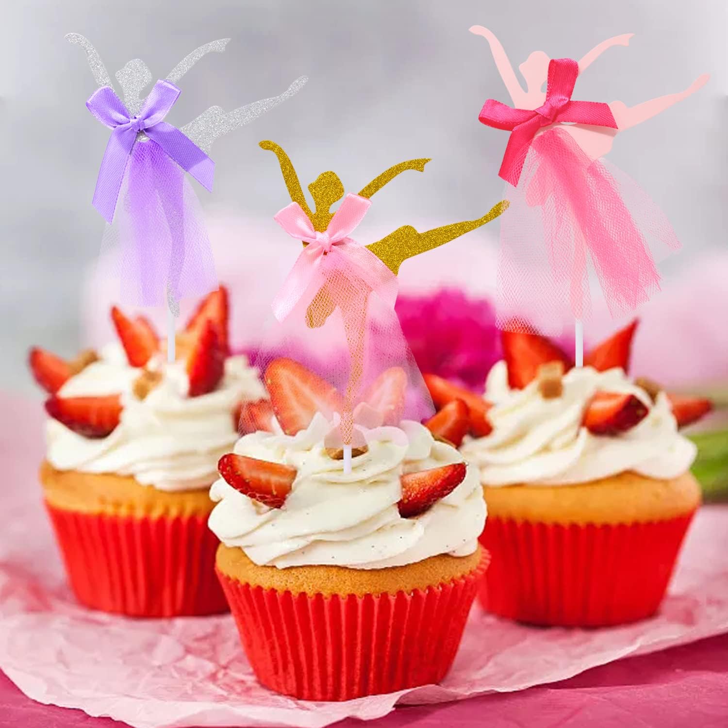 Il pacchetto include: 10 graziose decorazioni per cupcake con ballerine. Crea un'atmosfera dolce e romantica, aggiungi più divertimento al tuo evento. Un modo semplice e molto bello per decorare cupcakes, torte, muffin, dessert; Perfetto per matrimoni, addio al nubilato, anniversari, compleanni, feste a tema ballerina, baby shower, San Valentino, Natale, Ringraziamento, Capodanno, vacanze, celebrazioni e altre occasioni. Materiale: cartone + tulle + plastica; 5 stili: 2 pezzi ciascuno. Dimensioni: 10x15 cm