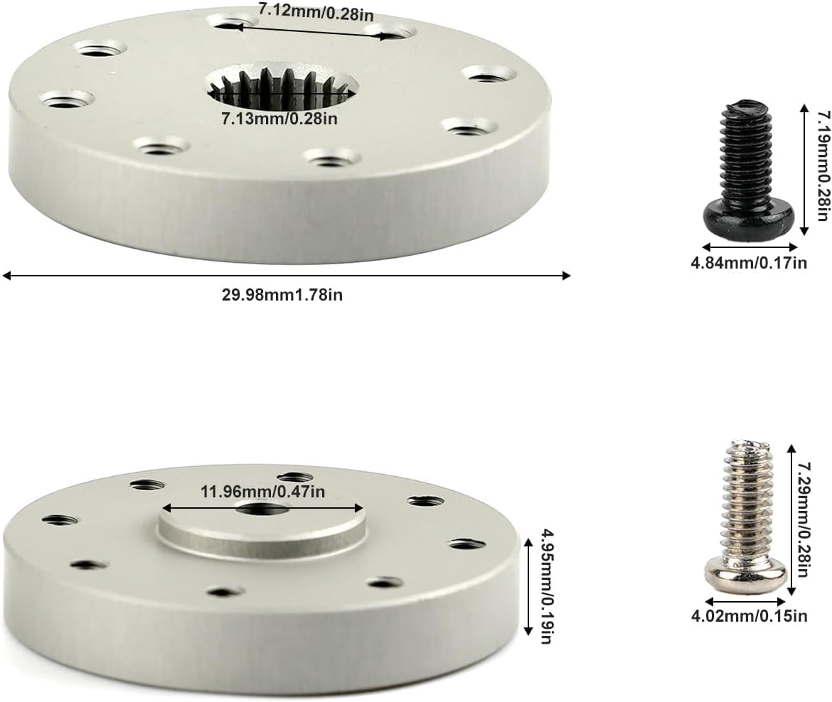 🔩 Compatibili con servo ad alta coppia – Perfetti per MG995, MG996, 60KG, 80KG e 150KG, con attacco standard 18T tipo Futaba. 🛠️ Costruzione in alluminio CNC – Materiale leggero ma super resistente, pensato per garantire rigidità e durabilità nei progetti più esigenti. 🔘 Forma rotonda con fori multipli – Design a disco per una regolazione flessibile dell’angolo e un’installazione stabile e precisa. 🚗 Ideali per modellismo RC e robotica – Utilizzabili su auto, aerei, bracci robotici, barche e meccanismi mobili per controllo di movimento affidabile. 📦 Confezione da 2 pezzi – Riceverai 2 bracci disco in metallo con fori filettati e viti incluse, pronti per l’installazione.