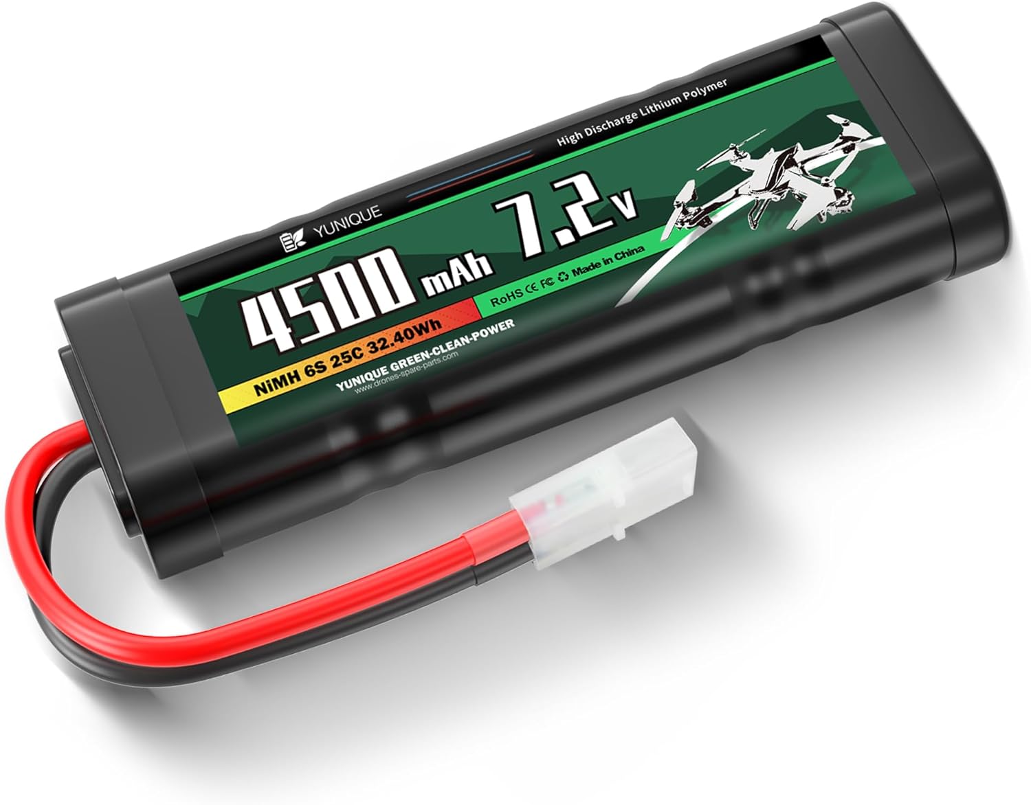 🔋 Alta Capacità da 4500mAh – Grazie alla capacità elevata, questa batteria assicura un'autonomia eccezionale, permettendo sessioni di gioco prolungate senza frequenti ricariche. Ideale per chi desidera potenza e durata per i propri modelli RC! 🔧 Configurazione a 6 Celle per Massime Prestazioni – La configurazione a 6 celle distribuisce l'energia in modo equilibrato, assicurando prestazioni potenti e stabili. Ideale per applicazioni RC ad alte prestazioni che richiedono una batteria robusta e affidabile. 🔌 Attacco Tamiya Standard Universale – Equipaggiata con un attacco Tamiya, questa batteria è perfettamente compatibile con la maggior parte dei modelli RC, garantendo un collegamento sicuro e stabile. Perfetta sia per principianti che per esperti, si collega e scollega facilmente. 🔸 Cavo in Silicone di Alta Qualità – Il cavo in silicone offre maggiore flessibilità e resistenza rispetto ai cavi tradizionali, proteggendo da piegature e usura, e assicurando un contatto sempre sicuro anche durante l’utilizzo intensivo. 📏 Dimensioni Compatte (137x48x25 mm) – Con un design ottimizzato e compatto, questa batteria è perfetta per scomparti batteria di ogni tipo, adattandosi facilmente anche in spazi ridotti senza compromettere le prestazioni. ♻️ Tecnologia NiMH Ecologica e Senza Effetto Memoria – La tecnologia NiMH riduce l'impatto ambientale e consente di ricaricare la batteria in qualsiasi momento senza perdere capacità. Mantiene prestazioni ottimali anche dopo numerosi cicli di ricarica, offrendo una soluzione sostenibile e duratura. 🚗 Perfetta per Modelli Radiocomandati di Ogni Tipo – Ideale per chiunque voglia potenziare auto, camion, barche o altri modelli RC. Che tu sia un appassionato di modellismo o un principiante, questa batteria offre la potenza e l'affidabilità di cui hai bisogno.