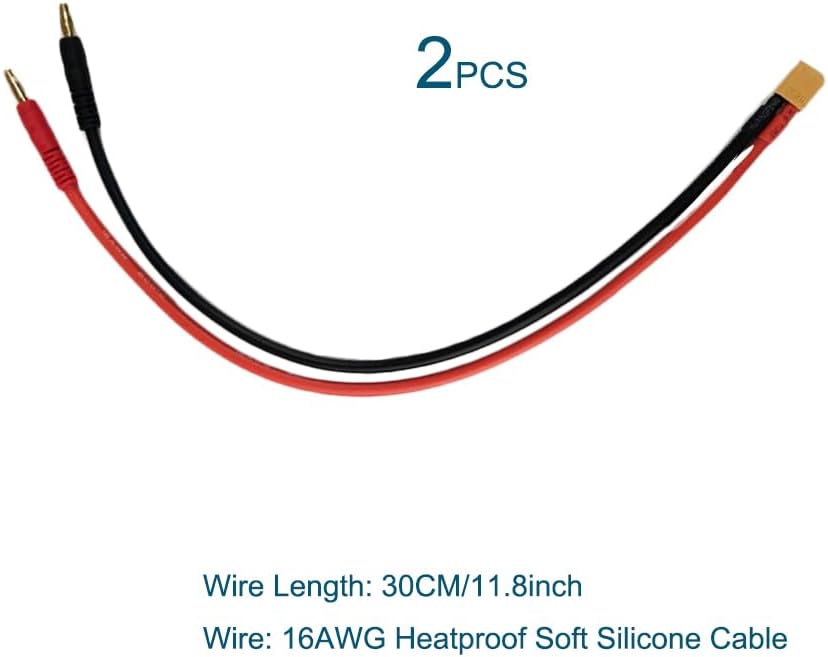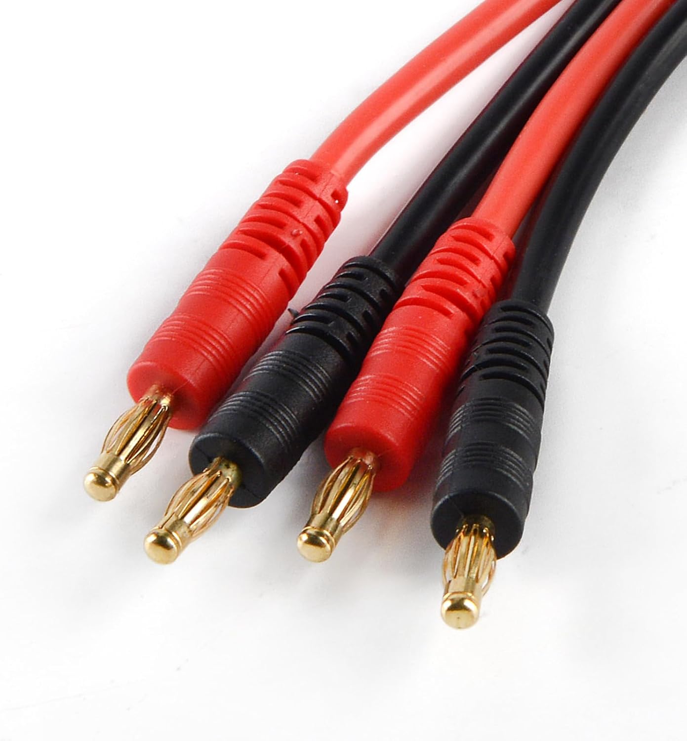 Si collega direttamente alle batterie con connettori XT30 e al caricabatterie con connettori a banana da 4 mm.