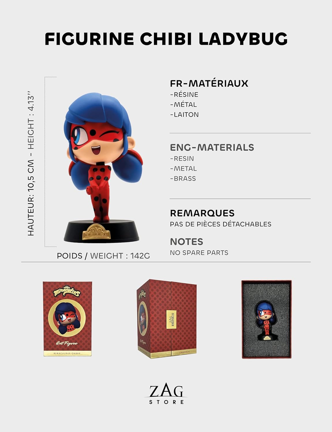 Prodotto ufficiale Miraculous from Zag Store Materiale: resina, metallo e ottone Altezza: circa 12 cm Chibi Ladybug Art Figura Altri personaggi disponibili