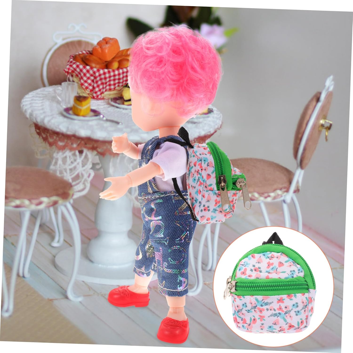 Zaino per bambole minuscolo: questo zaino per bambole carino e piccolo ha una cerniera ed è comodo da usare, Zaino per bambole in miniatura Zaino piccolo per bambole - piccolo e portatile, comodo da trasportare e facile da posizionare o esporre, Mini zaini per bambole Mini zaino per bambole: usa questo mini zaino insieme a scarpe, vestiti e altri accessori per decorare la bambola, ornamento per bambola zaino Piccolo zaino per bambole - usato come fantastico accessorio per la decorazione di bambole Bjd e collezionisti di case delle bambole, zaino formato bambola Mini zaino carino: fa sembrare la tua bambola piena di vitalità. Il mini zaino offre anche alcuni accessori per la bambola. mini zaino