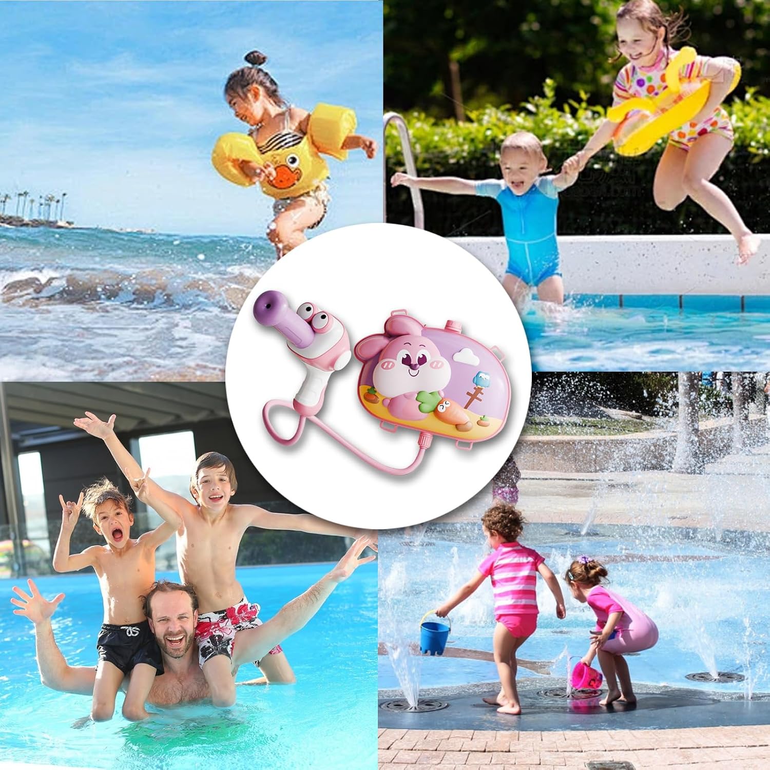 Lavoro di squadra e raffinatore di strategia: Promuovere il potenziale di emozionante combattimenti d'acqua a lungo raggio di un giocattolo di spruzzatore progettato unico, promuovendo il lavoro di squadra e il pensiero strategico amplificando il divertimento del gioco. Più divertimento in acqua: con il nostro giclée in acqua per loro, possono godere di più divertimento all'acqua senza interruzioni. Design spazioso del serbatoio da 2000 ml, non c'è bisogno di frequenti ricariche d'acqua, offrendo un'avventura al parco. Anello in gomma a prova di perdite: il nostro giclée d'acqua ha un sigillo sicuro, grazie al suo anello in gomma a prova di perdite. concentrato sul gioco senza preoccupazioni di perdite, mantenendo il divertimento di andare anche durante un intenso esercizio. Meraviglia infantile: lascia che il giclée in acqua carino e colorato attiri l'attenzione del tuo bambino con la sua forma di cartone animato, che li rende più inclini a unirsi a noi e divertirsi con attività all'aperto. Comfort migliorato: progettato con cinghie regolabili per garantire una vestibilità calda, questo spruzzatore d'acqua si adatta a diverse altezze di età, minimizzando il frullato durante il gioco attivo.