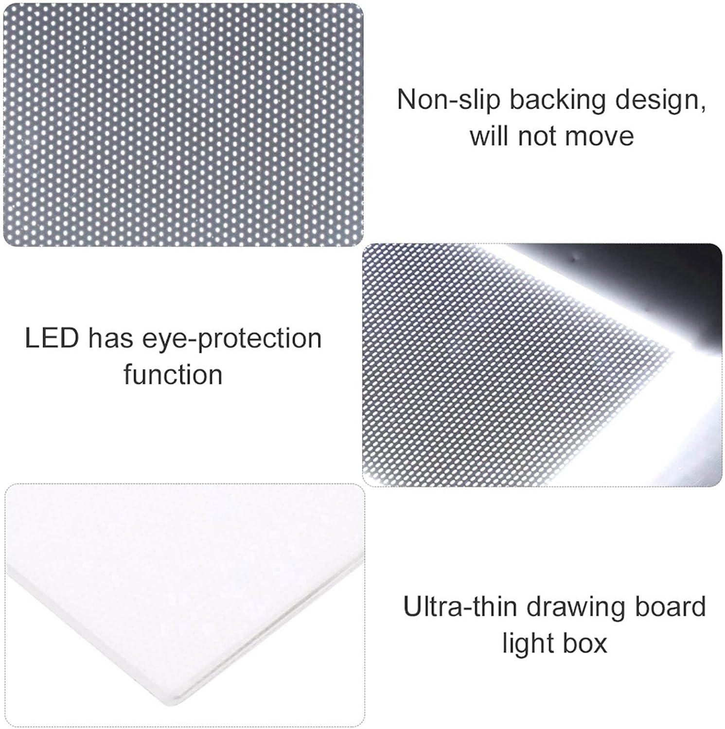Lightweight e portatile: questa scatola luminosa di tracciamento ultra-sottile è progettata per un facile trasporto, consentendo agli artisti di creare ovunque. Le sue dimensioni compatte e il design leggero lo rendono un bel compagno per la creatività in movimento. Applicazioni versatili: ideale per calligrafia, pittura e animazione, questa scatola luminosa ospita vari materiali come carta e tessuto. È bello sia per i professionisti che per i bambini che imparano a esprimere i loro talenti artistici. Luminosità regolabile: con un'illuminazione a LED a favore degli occhi, questa scatola luminosa ti consente di personalizzare i livelli di luminosità. Goditi un'esperienza lavorativa confortevole proteggendo la vista durante le lunghe sessioni creative. Stabile e non slip: il supporto non slip assicura che la scatola luminosa rimanga saldamente in atto mentre lavori. Questa stabilità migliora la tua esperienza di disegno, consentendo precisione e concentrazione senza interruzioni. Design facile da usare: con il suo semplice funzionamento e il display luminoso, questa scatola di luce di tracciamento è accessibile per tutti i livelli di abilità. Che tu sia un principiante o un artista esperto, lo troverai facile da usare ed efficace per i tuoi progetti.
