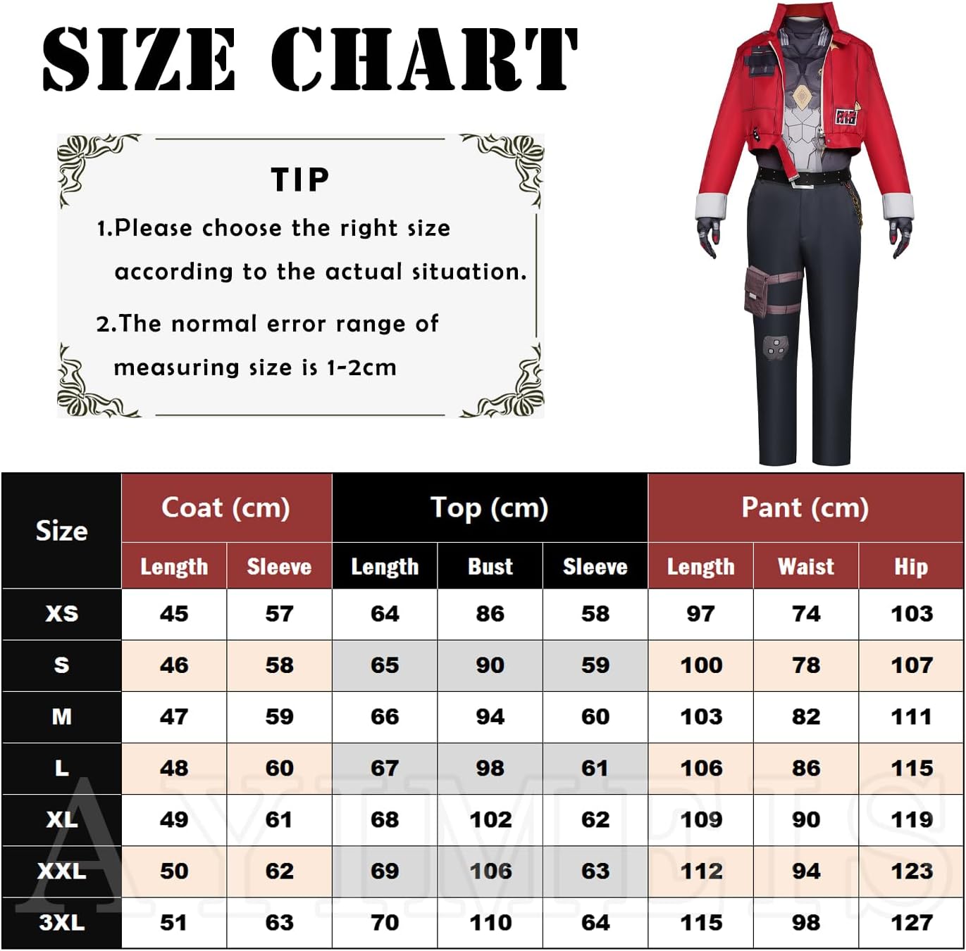 【Il pacchetto include】 - Maschera *1, Giacca *1, Top *1, Pantaloni *1, Cintura *1, Borsa per le gambe *1 (come mostra l'immagine). 【Materiale principale】 - Poliestere. Realizzato in materiale di alta qualità, morbido, comodo da indossare e abbastanza resistente. 【Caratteristiche dell'abbigliamento】 - Costume cosplay Zenless Zone Zero Billy the Kid, ripristina i dettagli dell'abbigliamento del personaggio, con un set completo di accessori, ti consente di completare facilmente il gioco di ruolo. 【Ampia applicazione】 - Perfetto per feste in costume a tema, festival, Natale, Halloween, carnevali, feste, performance sul palco, fotografia, Comic Con, Cosplay, Sport ecc. 【Riferimento taglia】 - Per assicurarti di ottenere una taglia adatta a te, fare riferimento alla nostra tabella delle taglie prima dell'acquisto (ultima foto).