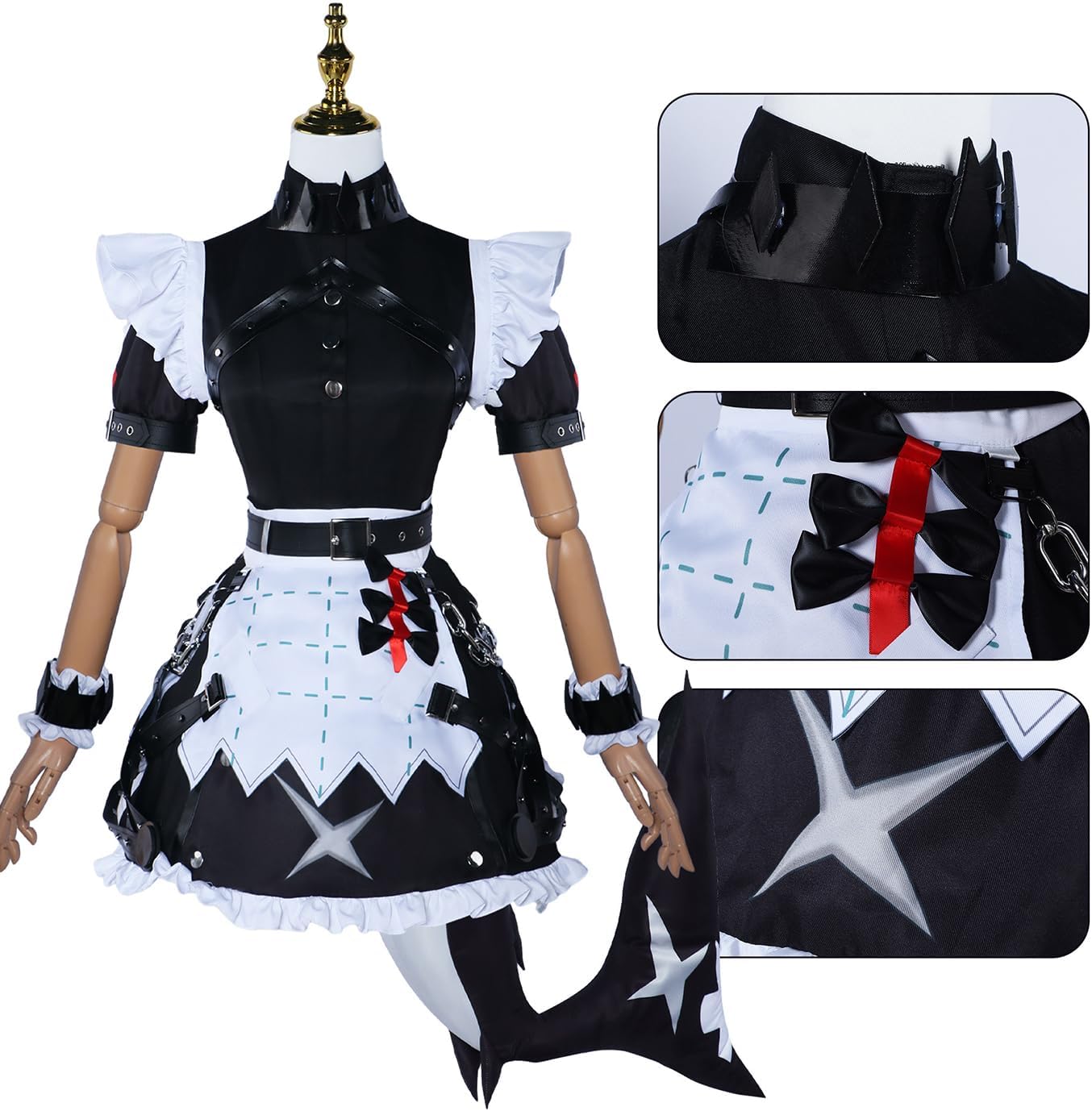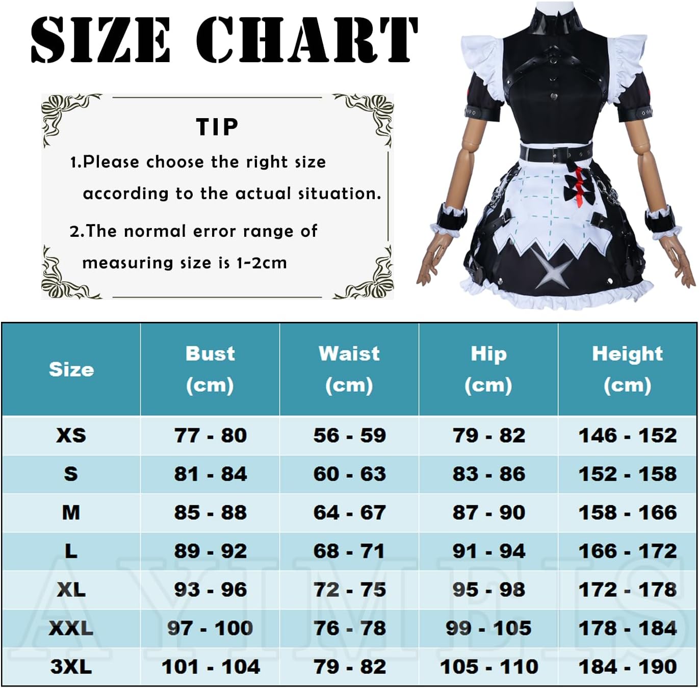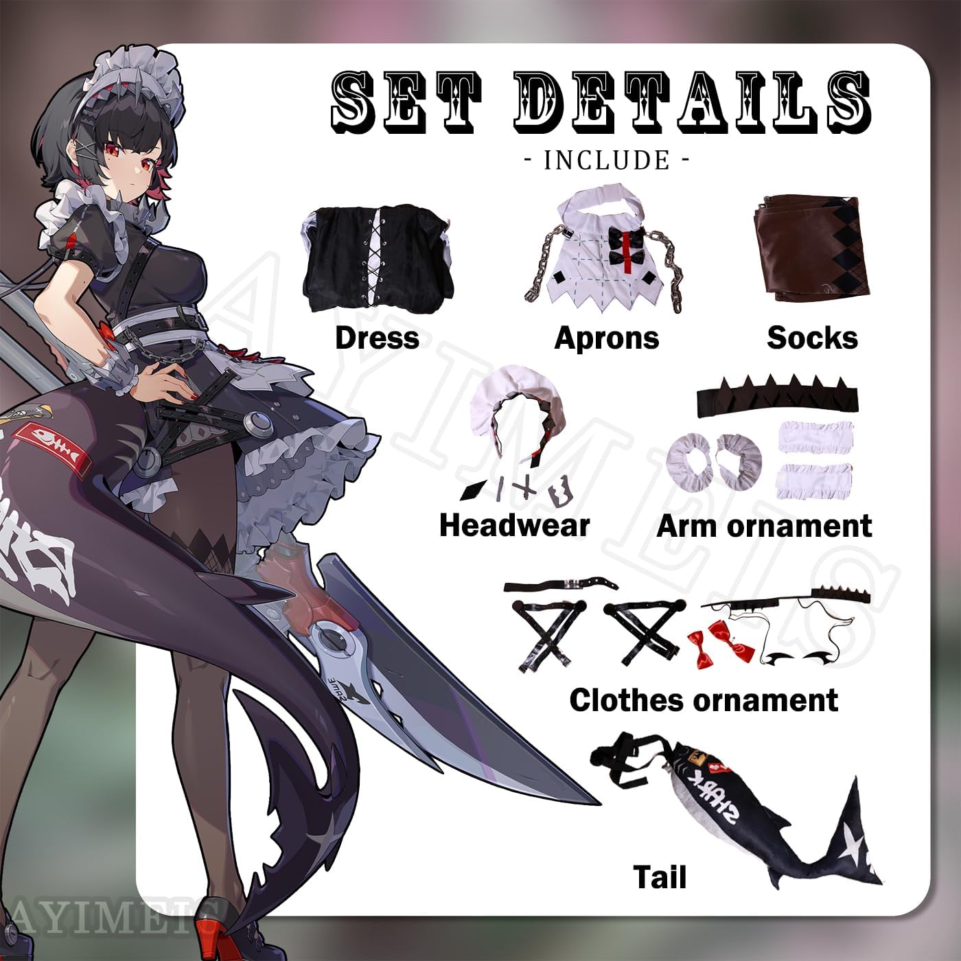 【Il pacchetto include】 - Abito *1, Grembiule *1, Calze *1, Pezzo di testa *5, Accessori per le braccia *5, Accessori per l'abbigliamento *5, Coda *1 (come mostra l'immagine). 【Materiale principale】 - Poliestere. Realizzato in materiale di alta qualità, morbido, comodo da indossare e abbastanza resistente. 【Caratteristiche dell'abbigliamento】 - Costume cosplay Zenless Zone Zero Ellen Joe, ripristina i dettagli dell'abbigliamento del personaggio, con un set completo di accessori, ti consente di completare facilmente il gioco di ruolo. 【Ampia applicazione】 - Perfetto per feste in costume a tema, festival, Natale, Halloween, carnevali, feste, performance sul palco, fotografia, Comic Con, Cosplay, Sport ecc. 【Riferimento taglia】 - Per assicurarti di ottenere una taglia adatta a te, fare riferimento alla nostra tabella delle taglie prima dell'acquisto (ultima foto).