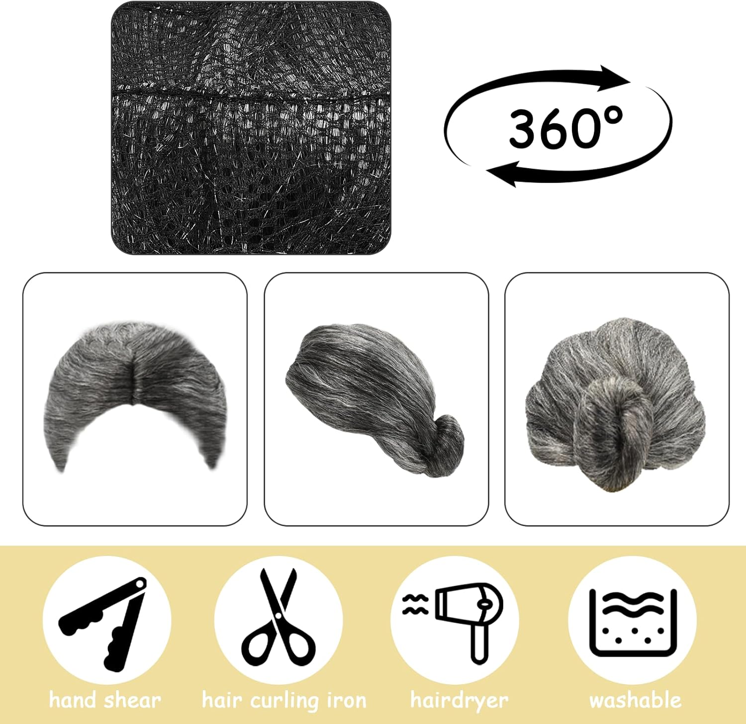 Aspetto e consistenza: la parrucca ha un elegante colore grigio argento. Le ciocche di capelli sono uniformi e brillano bene, riproducono realisticamente l'aspetto dei capelli naturali e danno un fascino maturo ed elegante. Stile dei capelli: nel classico stile dei capelli, il nodo ha una forma fine e ordinata. La parrucca si adatta perfettamente all'immagine di una nonna e dona un'atmosfera dignitosa e generosa. Esperienza di indossamento: vengono utilizzati materiali leggeri e la struttura interna è razionale. Quando si indossa, non si sente alcuna tensione di compressione, si adatta bene e stabile sulla testa e può essere indossata anche per un periodo di tempo prolungato. Durevolezza: vengono utilizzate fibre sintetiche di alta qualità, che hanno eccellenti proprietà come la resistenza ai nodi e alla caduta dei capelli. È resistente e durevole e può essere utilizzata più volte. Aree di applicazione: la parrucca è ideale per cosplay – scenari pertinenti. Che si tratti di feste a tema, giochi di ruolo o stili di abbigliamento retrò, può essere facilmente abbinata e aumenta la sensazione complessiva di stile.