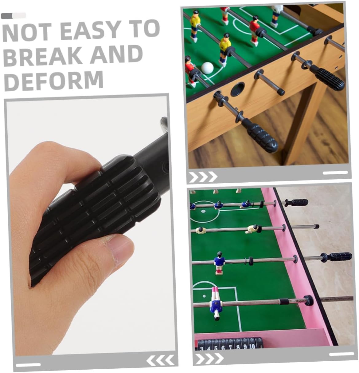 Salvaspazio: grazie alle dimensioni compatte, sono facili da riporre e non occupano troppo spazio. Accessori per biliardino, impugnature professionali per biliardino Adatti per la maggior parte dei giocatori: migliora il tuo gioco con queste impugnature per biliardino durevoli e pratiche, ideali per giocatori occasionali e competitivi, impugnatura in plastica per biliardino, parti per biliardino Migliora l'esperienza di gioco: utilizzando un design ergonomico, queste impugnature per biliardino possono darti una buona esperienza di gioco, una maniglia antiscivolo e un'impugnatura sostitutiva per biliardino Facile sostituzione: quelle pratiche Le impugnature per biliardino facilitano la sostituzione delle parti usurate e mantengono il gioco in buone condizioni. piccole impugnature per biliardino, sostituzione di parti di biliardino Meravigliosa esperienza di gioco: l'introduzione del design antiscivolo verticale ti offre un'esperienza di gioco meravigliosa, impugnatura per biliardino e piccola impugnatura per biliardino