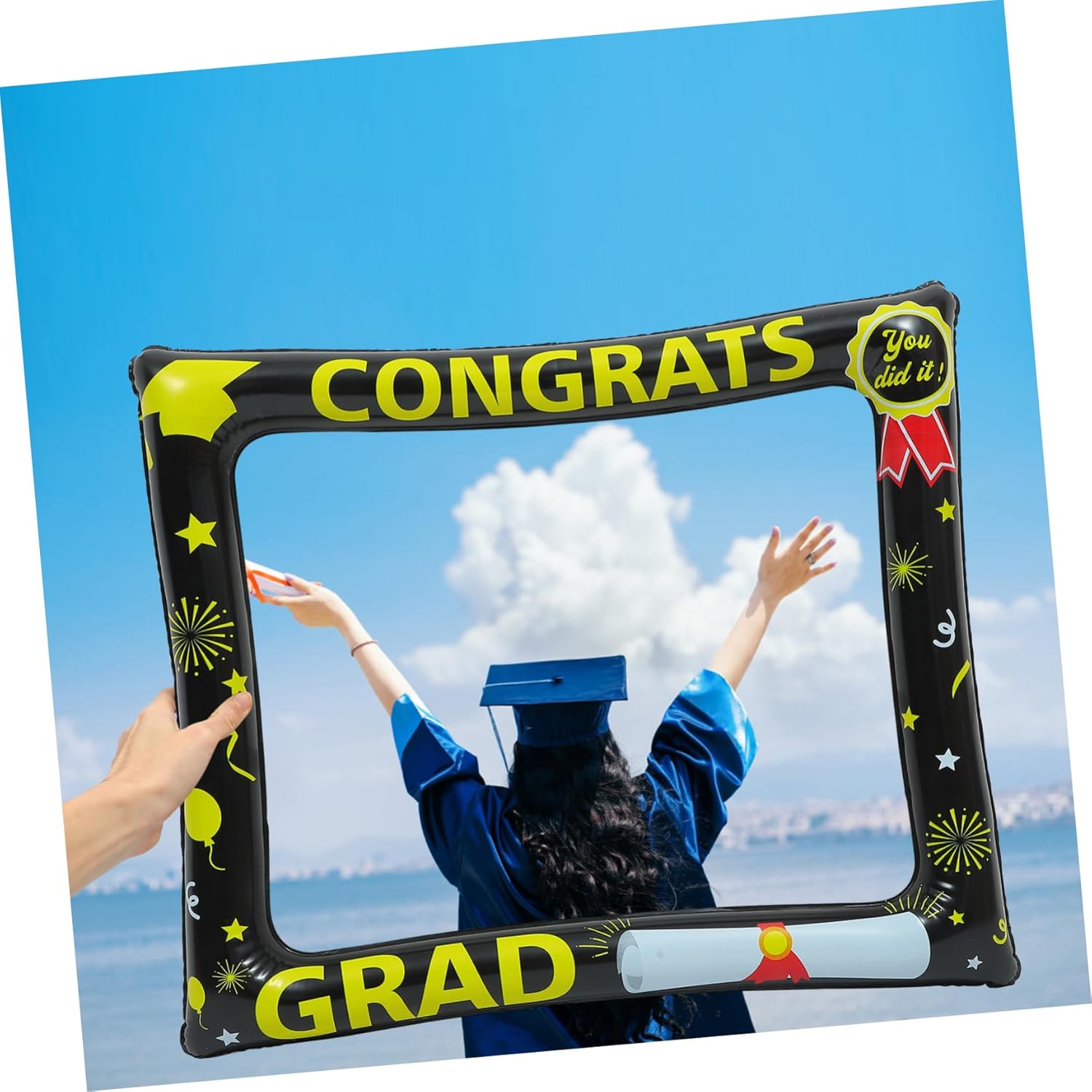 Cornice per foto di scena: progettata con elementi di laurea, la cornice per foto può creare l'atmosfera di festa che meriti, cornice per foto di scena per laurea Accessorio fotografico: perfetto per la festa di laurea, molto interessante e significativo, molto decorativo e bello, cornice gonfiabile per foto Cornice gonfiabile per foto: leggera e portatile, facile da portare ovunque tu vada, il che renderà il tuo photo booth più pratico e pratico per la festa di laurea Cornice per la laurea: crea un'esperienza fotografica memorabile e divertente! un accessorio per aggiungere divertimento alle foto, accessori per selfie per la festa di laurea Accessori per ritratti di laurea: ottimi per decorazioni per feste di laurea e per foto, con colori e design chic, accessori per servizi fotografici di laurea