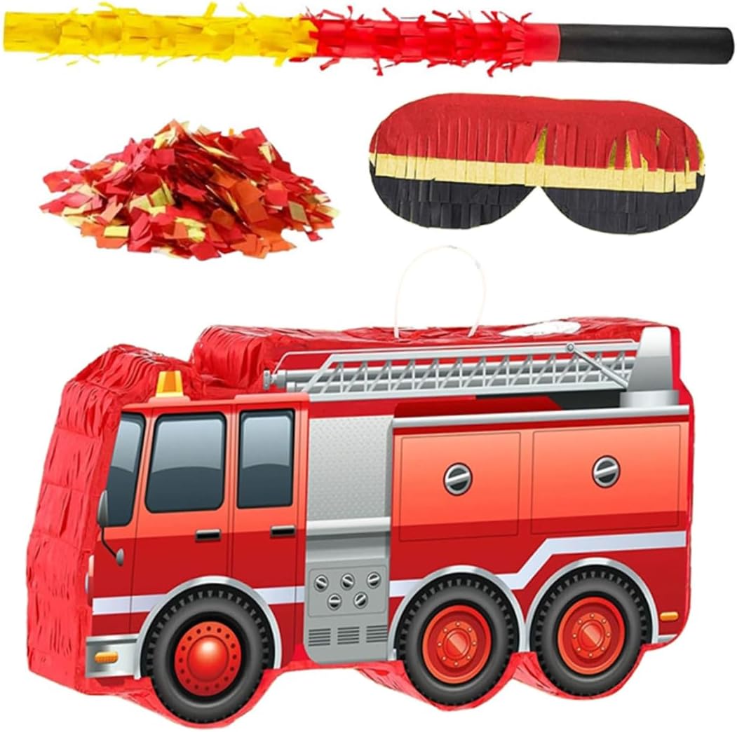 Accessori: dona alle feste di compleanno un tema unico dei pompieri, le rende speciali e fa la gioia dei piccoli ospiti. Riempitivo per piñata dell'autopompa antincendio, forniture per baby shower. Colori vivaci: il design accattivante e colorato attira l'attenzione della festa, migliora l'atmosfera della festa e incoraggia la partecipazione e le attività. Piñata ripiena di zucchero, piñata dei pompieri Design adatto ai bambini: realizzata con materiali sicuri e colori vivaci, offre un'esperienza divertente e sicura per tutte le età, piñata dei pompieri, decorazione dei pompieri Divertimento di gruppo: incoraggia il lavoro di squadra e la cooperazione mentre le persone lavorano insieme per distruggere la piñata, promuovendo abilità sociali e cameratismo. piñata decorativa da appendere, articoli per feste a forma di autopompa. Attività emozionante: progettata per un grande divertimento, incoraggia la partecipazione ad attività di gruppo e promuove l'interazione sociale e, decorazioni per feste di compleanno dei vigili del fuoco, piñata per